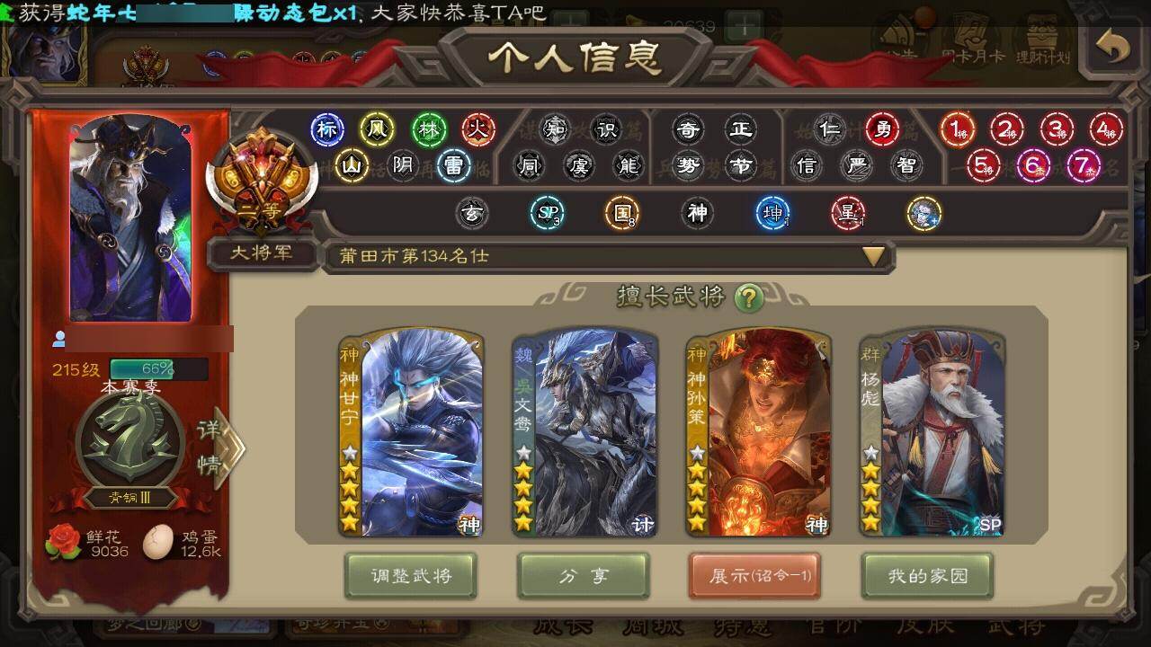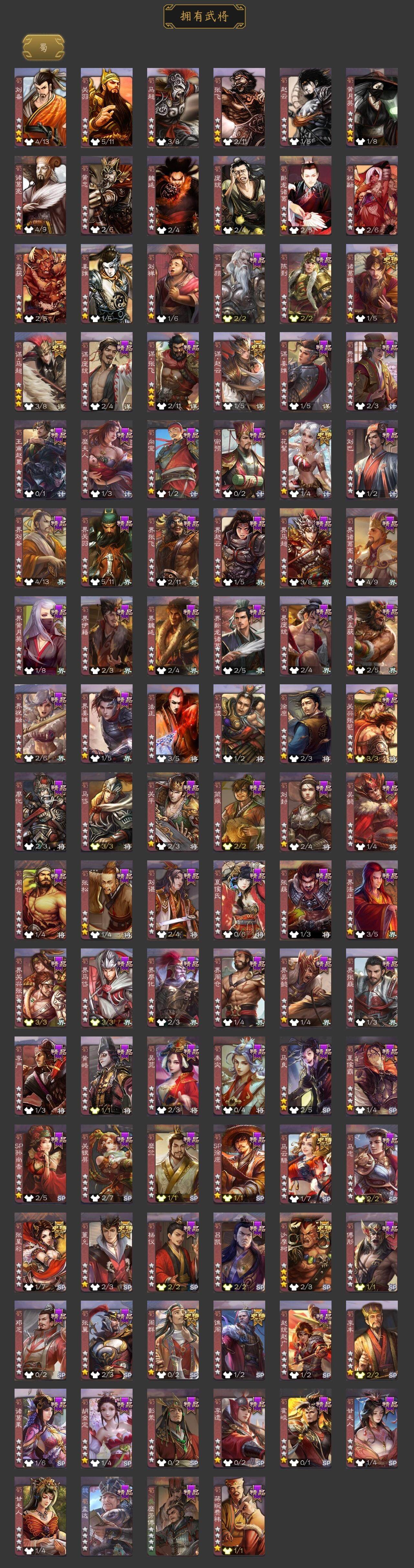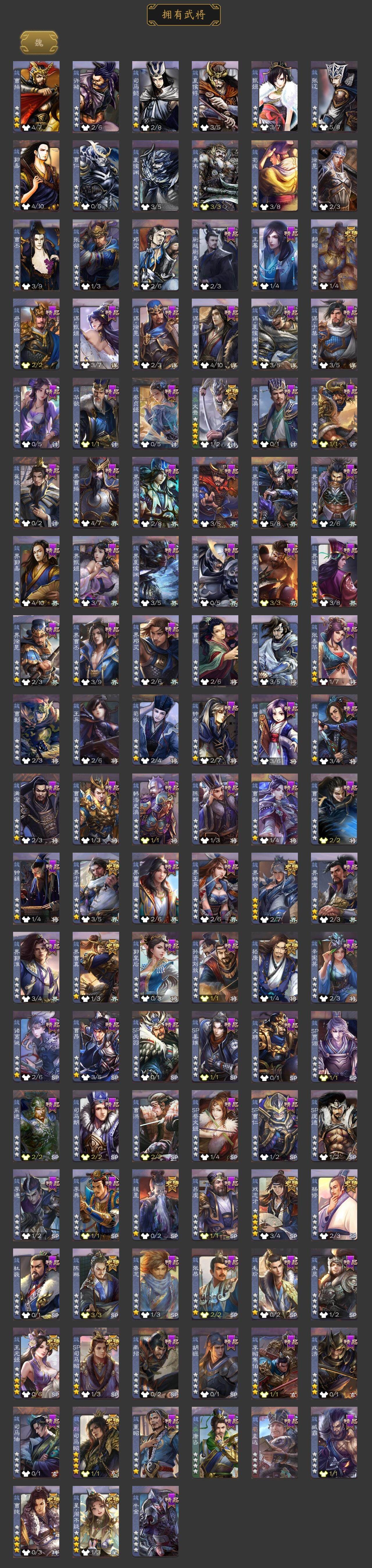 [15174435]【66】官阶:大将军;vip等级:vip10;史诗武将数量:51;动态皮肤数量:48;武将总数:424;史诗宝珠数量:0;将魂数量:14256;神将:8;魏国史诗武将:25;蜀国史诗武将:10;吴国史诗武将:5;群史诗武将:19 神吕布神赵云神陆逊神甘宁神孙策神吕蒙神周瑜神诸葛亮sp司马昭星周不疑杨修文鸯王元姬魏-司马昭界钟会界于禁界曹真嵇康郝昭陈琳曹纯戏志才马云騄谋赵云谋马超诸葛瞻周群张星彩沙摩柯谯周花鬘董允吴景骆统留赞界徐盛界步练师谋郭嘉左慈张让杨彪星黄忠苏飞麹义南华老仙祢衡沮授界左慈界李儒公孙康卑弥呼鲍信谋张角张绣李傕许攸神太史慈-勇撼日月动态神孙策-霸王再世动态神荀彧-虎年清明动态神甘宁-万人辟易动态神陆逊-绽焰摧枯动态神曹操-天下归心神赵云-战龙在野动态神司马懿-鉴往知来动态星周不疑-才广志宏动态曹丕-气荡山河(动态)甄姬-明珠耀躯(动态)sp蔡文姬-兔年冬日动态许褚-虎啸生风动态荀彧-驱虎吞狼动态界许褚-虎啸生风动态钟会-谋谟之勋动态界钟会-谋谟之勋动态戏志才-举棋若定动态朱灵-以战破氐动态司马昭-昭威淮南(动态)星徐晃-斧引霹雳动态刘备-龙御天下动态费祎-安民护祚(动态)刘备-明良千古动态马超-牛年春节动态界刘备-明良千古动态界马超-牛年春节动态鲍三娘-虎年七夕动态李丰-太仓聚粟动态胡金定-明良千古动态诸葛果-蛇年限定动态卧龙诸葛-火烧博望动态周处-义除三害动态吕蒙-剑起惊澜动态孙权-永开吴祚动态孙策-虎踞江东动态孙寒华-莲华熠熠动态孙尚香-星流霆击动态界孙尚香-星流霆击动态徐盛-破军杀将动态步练师-牛年七夕动态界步练师-牛年七夕动态刘赞-灵魂歌王动态孙寒华-蛇年限定动态文鸯-势若万钧动态高顺-每战必克动态许攸-火烧乌巢动态袁绍-声震寰宇动态吕布-傲睨万物动态张角-黄天当立动态袁绍-一往无前动态左慈-役使鬼神动态界袁绍-一往无前动态李儒-鸠杀少帝
