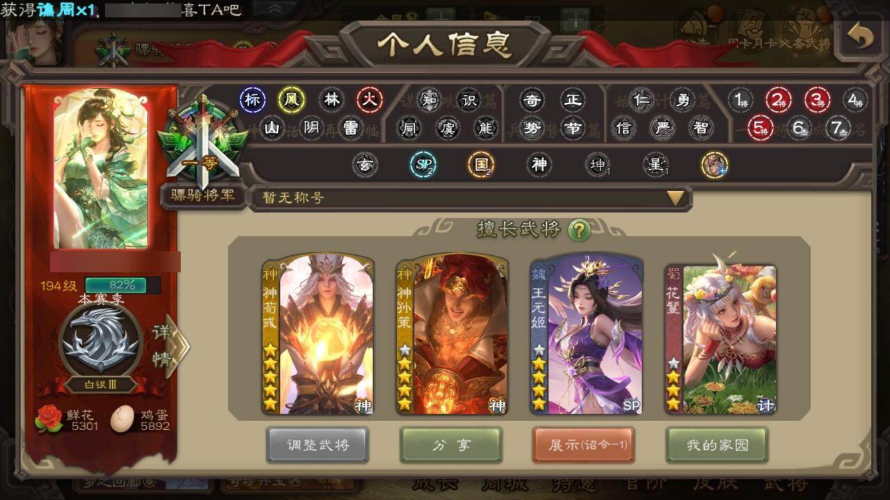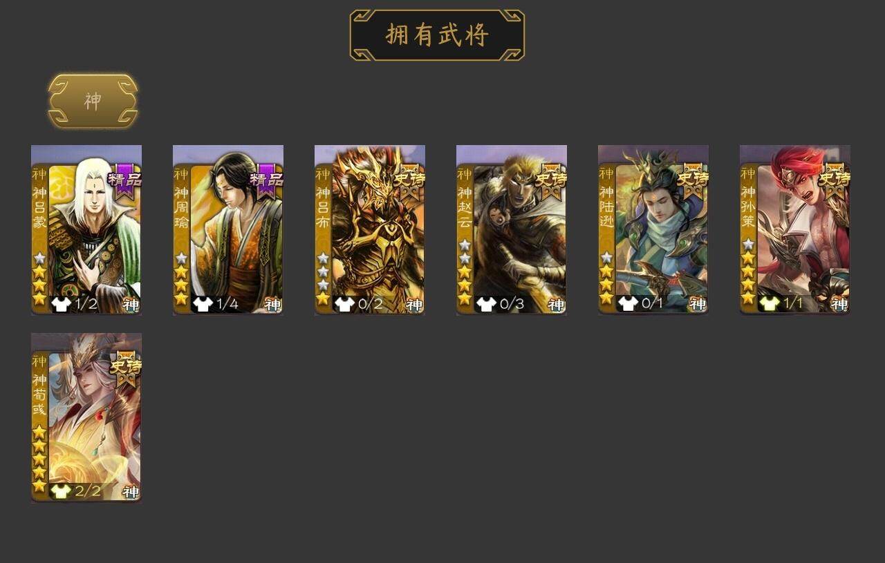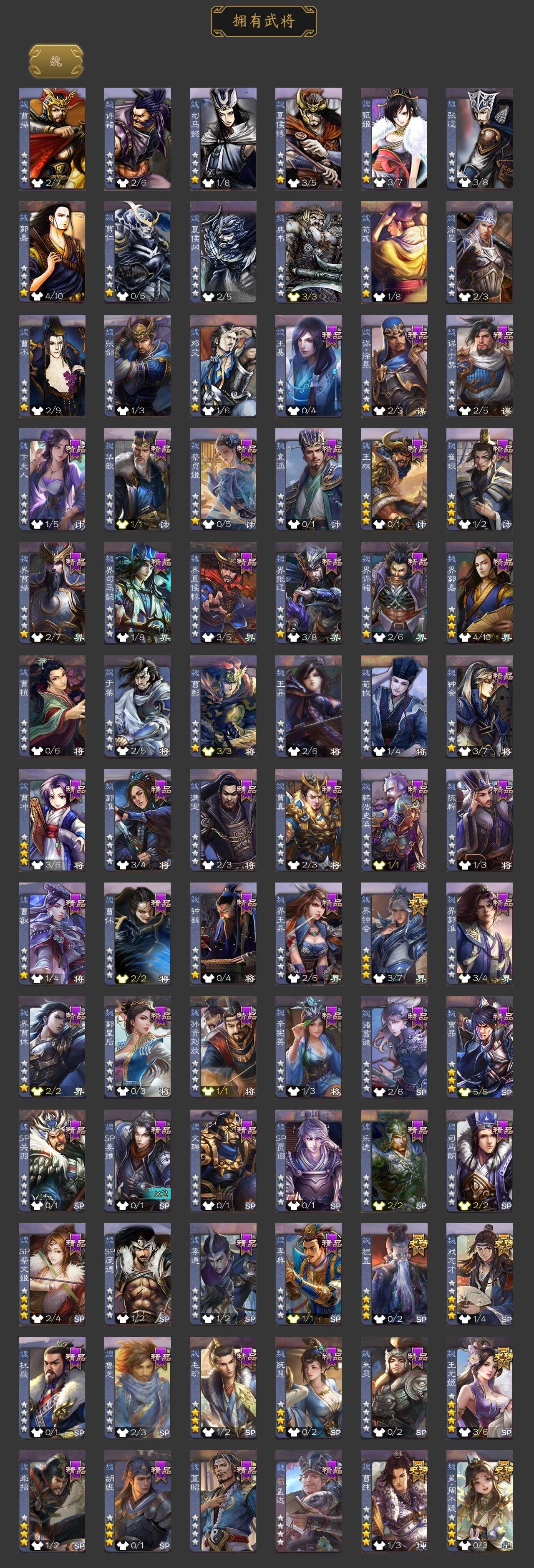[15174497]【447】官阶:骠骑将军;vip等级:vip8;史诗武将数量:28;动态皮肤数量:28;武将总数:305;史诗宝珠数量:0;将魂数量:99;神将:7;魏国史诗武将:10;蜀国史诗武将:7;吴国史诗武将:3;群史诗武将:6 神吕布神赵云神陆逊神孙策神荀彧神吕蒙神周瑜星周不疑王元姬界钟会曹纯戏志才谋赵云谋马超诸葛瞻沙摩柯谯周花鬘董允周处界徐盛势陆郁生裴秀星魏延张让星甘宁麹义界左慈神孙策-霸王再世动态神荀彧-虎年清明动态神荀彧-匡汉延祚动态神郭嘉-半醉山河神吕蒙-兼资文武动态鲍三娘-情定缘起王元姬-婆娑起舞(动态)sp蔡文姬-兔年冬日动态曹昂-竭战麟伤动态曹纯-虎年春节动态王元姬-鼠年冬至动态黄月英-虎年中秋动态诸葛亮-虎年中秋动态诸葛瞻-绵竹之殇动态诸葛果-虎年中秋动态周处-义除三害动态周瑜-兔年七夕动态孙权-牛年七夕动态孙尚香-兔年春节动态界孙权-牛年七夕动态徐盛-破军杀将动态灵雎-霜刃绚练动态麹义-扬刀立威动态吕布-鼠年七夕动态左慈-役使鬼神动态界吕布-鼠年七夕动态张琪瑛-虎年冬至动态sp赵云-威名尽显动态左慈-蛇年限定动态