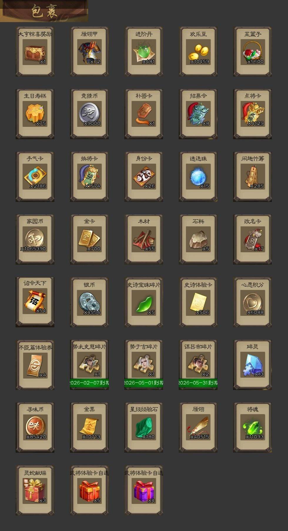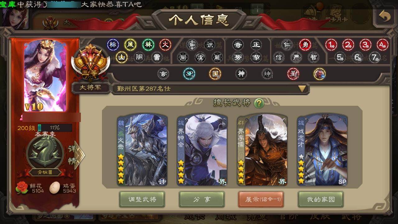 [15174668]【516】官阶:大将军;vip等级:vip10;史诗武将数量:40;动态皮肤数量:33;武将总数:358;史诗宝珠数量:0;将魂数量:11093;神将:8;魏国史诗武将:18;蜀国史诗武将:6;吴国史诗武将:6;群史诗武将:17 神吕布神赵云神刘备神张辽神华佗神关羽神吕蒙神周瑜sp司马昭文鸯马钧界钟会界曹真曹纯戏志才谋夏侯氏谋马超诸葛瞻界黄忠花鬘董允谋黄盖周处吴景骆统界朱然界徐盛谋黄月英界沮授左慈郑玄张让星黄忠麹义南华老仙沮授界左慈界李儒公孙康卑弥呼鲍信张绣许攸星董卓神荀彧-虎年清明动态神吕布-冠绝天下动态张昌蒲-龙年端午(动态)星周不疑-龙年清明动态荀彧-驱虎吞狼动态邓艾-神兵天降动态钟会-谋谟之勋动态曹真-虎年春节动态界钟会-谋谟之勋动态戏志才-举棋若定动态朱灵-以战破氐动态曹纯-虎年春节动态刘备-龙御天下动态卧龙诸葛-龙跃凤鸣动态马超-虎年冬至动态黄月英-虎年中秋动态诸葛亮-明良千古动态界诸葛亮-明良千古动态夏侯氏-明良千古动态鲍三娘-嫣然一笑动态李丰-太仓聚粟动态周处-义除三害动态黄盖-兔年端午动态孙权-猪年端午动态界孙权-猪年端午动态徐氏-琪花瑶草动态鲁肃-蛇年端午动态文鸯-势若万钧动态许攸-火烧乌巢动态李儒-业火毒计动态吕布-傲睨万物动态张角-迅雷风烈动态袁绍-一往无前动态左慈-役使鬼神动态许攸-盛气凌人动态界张角-迅雷风烈动态sp貂蝉-驭魂千机动态张鲁-虎年冬至动态苏飞-肝胆相照动态星甘宁-肝胆相照动态陶谦-安民护祚动态左慈-蛇年限定动态
