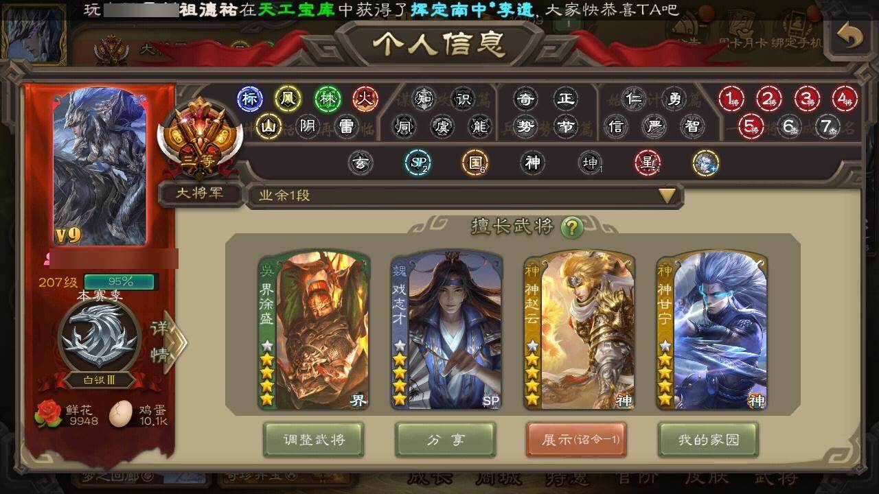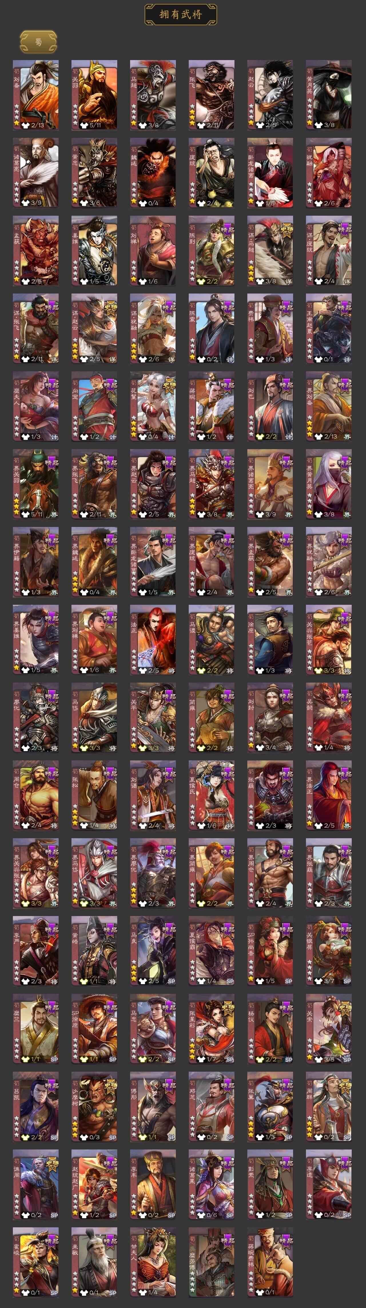 [15174717]【829】官阶:大将军;vip等级:vip9;史诗武将数量:42;动态皮肤数量:40;武将总数:387;史诗宝珠数量:21;将魂数量:2501;神将:8;魏国史诗武将:34;蜀国史诗武将:8;吴国史诗武将:4;群史诗武将:18 神赵云神陆逊神甘宁神张辽神太史慈神吕蒙神周瑜神诸葛亮星周不疑文鸯王元姬魏-司马昭界钟会界曹真嵇康曹婴曹纯戏志才关索谋赵云谋马超周群张星彩沙摩柯谯周花鬘吴景骆统界徐盛界步练师谋郭嘉界沮授左慈郑玄张让张琪瑛星黄忠苏飞麹义沮授界李儒公孙康鲍信谋张角张绣李傕阎象许攸神张辽-威震江东神甘宁-万人辟易动态神赵云-战龙在野动态星周不疑-才广志宏动态钟繇-安民护祚(动态)曹丕-气荡山河(动态)星周不疑-龙年清明动态甄姬-明珠耀躯(动态)曹丕-龙年中秋动态sp蔡文姬-兔年冬日动态曹丕-牛年清明动态界曹丕-牛年清明动态钟会-谋谟之勋动态界钟会-谋谟之勋动态戏志才-举棋若定动态曹婴-锋芒毕露动态王元姬-鼠年冬至动态羊徽瑜-牛年中秋动态司马昭-昭威淮南(动态)星徐晃-斧引霹雳动态刘备-龙御天下动态诸葛亮-龙年限定动态关索-依心缱绻动态关羽-明良千古动态马超-牛年春节动态赵云-牛年春节动态黄月英-鼠年春节动态界赵云-牛年春节动态界马超-牛年春节动态界黄月英-鼠年春节动态关银屏-虎年端午动态关索-虎年七夕动态太史慈-涤荡江东动态周处-义除三害动态孙权-永开吴祚动态孙策-虎踞江东动态孙尚香-兔年春节动态徐盛-破军杀将动态文鸯-势若万钧动态袁绍-声震寰宇动态杜预-弼朝博虬动态吕布-鼠年七夕动态张角-黄天当立动态左慈-役使鬼神动态界吕布-鼠年七夕动态李儒-鸠杀少帝动态界李儒-鸠杀少帝动态张琪瑛-虎年冬至动态