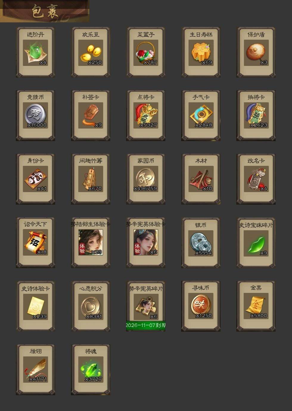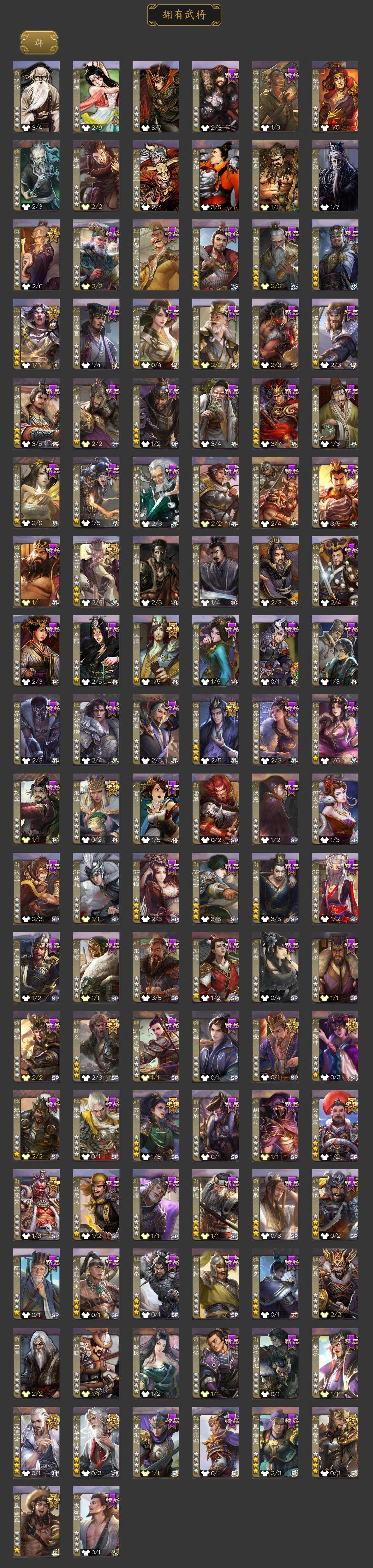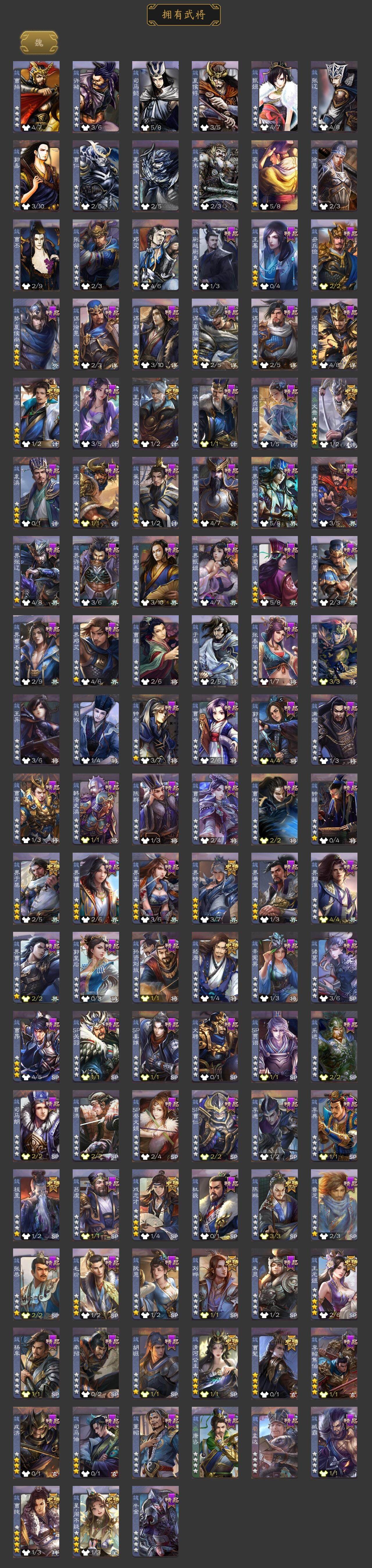 [15174954]【782】官阶:大将军;vip等级:vip10;史诗武将数量:53;动态皮肤数量:55;武将总数:427;史诗宝珠数量:0;将魂数量:3727;神将:6;魏国史诗武将:32;蜀国史诗武将:13;吴国史诗武将:5;群史诗武将:18 神赵云神陆逊神张辽神太史慈神吕蒙神周瑜曹髦星周不疑王粲文鸯王元姬王凌界钟会界于禁嵇康陈琳曹纯戏志才刘晔清河公主关索谋诸葛亮马云騄谋夏侯氏谋赵云谋马超诸葛瞻赵襄王平沙摩柯界黄忠花鬘董允吴景骆统贺齐谋孙权势陆郁生谋郭嘉左慈张让星黄忠苏飞麹义庞德公南华老仙沮授界左慈界李儒公孙康卑弥呼鲍信谋张角阎象陈珪星董卓神鲁肃-九州为局神张辽-威震江东神太史慈-勇撼日月动态神孙策-霸王再世动态神张辽-散敌擒孙神郭嘉-半醉山河神甘宁-万人辟易动态神赵云-战龙在野动态星周不疑-才广志宏动态曹丕-气荡山河(动态)甄姬-明珠耀躯(动态)sp蔡文姬-兔年冬日动态司马懿-牛年立冬动态荀彧-驱虎吞狼动态邓艾-神兵天降动态界司马懿-牛年立冬动态界邓艾-神兵天降动态钟会-谋谟之勋动态界钟会-谋谟之勋动态曹婴-兔年春节动态曹纯-长坂败备动态王元姬-鼠年冬至动态司马昭-昭威淮南(动态)星徐晃-斧引霹雳动态清河公主-魅影萦心动态花鬘-依心缱绻动态刘备-龙御天下动态诸葛亮-龙年限定动态诸葛瞻-绵竹之殇动态关银屏-虎年端午动态关索-鼠年中秋动态李丰-太仓聚粟动态诸葛果-蛇年限定动态卧龙诸葛-火烧博望动态太史慈-涤荡江东动态孙策-兔年中秋动态孙茹-龙年七夕动态周处-义除三害动态吕蒙-剑起惊澜动态陆逊-龙年七夕动态孙权-永开吴祚动态周瑜-兔年七夕动态孙策-虎踞江东动态孙寒华-莲华熠熠动态周瑜-免年清明动态孙权-猪年端午动态孙权-冠绝天下动态孙尚香-星流霆击动态界孙权-猪年端午动态界孙尚香-星流霆击动态孙寒华-蛇年限定动态文鸯-势若万钧动态袁绍-声震寰宇动态左慈-道法显威(动态)麹义-扬刀立威