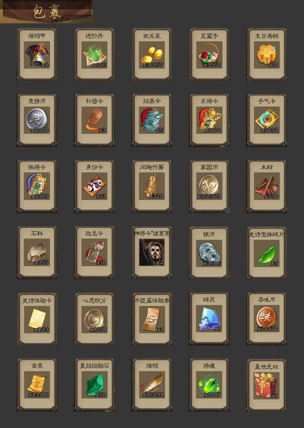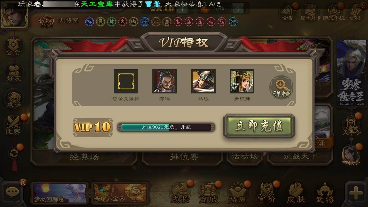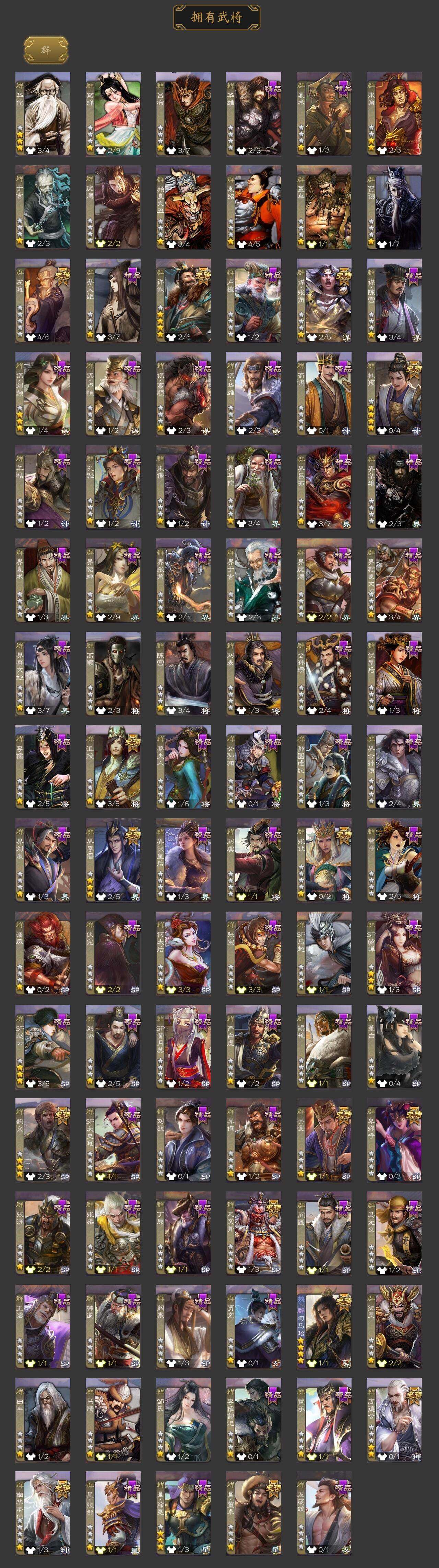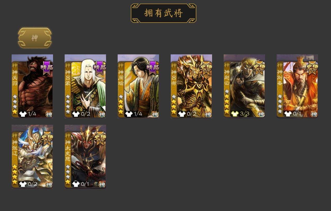 [15175059]【498】官阶:大将军;vip等级:vip10;史诗武将数量:48;动态皮肤数量:52;武将总数:380;史诗宝珠数量:0;将魂数量:1007;神将:8;魏国史诗武将:34;蜀国史诗武将:13;吴国史诗武将:4;群史诗武将:14 神吕布神赵云神刘备神张辽神太史慈神关羽神吕蒙神周瑜曹髦星周不疑王凌魏-司马昭界钟会界曹真郝昭曹婴曹纯戏志才谋曹丕关索谋诸葛亮马云騄谋黄忠谋赵云谋马超诸葛瞻张星彩沙摩柯谯周界黄忠花鬘董允吴景留赞界朱然界徐盛左慈张让麹义庞德公南华老仙沮授界李儒杜预卑弥呼谋张角李傕阎象许攸星董卓神赵云-鳞振九霄神关羽-血海罗刹动态神赵云-战龙在野动态神赵云-神龙天降sp司马昭-鼠年冬至(动态)星周不疑-才广志宏动态曹丕-气荡山河(动态)甄姬-明珠耀躯(动态)sp蔡文姬-兔年冬日动态荀彧-驱虎吞狼动态邓艾-神兵天降动态王粲-笔翰如流动态界邓艾-神兵天降动态张春华-雪中舞刃动态钟会-谋谟之勋动态界钟会-谋谟之勋动态曹昂-竭战麟伤动态戏志才-举棋若定动态司马昭-昭威淮南(动态)司马懿-重张区宇(动态)诸葛诞-寿春举义(动态)星徐晃-斧引霹雳动态孟获-祸崇南疆动态刘备-龙御天下动态黄忠-烈箭贯云动态)马超-牛年春节动态马超-虎年冬至动态黄月英-木牛流马动态界马超-牛年春节动态界黄月英-木牛流马动态夏侯氏-明良千古动态张星彩-临军对阵动态关索-虎年七夕动态鲍三娘-虎年七夕动态李丰-太仓聚粟动态诸葛果-蛇年限定动态卧龙诸葛-火烧博望动态周处-义除三害动态吕蒙-剑起惊澜动态孙权-永开吴祚动态孙策-虎踞江东动态孙寒华-威灵尽显动态鲁肃-蛇年端午动态高顺-每战必克动态袁绍-声震寰宇动态高览-威显官渡动态南华老仙-冠绝天下动态麹义-扬刀立威动态吕布-傲睨万物动态张角-黄天当立动态许攸-恃功矜能动态李儒-鸠杀少帝动态界李儒-鸠杀少帝动态何太后-蛇蝎为心动态张宝-苍天已死动态张鲁-虎年冬至动态