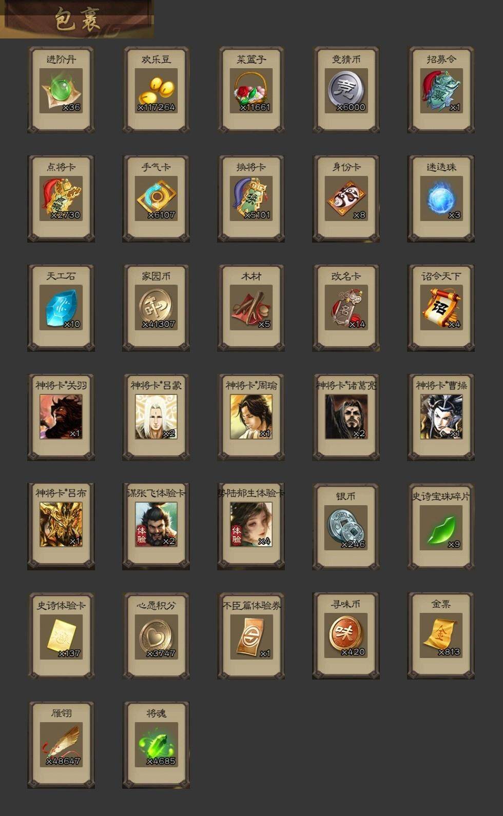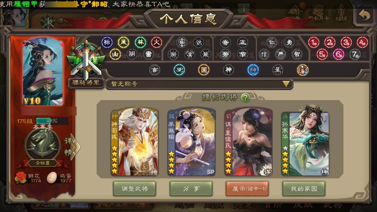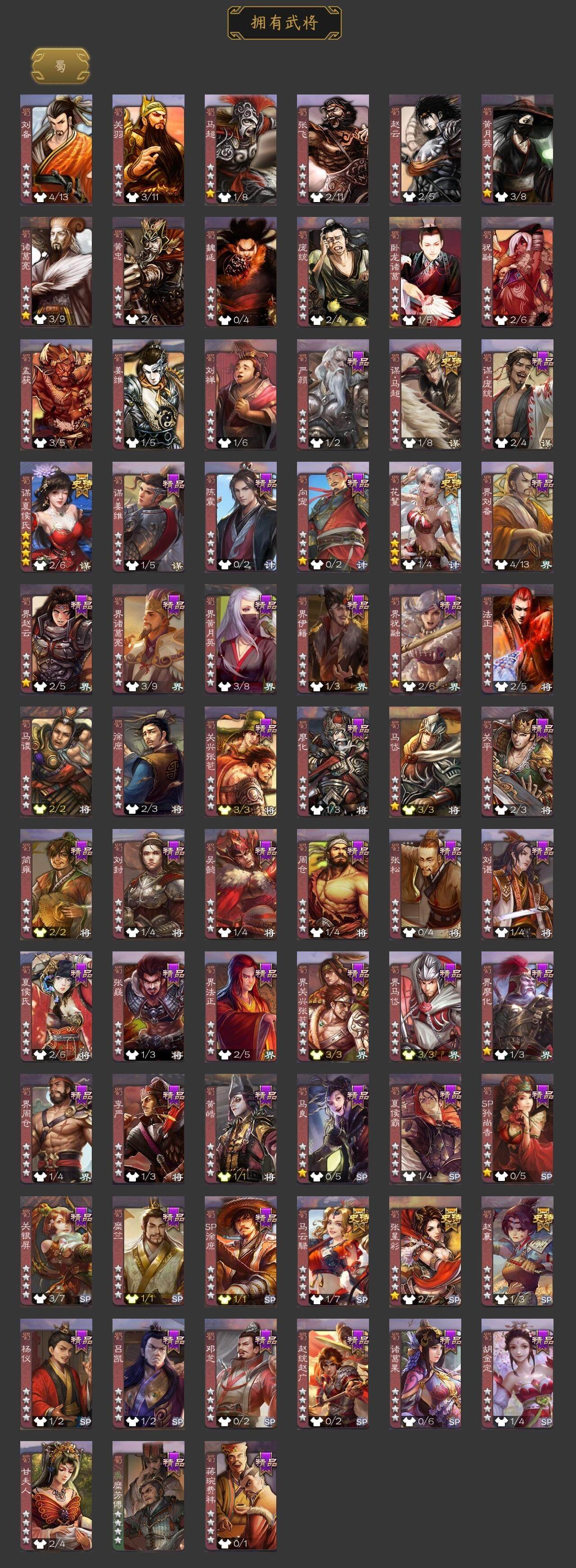 [15175138]【686】官阶:骠骑将军;vip等级:vip10;史诗武将数量:27;动态皮肤数量:18;武将总数:300;史诗宝珠数量:0;将魂数量:4685;神将:6;魏国史诗武将:12;蜀国史诗武将:6;吴国史诗武将:4;群史诗武将:8 神张辽神荀彧神关羽神吕蒙神周瑜神诸葛亮杨修羊徽瑜界钟会界于禁曹纯戏志才马云騄谋夏侯氏谋马超赵襄张星彩花鬘孙寒华留赞界徐盛界步练师左慈张让张琪瑛南华老仙沮授卑弥呼李傕许攸神荀彧-虎年清明动态许褚-虎啸生风动态荀彧-驱虎吞狼动态界许褚-虎啸生风动态张春华-牛年立冬动态曹婴-兔年春节动态羊徽瑜-牛年中秋动态关羽-明良千古动态张飞-明良千古动态赵云-牛年春节动态黄月英-明良千古动态界赵云-牛年春节动态界黄月英-明良千古动态夏侯氏-明良千古动态夏侯氏-猪年中秋动态关银屏-兔年春节动态张星彩-虎年端午动态胡金定-明良千古动态孙茹-龙年七夕动态小乔-鼠年春分动态界小乔-鼠年春分动态徐氏-琪花瑶草动态孙鲁育-猪年春节动态孙鲁育-牛年端午动态貂蝉-鼠年七夕动态界貂蝉-鼠年七夕动态张鲁-虎年冬至动态董白-猪年春节动态