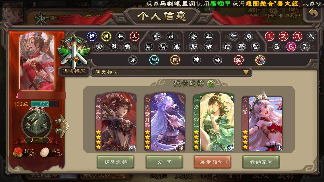 [15175189]【663】官阶:骠骑将军;vip等级:vip11;史诗武将数量:34;动态皮肤数量:26;武将总数:339;史诗宝珠数量:29;将魂数量:1502;神将:4;魏国史诗武将:8;蜀国史诗武将:11;吴国史诗武将:5;群史诗武将:5 神吕布神赵云神张辽神周瑜星周不疑杨修魏-司马昭嵇康郝昭曹纯戏志才谋曹丕清河公主关索马云騄谋赵云谋马超诸葛瞻赵襄张星彩王平谯周傅佥花鬘吴景骆统界徐盛势陆郁生势太史慈谋黄月英左慈张让刘焉星董卓神曹操-天下归心神赵云-战龙在野动态曹丕-气荡山河(动态)司马昭-昭威淮南(动态)星徐晃-斧引霹雳动态清河公主-魅影萦心动态关索-依心缱绻动态关羽-明良千古动态黄月英-明良千古动态界黄月英-明良千古动态张星彩-临军对阵动态赵襄-猪年春节动态诸葛果-蛇年限定动态卧龙诸葛-火烧博望动态周处-义除三害动态孙权-永开吴祚动态徐盛-破军杀将动态刘赞-抗音而歌动态孙策-傲凌绝顶动态孙寒华-蛇年限定动态骆统-落笔生花动态左慈-道法显威(动态)麹义-扬刀立威动态刘焉-雄踞益州动态庞德公-超脱于世动态sp赵云-威名尽显动态