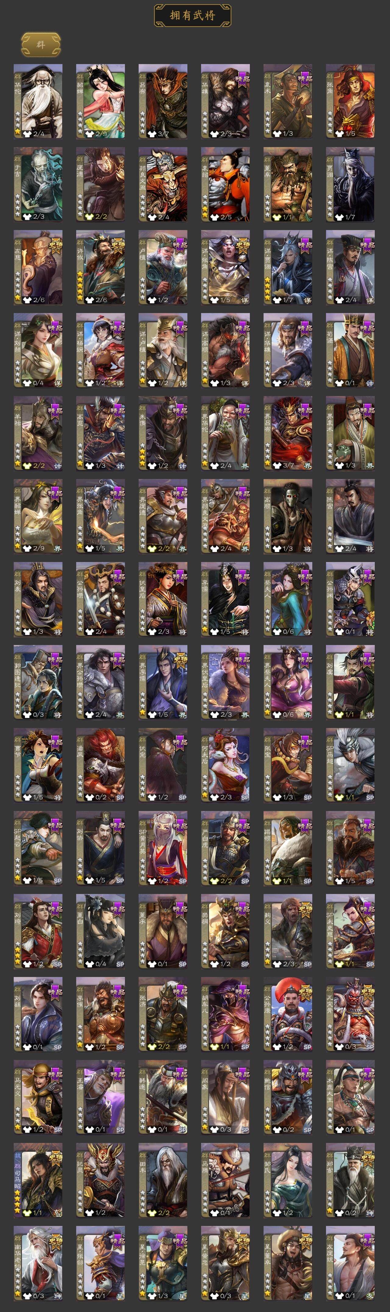 [15175419]【475】官阶:大将军;vip等级:vip9;史诗武将数量:41;动态皮肤数量:38;武将总数:364;史诗宝珠数量:1;将魂数量:6205;神将:9;魏国史诗武将:30;蜀国史诗武将:8;吴国史诗武将:6;群史诗武将:13 神吕布神赵云神司马懿神陆逊神张辽神孙策神吕蒙神周瑜神诸葛亮星周不疑文鸯王元姬魏-司马昭界钟会界曹真曹婴曹纯戏志才关索谋诸葛亮谋赵云谋马超诸葛瞻张星彩沙摩柯谋关羽周处吴景骆统留赞界朱然界徐盛左慈郑玄星黄忠麹义南华老仙界李儒公孙康鲍信谋张角李傕阎象许攸星董卓神孙策-霸王再世动态神陆逊-绽焰摧枯动态神曹操-天下归心神司马懿-鉴往知来动态星周不疑-才广志宏动态曹植-龙年中秋动态钟繇-安民护祚(动态)曹丕-气荡山河(动态)星周不疑-龙年清明动态甄姬-明珠耀躯(动态)sp蔡文姬-兔年冬日动态张春华-雪中舞刃动态钟会-谋谟之勋动态界钟会-谋谟之勋动态曹婴-兔年春节动态曹纯-虎年春节动态王元姬-鼠年冬至动态司马昭-昭威淮南(动态)星徐晃-斧引霹雳动态诸葛亮-龙年限定动态卧龙诸葛-龙跃凤鸣动态关索-依心缱绻动态张飞-据水断桥动态诸葛亮-明良千古动态诸葛瞻-绵竹之殇动态界张飞-据水断桥动态关银屏-兔年春节动态李丰-太仓聚粟动态诸葛果-蛇年限定动态太史慈-涤荡江东动态周处-义除三害动态吕蒙-剑起惊澜动态陆逊-龙年七夕动态孙权-永开吴祚动态孙寒华-莲华熠熠动态徐盛-破军杀将动态孙鲁育-牛年端午动态刘赞-灵魂歌王动态孙寒华-蛇年限定动态文鸯-势若万钧动态麹义-扬刀立威动态杨彪-忧心国事动态