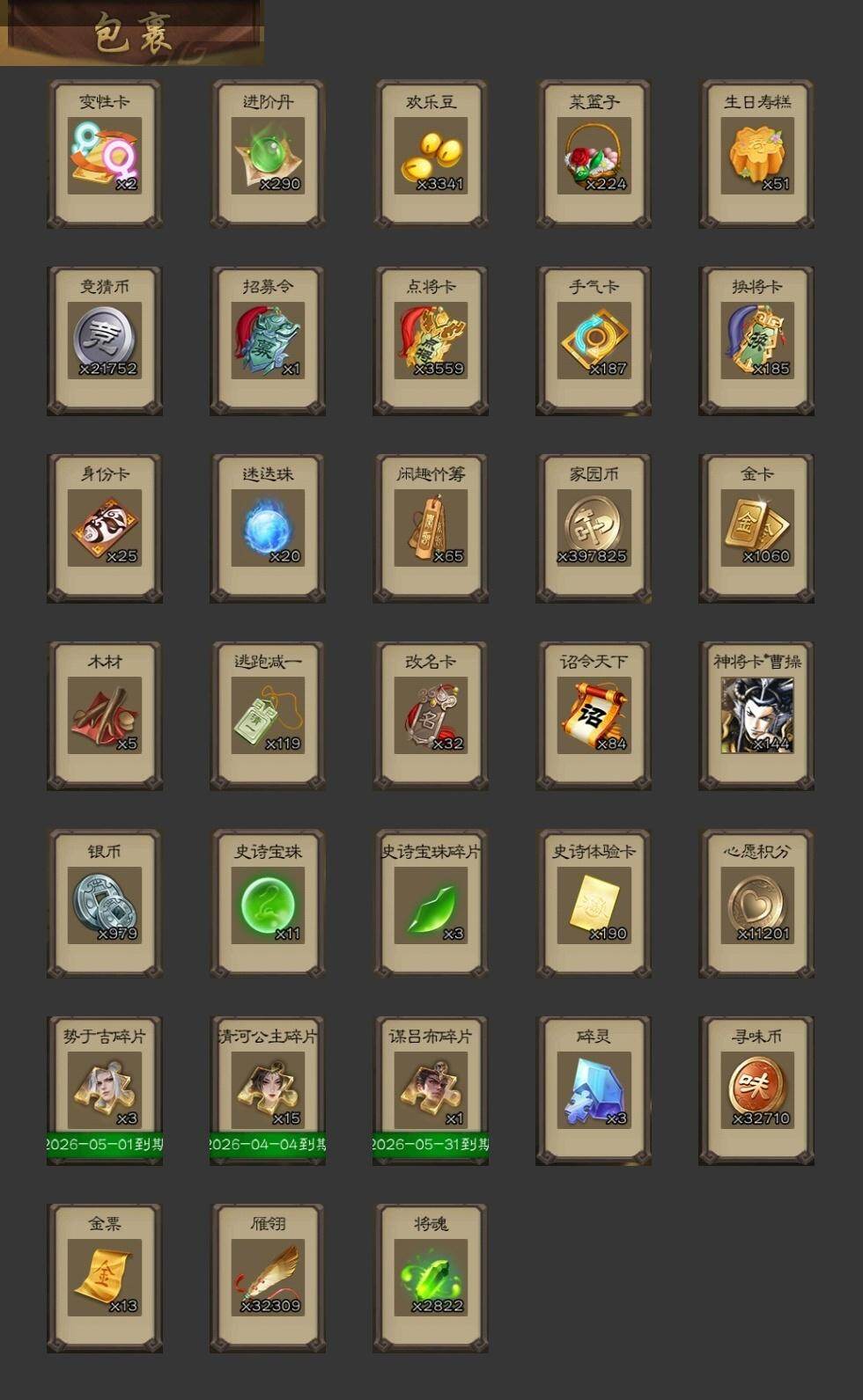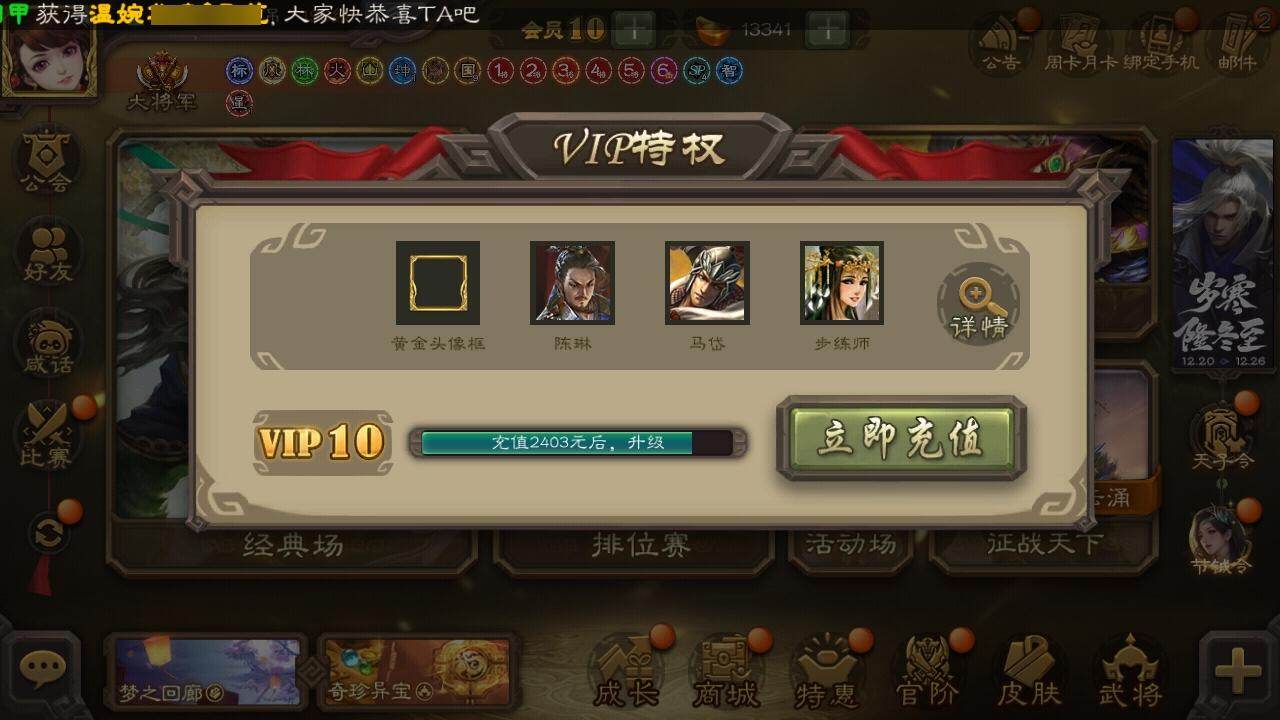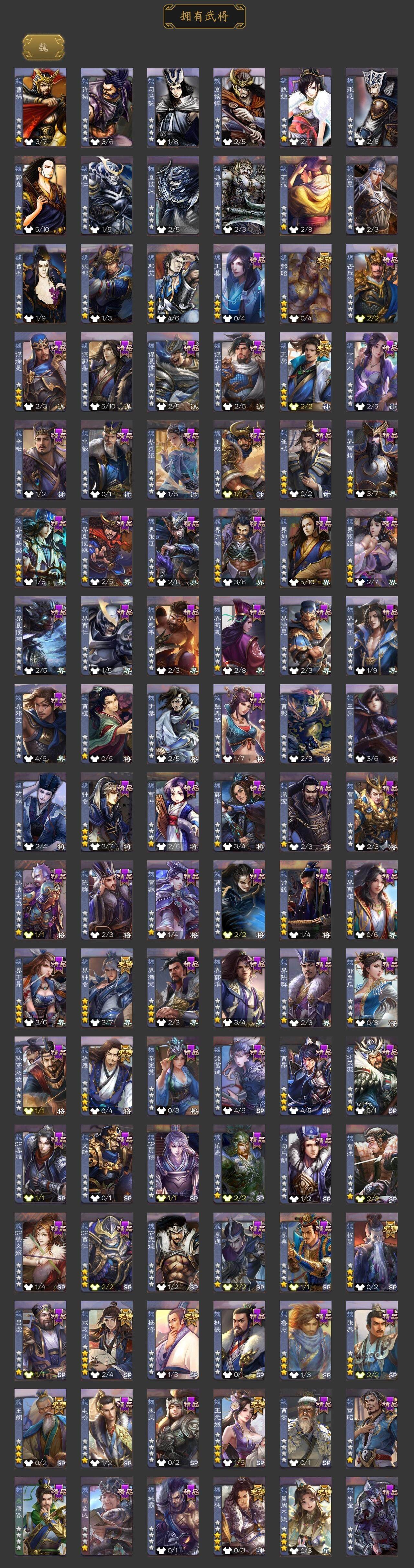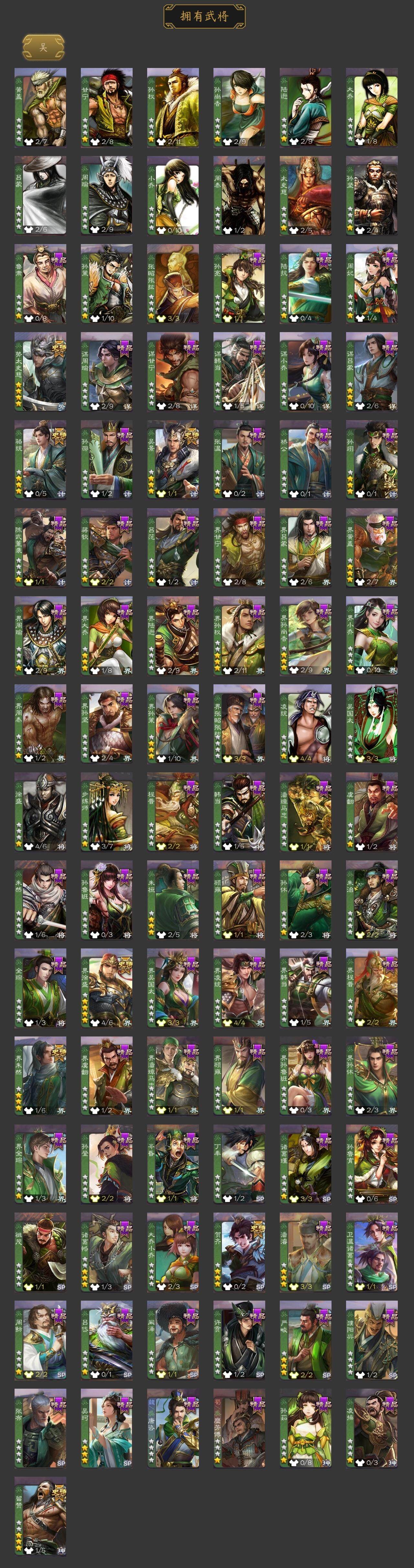 [15175588]【416】官阶:大将军;vip等级:vip10;史诗武将数量:57;动态皮肤数量:37;武将总数:421;史诗宝珠数量:11;将魂数量:2822;神将:8;魏国史诗武将:26;蜀国史诗武将:12;吴国史诗武将:7;群史诗武将:24 神吕布神赵云神刘备神甘宁神张辽神关羽神吕蒙神周瑜星周不疑王粲杨修王元姬王朗界钟会嵇康郝昭曹纯戏志才马云騄谋黄忠谋赵云谋马超诸葛瞻张星彩王平沙摩柯谯周界黄忠花鬘董允吴景骆统留赞界朱然界徐盛贺齐势太史慈谋郭嘉左慈郑玄张让星甘宁王允苏飞审配麹义南华老仙祢衡刘璋沮授界左慈界李儒公孙康杜预陈登卑弥呼鲍信李傕阎象许攸星董卓神郭嘉-虎年清明动态神孙策-霸王再世动态神张辽-散敌擒孙神甘宁-战破无间神甘宁-万人辟易动态神曹操-天下归心神吕布-冠绝天下动态神赵云-战龙在野动态sp蔡文姬-兔年冬日动态许褚-虎啸生风动态邓艾-神兵天降动态王粲-笔翰如流动态界许褚-虎啸生风动态界邓艾-神兵天降动态钟会-谋谟之勋动态曹真-虎年春节动态界钟会-谋谟之勋动态曹昂-竭战麟伤动态戏志才-举棋若定动态羊徽瑜-牛年中秋动态司马师-牛年中秋动态清河公主-魅影萦心动态张飞-明良千古动态诸葛亮-虎年中秋动态诸葛亮-明良千古动态黄忠-明良千古动态界诸葛亮-明良千古动态关银屏-虎年端午动态鲍三娘-柳娇桃艳动态胡金定-明良千古动态诸葛果-蛇年限定动态周处-义除三害动态孙权-牛年七夕动态界孙权-牛年七夕动态凌统-长风破浪动态徐盛-破军杀将动态步练师-牛年七夕动态界凌统-长风破浪动态刘赞-灵魂歌王动态曹节-龙年中秋动态南华老仙-冠绝天下动态麹义-扬刀立威动态杜预-龙吟破竹动态张角-黄天当立动态左慈-役使鬼神动态许攸-盛气凌人动态李儒-鸠杀少帝动态界李儒-鸠杀少帝动态张宝-苍天已死动态张鲁-虎年冬至动态卑弥呼-鬼渊蝶引动态sp赵云-威名尽显动态