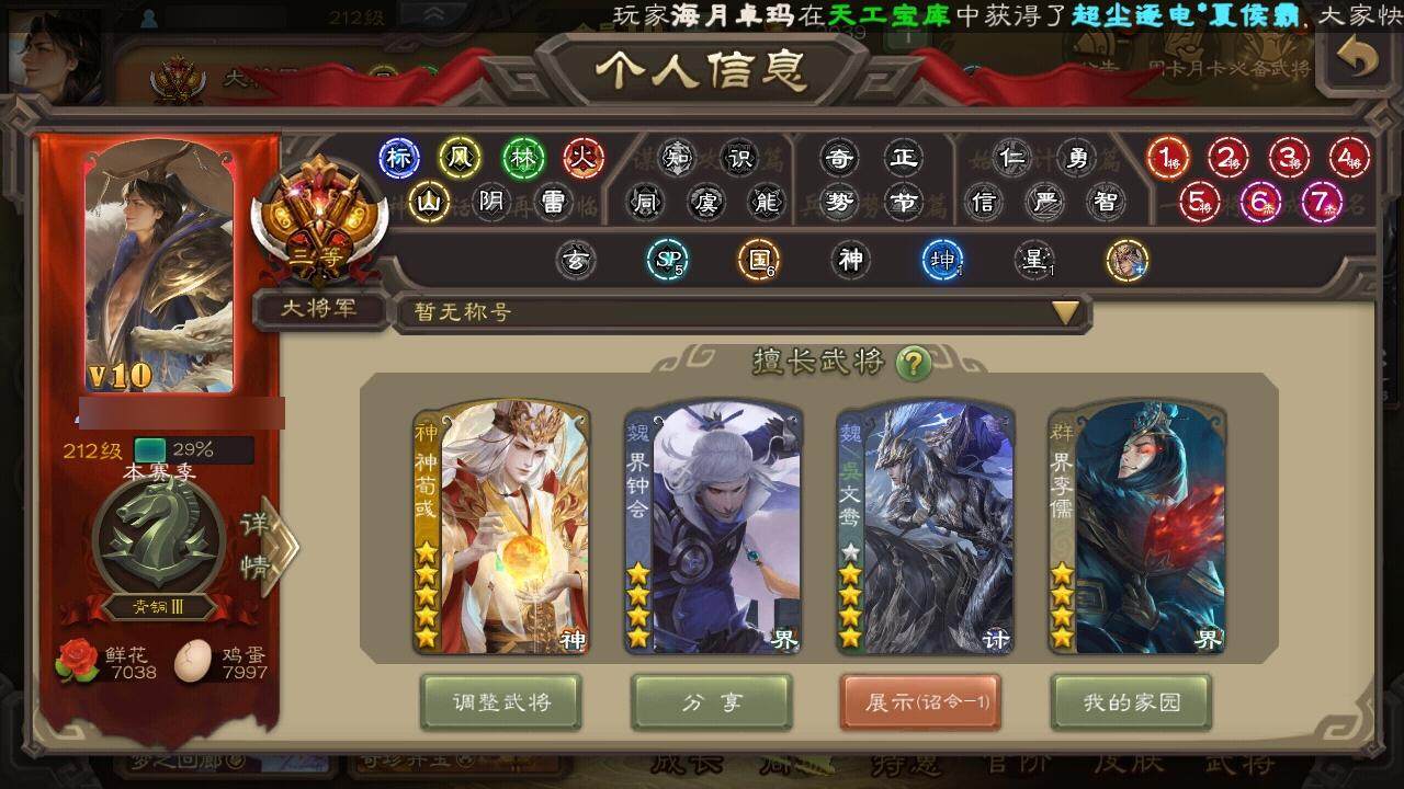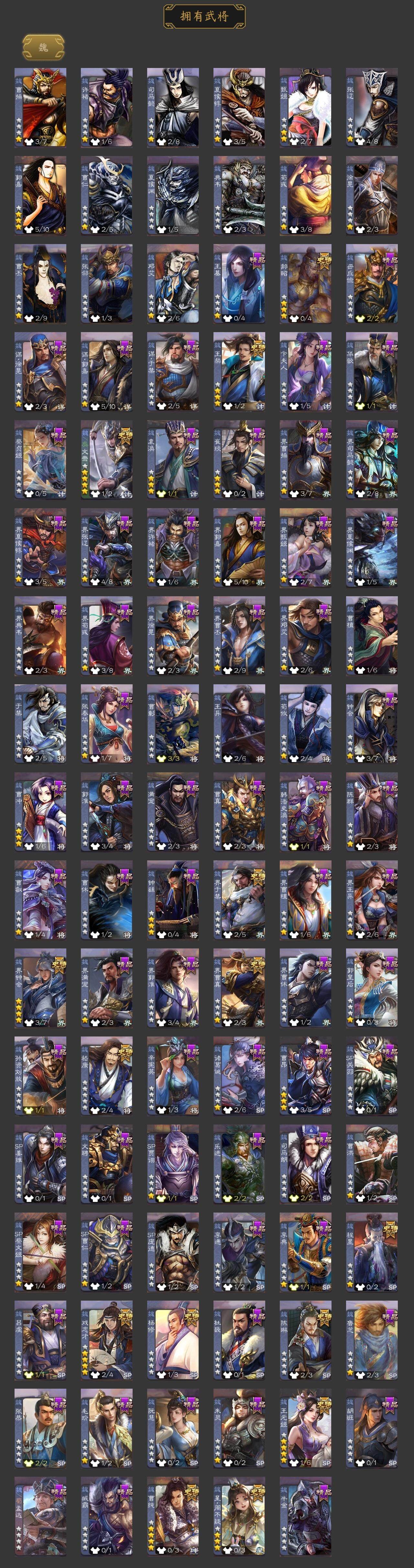 [15175654]【943】官阶:大将军;vip等级:vip10;史诗武将数量:41;动态皮肤数量:26;武将总数:372;史诗宝珠数量:0;将魂数量:4402;神将:6;魏国史诗武将:18;蜀国史诗武将:9;吴国史诗武将:4;群史诗武将:11 神吕布神赵云神张辽神荀彧神吕蒙神周瑜星周不疑王粲杨修文鸯王元姬界钟会界于禁界曹真嵇康郝昭陈琳曹纯戏志才关索马云騄谋赵云谋马超诸葛瞻张星彩沙摩柯谯周花鬘骆统留赞界徐盛贺齐谋郭嘉左慈张仲景张让麹义南华老仙沮授界李儒公孙康张绣许攸神郭嘉-虎年清明动态神荀彧-虎年清明动态神吕布-冠绝天下动态神赵云-战龙在野动态神赵云-神龙天降曹丕-气荡山河(动态)sp蔡文姬-兔年冬日动态甄姬-牛年清明动态王粲-笔翰如流动态界甄姬-牛年清明动态钟会-谋谟之勋动态界钟会-谋谟之勋动态戏志才-举棋若定动态王元姬-鼠年冬至动态刘备-明良千古动态张飞-猪年中秋动态诸葛亮-虎年中秋动态界刘备-明良千古动态界张飞-猪年中秋动态关银屏-兔年春节动态张星彩-临军对阵动态关索-鼠年中秋动态周处-义除三害动态周瑜-兔年七夕动态徐盛-破军杀将动态孙茹-烟水悠悠动态刘赞-灵魂歌王动态文鸯-势若万钧动态袁绍-声震寰宇动态麹义-扬刀立威动态吕布-傲睨万物动态李儒-鸠杀少帝动态界李儒-鸠杀少帝动态
