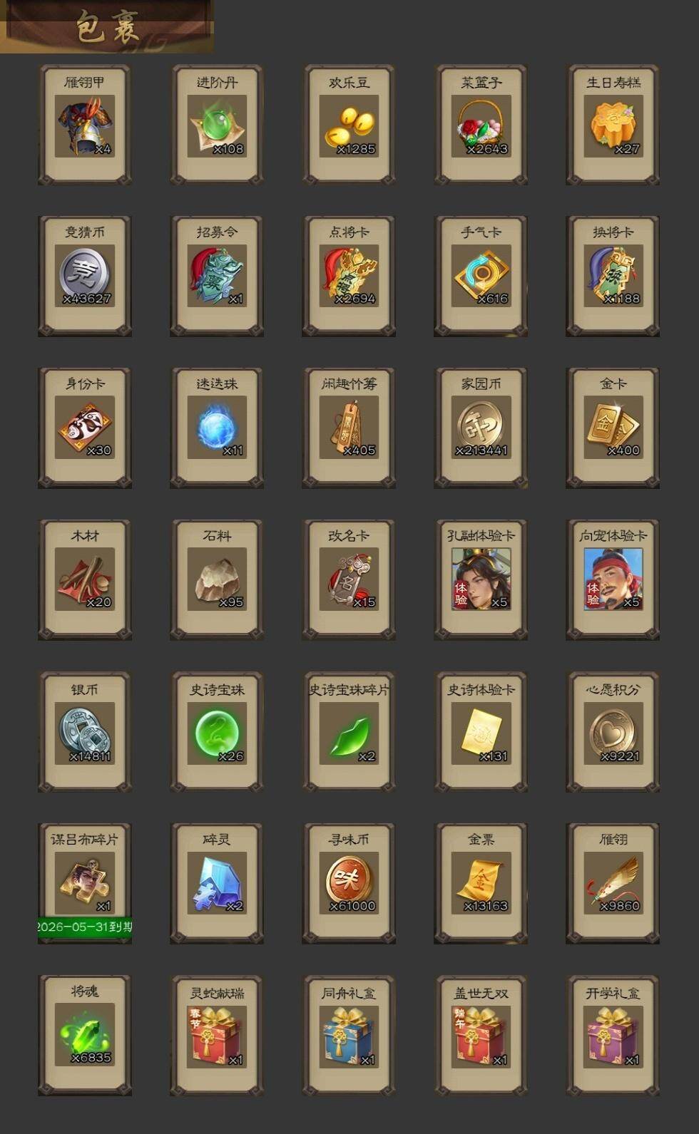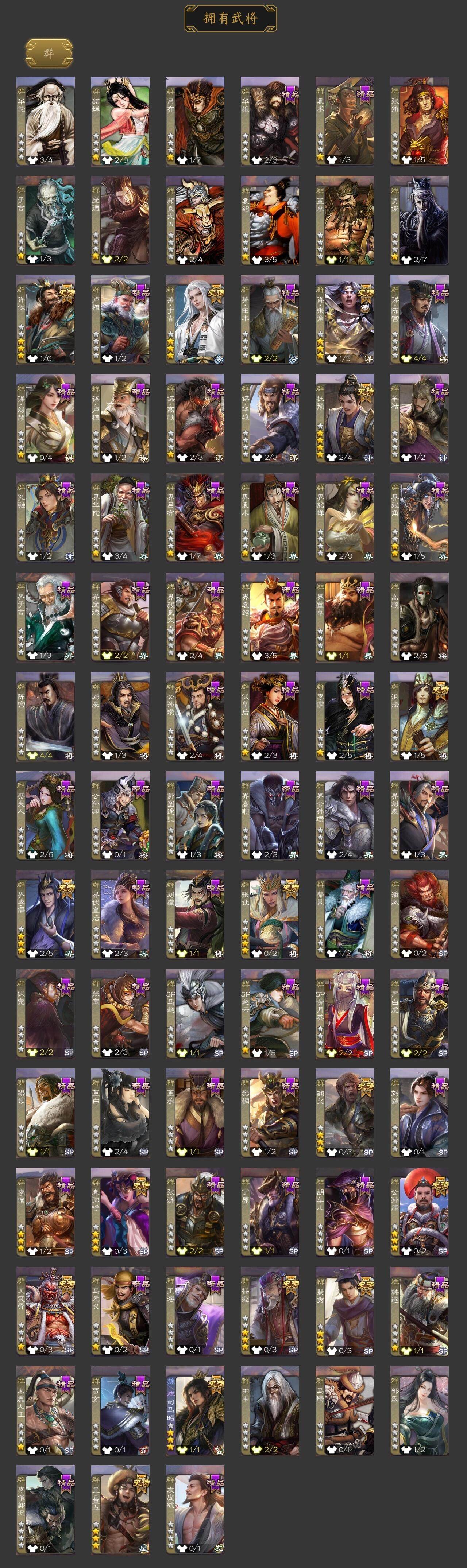 [15175723]【740】官阶:大将军;vip等级:vip8;史诗武将数量:37;动态皮肤数量:32;武将总数:356;史诗宝珠数量:26;将魂数量:6835;神将:4;魏国史诗武将:20;蜀国史诗武将:5;吴国史诗武将:4;群史诗武将:15 神吕布神赵云神吕蒙神周瑜曹髦星周不疑魏-司马昭界钟会郝昭曹婴曹纯戏志才谋夏侯惇蒋干清河公主谋赵云谋马超诸葛瞻沙摩柯谯周孙寒华骆统界朱然界徐盛谋黄月英裴秀张让杨彪麹义沮授界李儒公孙康杜预卑弥呼谋张角李傕许攸势于吉星董卓神鲁肃-九州为局星周不疑-才广志宏动态曹植-龙年中秋动态曹丕-气荡山河(动态)甄姬-明珠耀躯(动态)sp蔡文姬-兔年冬日动态钟会-谋谟之勋动态界钟会-谋谟之勋动态司马昭-昭威淮南(动态)星徐晃-斧引霹雳动态清河公主-魅影萦心动态刘备-龙御天下动态卧龙诸葛-龙跃凤鸣动态费祎-安民护祚(动态)关羽-明良千古动态周处-义除三害动态吕蒙-剑起惊澜动态黄盖-兔年端午动态孙权-永开吴祚动态孙寒华-莲华熠熠动态徐盛-破军杀将动态孙鲁育-牛年端午动态孙寒华-蛇年限定动态鲁肃-蛇年端午动态灵雎-霜刃绚练动态袁绍-声震寰宇动态杜预-龙吟破竹动态许攸-盛气凌人动态李儒-鸠杀少帝动态界李儒-鸠杀少帝动态陶谦-安民护祚动态左慈-蛇年限定动态