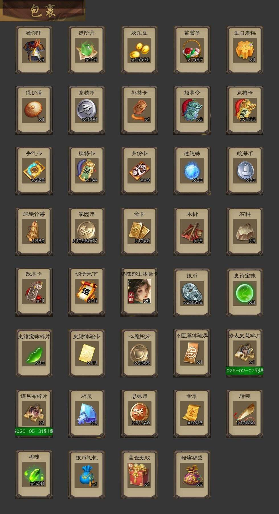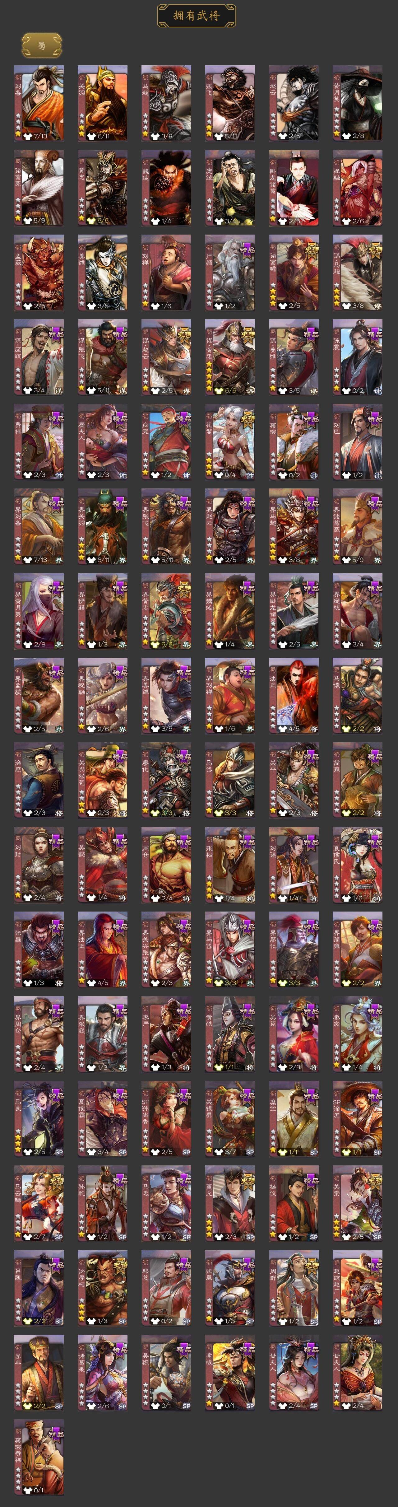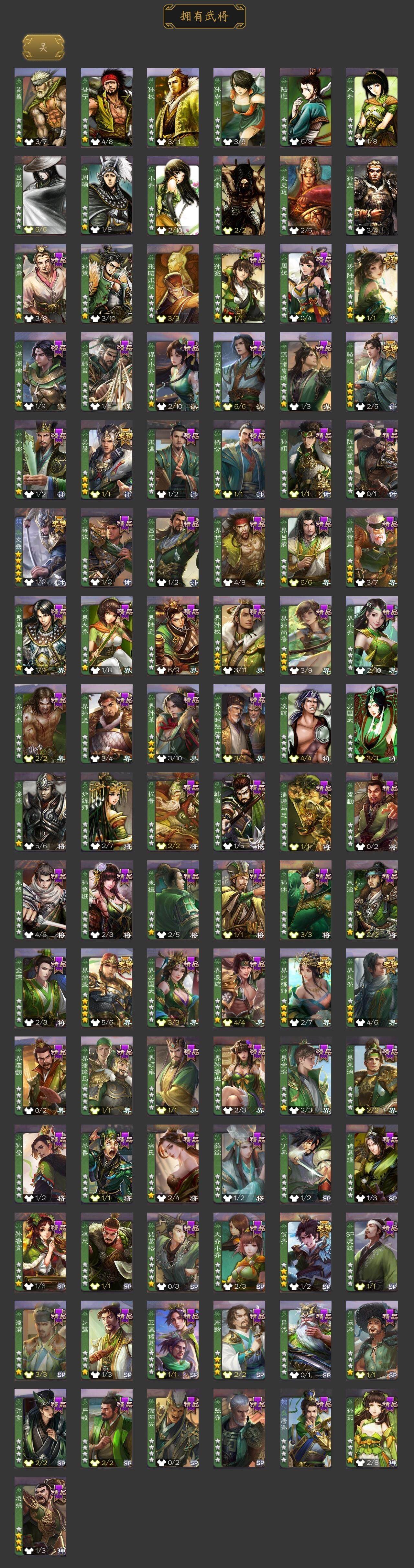 [15175985]【410】官阶:大将军;vip等级:vip10;史诗武将数量:54;动态皮肤数量:52;武将总数:412;史诗宝珠数量:3;将魂数量:1791;神将:9;魏国史诗武将:34;蜀国史诗武将:11;吴国史诗武将:7;群史诗武将:15 神赵云神陆逊神刘备神张辽神太史慈神关羽神吕蒙神周瑜神诸葛亮星周不疑王粲杨修文鸯王凌魏-司马昭马钧界钟会界于禁嵇康郝昭陈琳曹婴曹纯戏志才谋夏侯惇关索马云騄谋黄忠谋赵云谋马超诸葛瞻周群沙摩柯界黄忠花鬘董允吴景骆统界朱然界徐盛界步练师贺齐势陆郁生左慈郑玄张让苏飞麹义南华老仙祢衡沮授界李儒卑弥呼谋张角张绣李傕许攸星董卓神周瑜-陵光引灵动态星周不疑-才广志宏动态张昌蒲-龙年端午(动态)曹丕-气荡山河(动态)甄姬-明珠耀躯(动态)sp蔡文姬-兔年冬日动态荀彧-驱虎吞狼动态钟会-谋谟之勋动态曹真-虎年春节动态界钟会-谋谟之勋动态戏志才-举棋若定动态曹婴-兔年春节动态曹纯-虎年春节动态马钧-能工巧匠动态羊徽瑜-牛年中秋动态司马昭-昭威淮南(动态)司马懿-重张区宇(动态)星徐晃-斧引霹雳动态周群-卜卦观签动态刘备-龙御天下动态卧龙诸葛-龙跃凤鸣动态黄忠-烈箭贯云动态)关羽-明良千古动态马超-牛年春节动态张飞-明良千古动态黄忠-明良千古动态界马超-牛年春节动态关索-鼠年中秋动态关索-虎年七夕动态鲍三娘-虎年七夕动态鲍三娘-柳娇桃艳动态李丰-太仓聚粟动态诸葛果-蛇年限定动态小乔-兔年七夕动态周处-义除三害动态吕蒙-剑起惊澜动态陆逊-龙年七夕动态孙权-永开吴祚动态孙策-虎踞江东动态凌统-长风破浪动态徐盛-破军杀将动态步练师-牛年七夕动态界凌统-长风破浪动态界步练师-牛年七夕动态孙鲁育-牛年端午动态孙茹-烟水悠悠动态文鸯-势若万钧动态曹节-龙年中秋动态貂蝉-忧君难寐动态袁绍-声震寰宇动态杜预-龙吟破竹动态貂蝉-鼠年七夕动态吕布-虓虎之勇动态许攸-恃功矜能动态