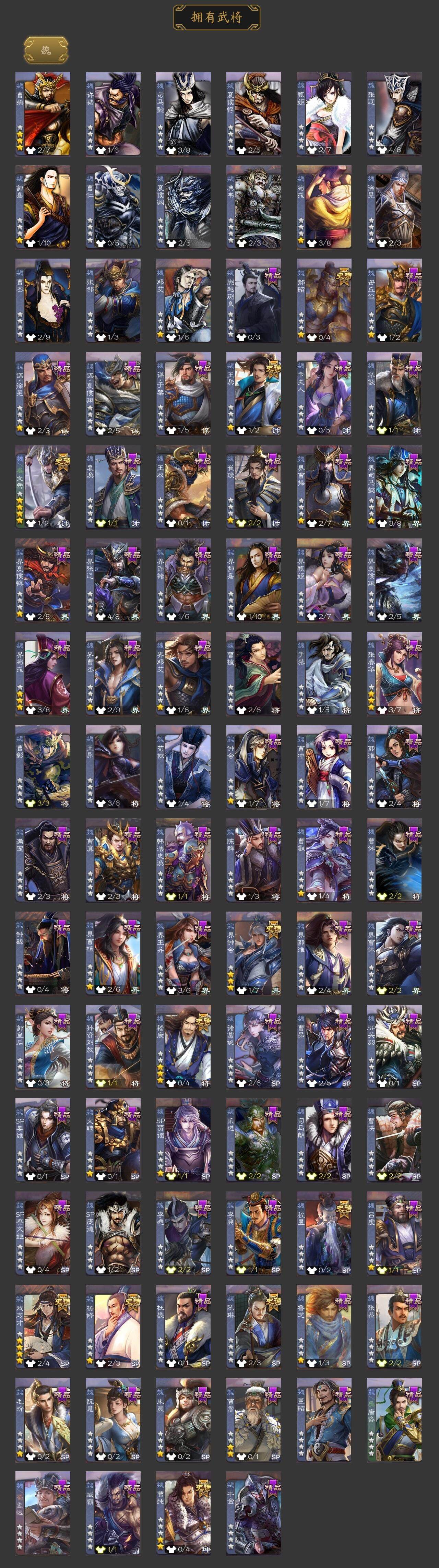 [15176406]【658】官阶:骠骑将军;vip等级:vip10;史诗武将数量:34;动态皮肤数量:21;武将总数:336;史诗宝珠数量:0;将魂数量:423;神将:2;魏国史诗武将:10;蜀国史诗武将:7;吴国史诗武将:8;群史诗武将:10 神孙策神荀彧王粲杨修界钟会嵇康郝昭陈琳曹纯戏志才程昱谋黄忠谋赵云谋马超张星彩沙摩柯谯周花鬘孙皓留赞界徐盛界步练师文鸯谋孙尚香界沮授皇甫嵩左慈王允南华老仙沮授界李儒许攸兀突骨士燮神吕蒙神周瑜神关羽sp关羽sp蔡文姬乐进曹昂诸葛诞朱灵文聘sp姜维张春华钟会曹冲郭淮满宠界王异界曹操界司马懿界夏侯惇界张辽界许褚界郭嘉李典曹真韩浩史涣陈群曹叡曹休钟繇司马朗李通郭皇后孙资刘放界甄姬吕虔鲁芝蒯越蒯良界荀彧杜畿界曹丕毌丘俭界邓艾张恭界曹植界郭淮卞夫人华歆袁涣王双崔琰毛玠阮慧曹嵩谋徐晃谋于禁界曹休谋夏侯渊牛金界夏侯渊臧霸唐咨董昭sp孙尚香关银屏夏侯霸马良关兴张苞廖化界马岱关平简雍刘封界法正界关兴张苞界刘备界关羽界张飞界赵云界马超sp徐庶吴懿周仓张松刘谌夏侯氏糜竺李严黄皓界黄月英界诸葛亮严颜界伊籍界卧龙诸葛界庞统界孟获界祝融杨仪邓芝傅肜费祎糜夫人王甫赵累界周仓宗预蒋琬刘巴谋张飞吴班霍峻诸葛果蒋琬费祎糜芳傅士仁甘夫人鲁肃孙茹凌操大乔小乔诸葛恪诸葛瑾孙鲁育程普韩当潘璋马忠虞翻朱然界周泰界甘宁界吕蒙界黄盖界周瑜界大乔界陆逊孙鲁班朱桓顾雍孙休朱治全琮步骘孙登岑昏界孙权界孙尚香潘濬孙亮严畯吕岱周鲂界孙策界张昭张纮许贡卫温诸葛直界吴国太界程普界潘璋马忠桥公陈武董袭蒋钦濮阳兴谋吕蒙界孙休界全琮孟达伏完刘协界袁术张宝伏皇后李儒界张角华雄袁术界华佗界吕布公孙瓒蔡夫人公孙渊郭图逢纪张鲁严白虎sp黄月英董白刘虞曹节界貂蝉sp太史慈刘琦界庞德界颜良文丑界袁绍樊稠界董卓刘繇董承星张辽星徐晃界公孙瓒丁原界伏皇后羊祜高览马元义