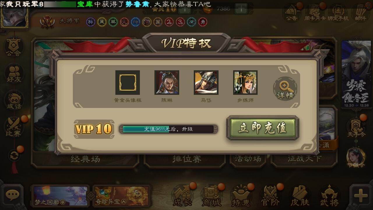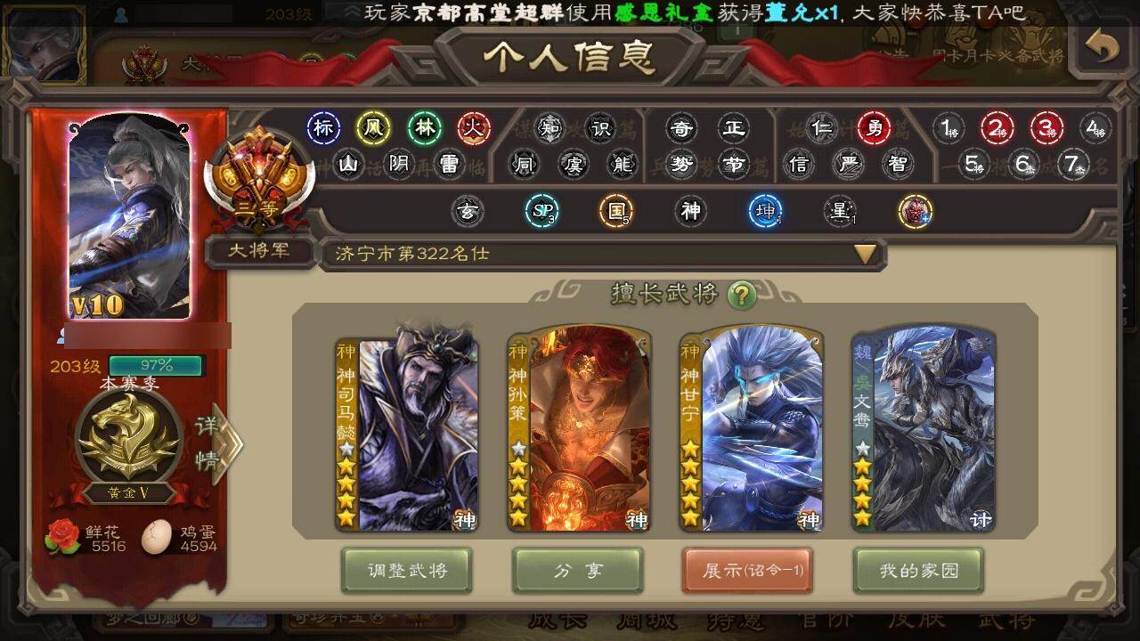 [15176497]【513】官阶:大将军;vip等级:vip10;史诗武将数量:46;动态皮肤数量:41;武将总数:373;史诗宝珠数量:7;将魂数量:762;神将:8;魏国史诗武将:20;蜀国史诗武将:10;吴国史诗武将:5;群史诗武将:15 神吕布神赵云神司马懿神甘宁神张辽神孙策神吕蒙神周瑜星周不疑王粲文鸯王元姬魏-司马昭界钟会界于禁嵇康郝昭曹纯戏志才刘晔清河公主谋赵云谋马超诸葛瞻周群张星彩沙摩柯谯周傅佥界黄忠花鬘周处骆统留赞界徐盛界步练师谋荀彧郑玄苏飞司马徽麹义南华老仙界李儒公孙康卑弥呼鲍信谋张角张绣李傕阎象许攸神孙策-霸王再世动态神甘宁-万人辟易动态神吕布-监兵噬魅动态神司马懿-鉴往知来动态星周不疑-才广志宏动态钟会-潜蛟觊天动态曹丕-气荡山河(动态)甄姬-明珠耀躯(动态)sp蔡文姬-兔年冬日动态荀彧-驱虎吞狼动态邓艾-神兵天降动态界邓艾-神兵天降动态戏志才-举棋若定动态司马昭-昭威淮南(动态)清河公主-魅影萦心动态刘备-龙御天下动态李丰-太仓聚粟动态周处-义除三害动态吕蒙-剑起惊澜动态孙权-永开吴祚动态孙策-虎踞江东动态孙寒华-莲华熠熠动态周瑜-免年清明动态孙权-猪年端午动态小乔-鼠年春分动态界孙权-猪年端午动态界小乔-鼠年春分动态徐盛-破军杀将动态刘赞-灵魂歌王动态孙寒华-蛇年限定动态陆逊-蛇年清明动态骆统-落笔生花动态文鸯-势若万钧动态曹节-龙年中秋动态许攸-火烧乌巢动态袁绍-声震寰宇动态南华老仙-冠绝天下动态吕布-鼠年七夕动态许攸-盛气凌人动态界吕布-鼠年七夕动态sp貂蝉-驭魂千机动态sp赵云-单骑救主动态阎象-知天难易动态