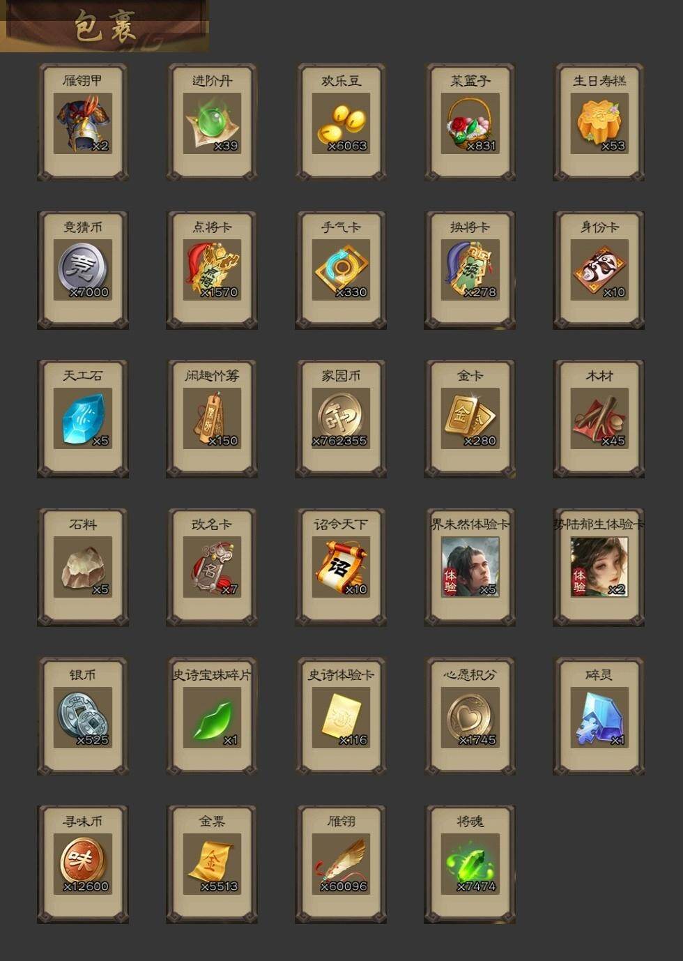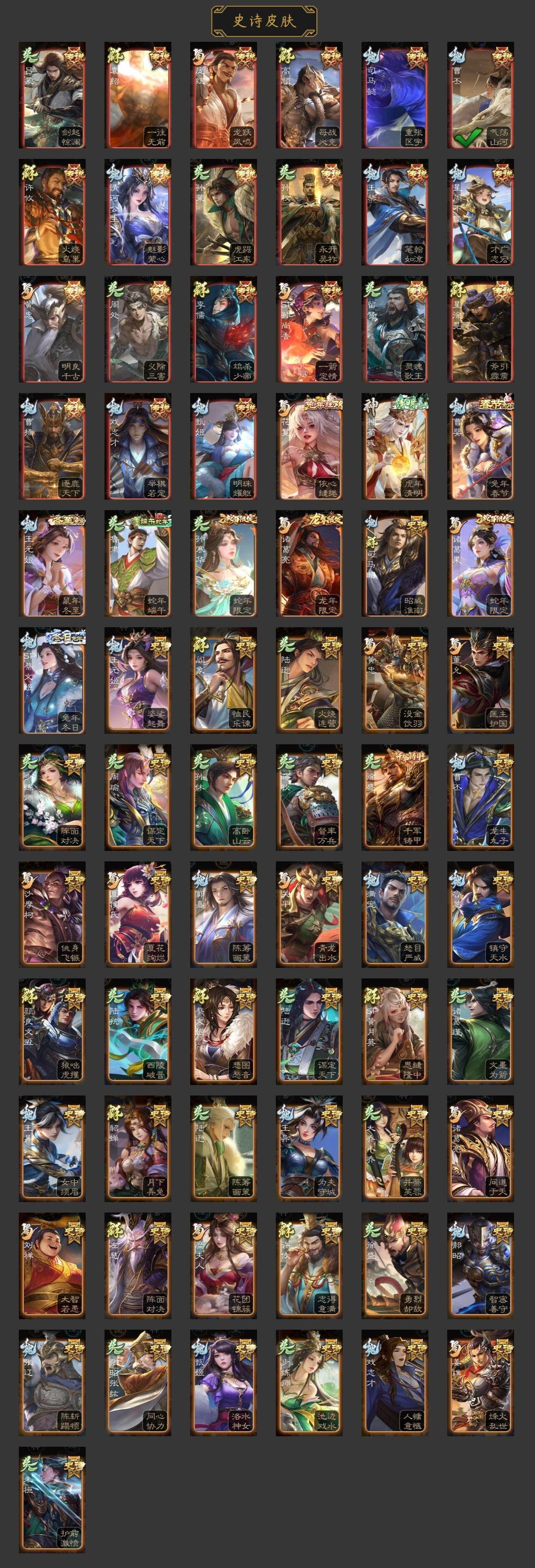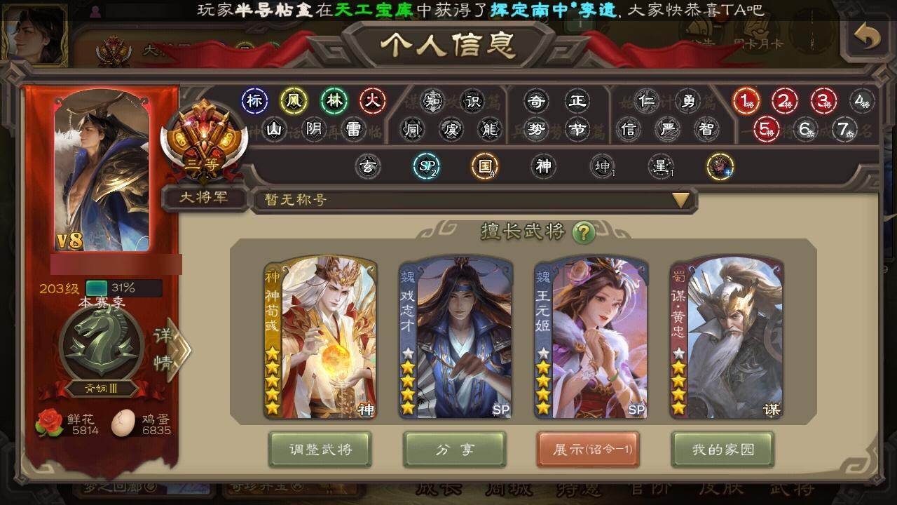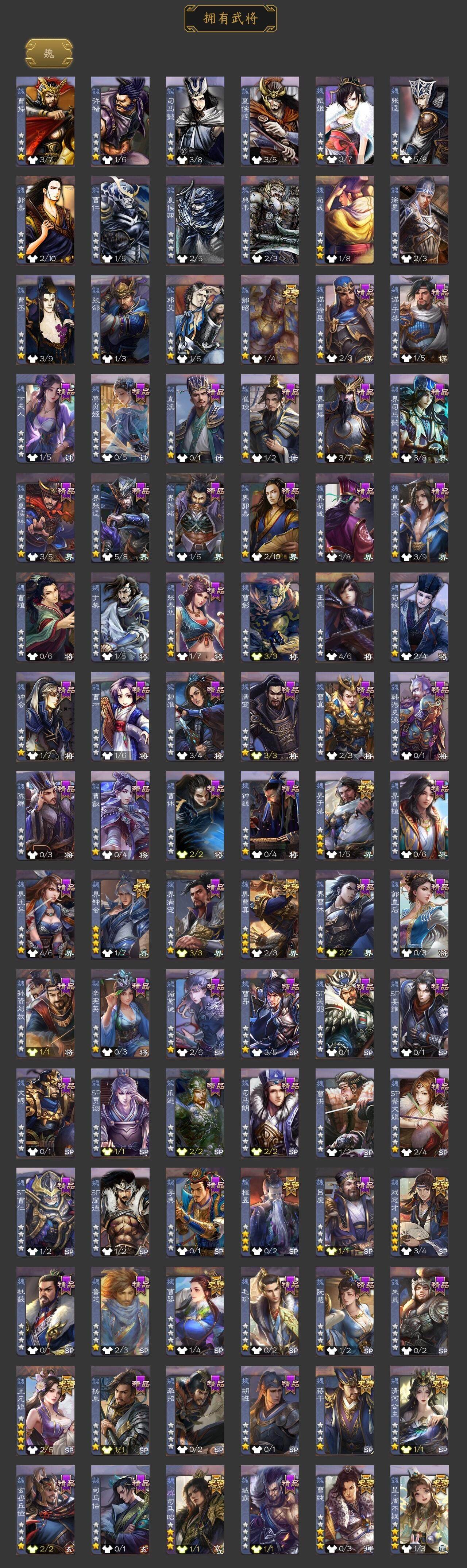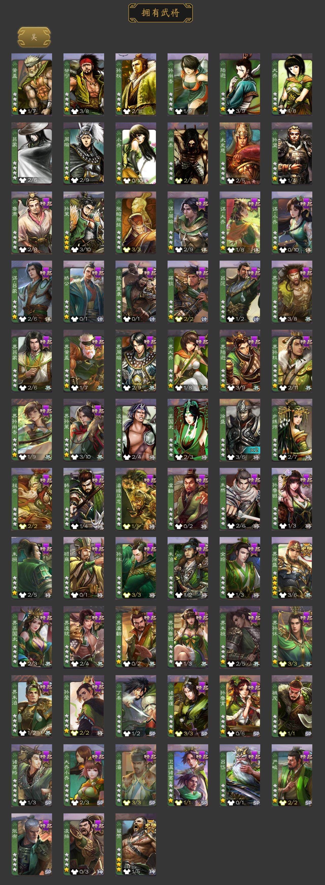 [15176596]【241】官阶:大将军;vip等级:vip8;史诗武将数量:38;动态皮肤数量:30;武将总数:323;史诗宝珠数量:0;将魂数量:7474;神将:5;魏国史诗武将:25;蜀国史诗武将:10;吴国史诗武将:2;群史诗武将:10 神吕布神赵云神荀彧神华佗神关羽星周不疑王元姬魏-司马昭界钟会界于禁界曹真郝昭曹婴曹纯戏志才蒋干清河公主关索马云騄谋黄忠谋赵云谋马超诸葛瞻沙摩柯花鬘董允谋关羽留赞界徐盛裴秀张让麹义南华老仙祢衡界李儒公孙康鲍信谋张角阎象神荀彧-虎年清明动态王元姬-婆娑起舞(动态)星周不疑-才广志宏动态曹丕-气荡山河(动态)甄姬-明珠耀躯(动态)sp蔡文姬-兔年冬日动态王粲-笔翰如流动态戏志才-举棋若定动态曹婴-兔年春节动态王元姬-鼠年冬至动态司马昭-昭威淮南(动态)司马懿-重张区宇(动态)星徐晃-斧引霹雳动态清河公主-魅影萦心动态花鬘-依心缱绻动态诸葛亮-龙年限定动态黄忠-明良千古动态诸葛果-蛇年限定动态周处-义除三害动态吕蒙-剑起惊澜动态孙权-永开吴祚动态孙策-虎踞江东动态刘赞-灵魂歌王动态孙寒华-蛇年限定动态鲁肃-蛇年端午动态高顺-每战必克动态许攸-火烧乌巢动态袁绍-一往无前动态界袁绍-一往无前动态李儒-鸠杀少帝动态界李儒-鸠杀少帝动态