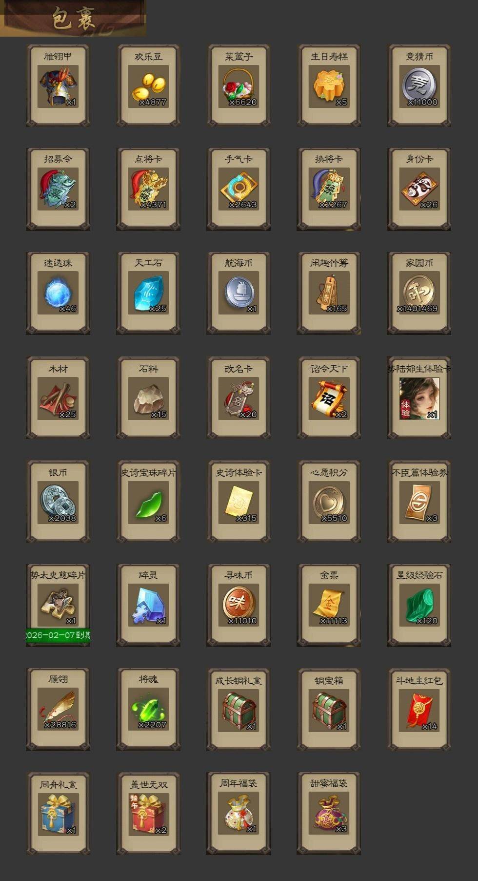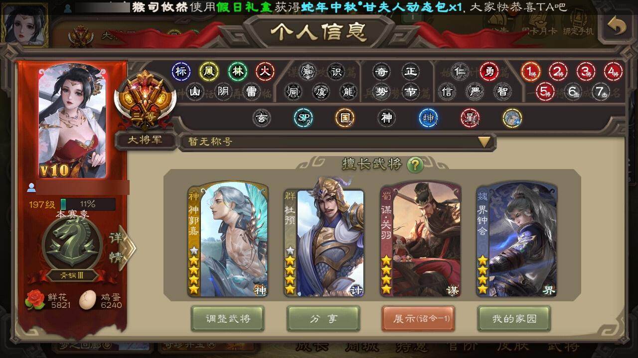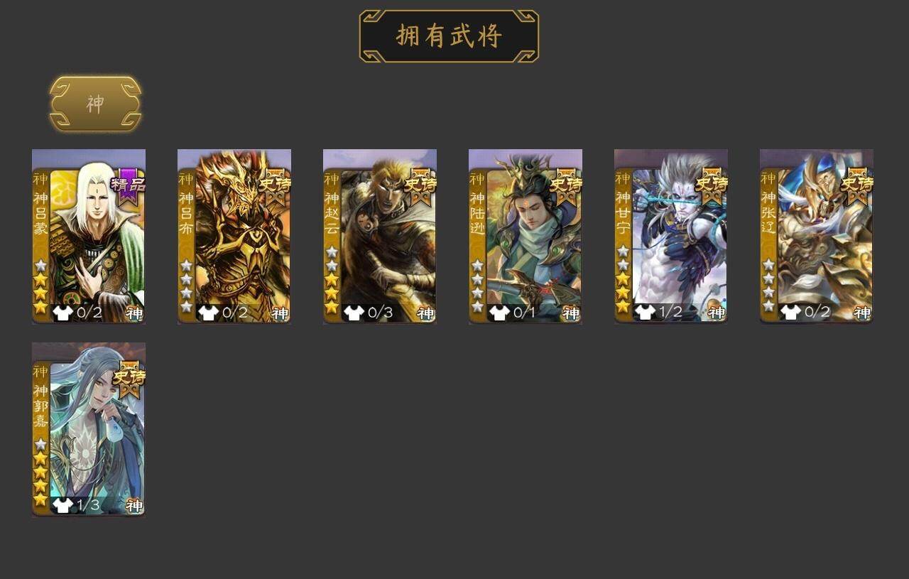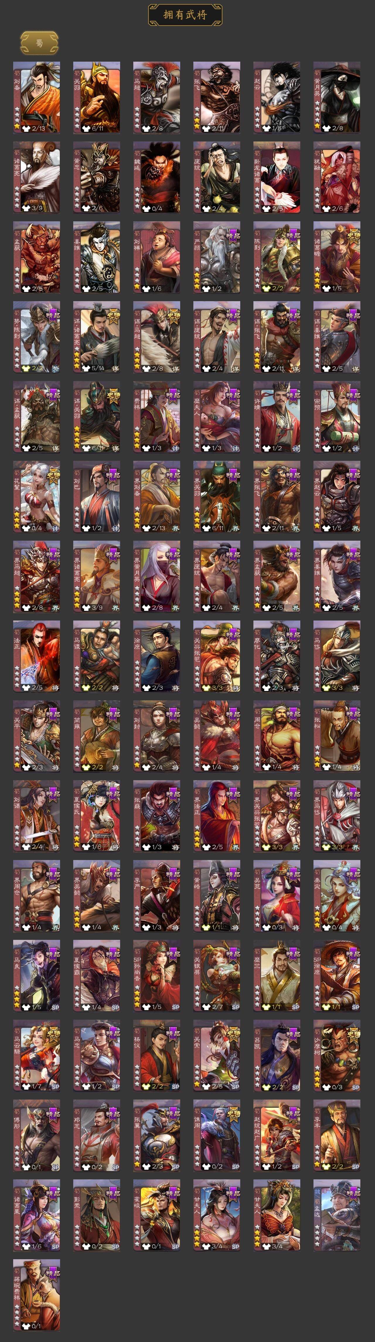 [15177033]【411】官阶:大将军;vip等级:vip10;史诗武将数量:46;动态皮肤数量:44;武将总数:353;史诗宝珠数量:0;将魂数量:2207;神将:7;魏国史诗武将:22;蜀国史诗武将:9;吴国史诗武将:4;群史诗武将:13 神吕布神赵云神陆逊神甘宁神张辽神郭嘉神吕蒙王粲杨修文鸯马钧界钟会界于禁界曹真嵇康郝昭陈琳曹纯戏志才关索谋诸葛亮马云騄谋马超诸葛瞻沙摩柯谯周花鬘谋关羽骆统留赞界朱然界徐盛星魏延界沮授左慈郑玄麹义南华老仙沮授界左慈界李儒公孙康杜预李傕星董卓神郭嘉-虎年清明动态神孙策-霸王再世动态神甘宁-万人辟易动态神诸葛亮-风舞魔鸟动态神诸葛亮-孟章诛邪动态钟会-潜蛟觊天动态曹丕-气荡山河(动态)许褚-虎啸生风动态荀彧-驱虎吞狼动态界许褚-虎啸生风动态钟会-谋谟之勋动态界钟会-谋谟之勋动态曹昂-竭战麟伤动态羊徽瑜-牛年中秋动态司马师-牛年中秋动态星徐晃-斧引霹雳动态刘备-龙御天下动态卧龙诸葛-龙跃凤鸣动态刘备-明良千古动态关羽-明良千古动态马超-明良千古动态张飞-明良千古动态黄月英-虎年中秋动态诸葛瞻-绵竹之殇动态界刘备-明良千古动态夏侯氏-明良千古动态张星彩-虎年端午动态关索-虎年七夕动态鲍三娘-虎年七夕动态甘夫人-为君担忧动态李丰-太仓聚粟动态胡金定-明良千古动态太史慈-涤荡江东动态周处-义除三害动态周瑜-兔年七夕动态孙策-虎踞江东动态步骘-鸿笔丽藻动态孙权-冠绝天下动态孙尚香-兔年春节动态徐盛-破军杀将动态朱然-剑舞枫飞动态孙鲁育-牛年端午动态刘赞-灵魂歌王动态骆统-落笔生花动态麹义-扬刀立威动态杜预-龙吟破竹动态吕布-鼠年七夕动态吕布-傲睨万物动态张角-黄天当立动态左慈-役使鬼神动态谋刘赪-明良千古动态界吕布-鼠年七夕动态张宝-苍天已死动态星甘宁-肝胆相照动态左慈-蛇年限定动态