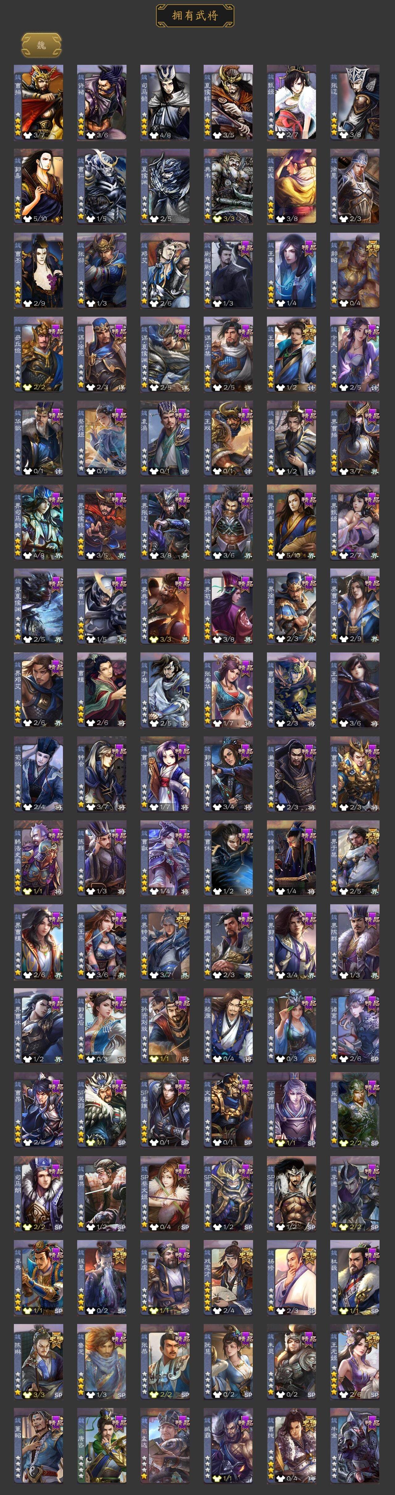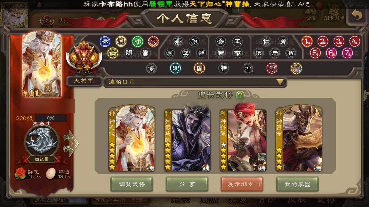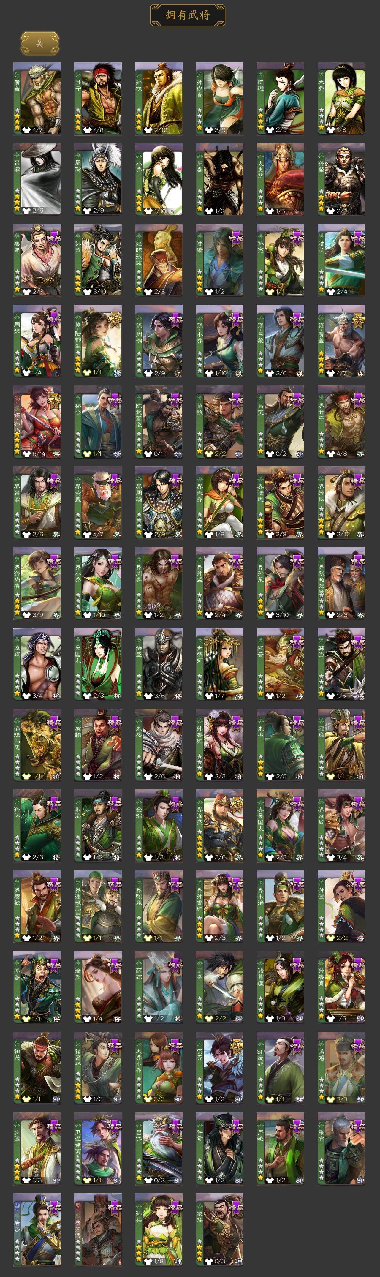 [15177106]【671】官阶:大将军;vip等级:vip11;史诗武将数量:47;动态皮肤数量:28;武将总数:396;史诗宝珠数量:13;将魂数量:1062;神将:7;魏国史诗武将:12;蜀国史诗武将:11;吴国史诗武将:6;群史诗武将:14 神吕布神赵云神司马懿神张辽神孙策神荀彧神诸葛亮王粲杨修王元姬界钟会界于禁嵇康郝昭陈琳曹纯戏志才程昱关索马云騄谋赵云谋马超诸葛瞻赵襄张星彩沙摩柯界黄忠花鬘董允谋黄盖界徐盛贺齐势陆郁生谋孙尚香左慈张让杨彪审配麹义南华老仙沮授界左慈界李儒公孙康卑弥呼许攸兀突骨士燮神吕蒙神周瑜神关羽sp关羽sp曹仁sp蔡文姬乐进曹昂诸葛诞朱灵文聘sp姜维张春华钟会曹冲郭淮满宠界王异界曹操界司马懿界夏侯惇界张辽界许褚界郭嘉李典曹真韩浩史涣陈群曹叡曹休钟繇司马朗王基李通郭皇后孙资刘放辛宪英界甄姬吕虔鲁芝蒯越蒯良界典韦界荀彧界徐晃杜畿界曹丕毌丘俭界邓艾张恭界曹植界满宠界郭淮卞夫人界陈群华歆蔡贞姬袁涣王双崔琰阮慧谋徐晃谋于禁界曹休谋夏侯渊牛金界夏侯渊界曹仁臧霸唐咨董昭sp孙尚香关银屏夏侯霸马良关兴张苞廖化界马岱关平简雍刘封界法正界关兴张苞界刘备界关羽界张飞界赵云界马超sp徐庶吴懿周仓张松刘谌夏侯氏糜竺马忠孙乾李严黄皓吴苋秦宓界黄月英界诸葛亮赵统赵广严颜界伊籍界卧龙诸葛界庞统界孟获界祝融陈到界姜维界刘禅胡金定张翼杨仪界廖化邓芝界简雍费祎糜夫人王甫赵累界周仓宗预蒋琬刘巴彭羕谋庞统界张嶷谋张飞吴班诸葛果界魏延蒋琬费祎糜芳傅士仁甘夫人鲁肃孙茹凌操大乔小乔诸葛恪诸葛瑾孙鲁育程普韩当潘璋马忠虞翻朱然界周泰界甘宁界吕蒙界黄盖界周瑜界大乔界陆逊孙鲁班朱桓顾雍孙休朱治全琮步骘孙登岑昏徐氏薛综界孙权界孙尚香潘濬sp庞统陆绩孙亮严畯界孙坚吕岱周妃陆抗界孙策界张昭张纮许贡卫温诸葛直界吴国太界凌统界虞翻界潘璋马忠桥公陈武董袭蒋钦吕范