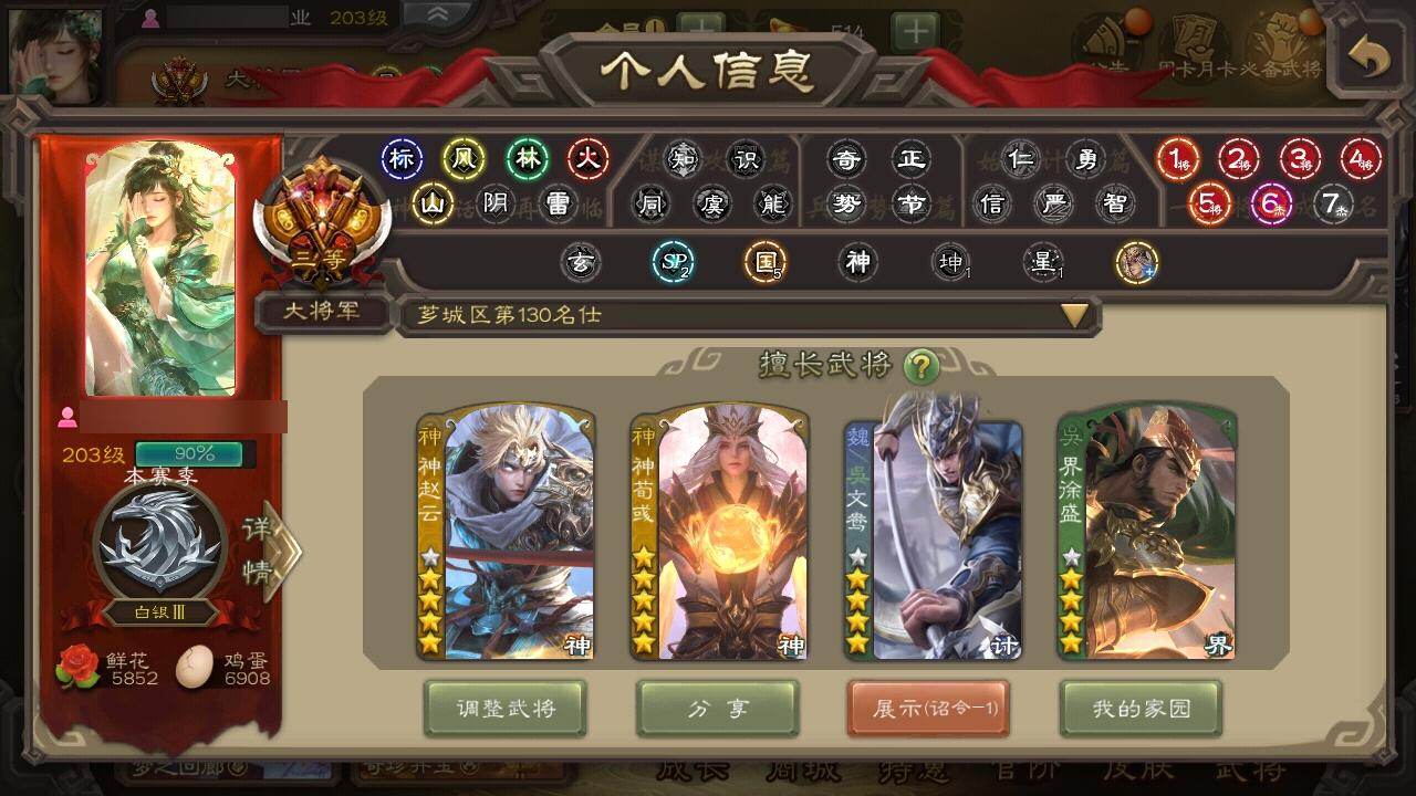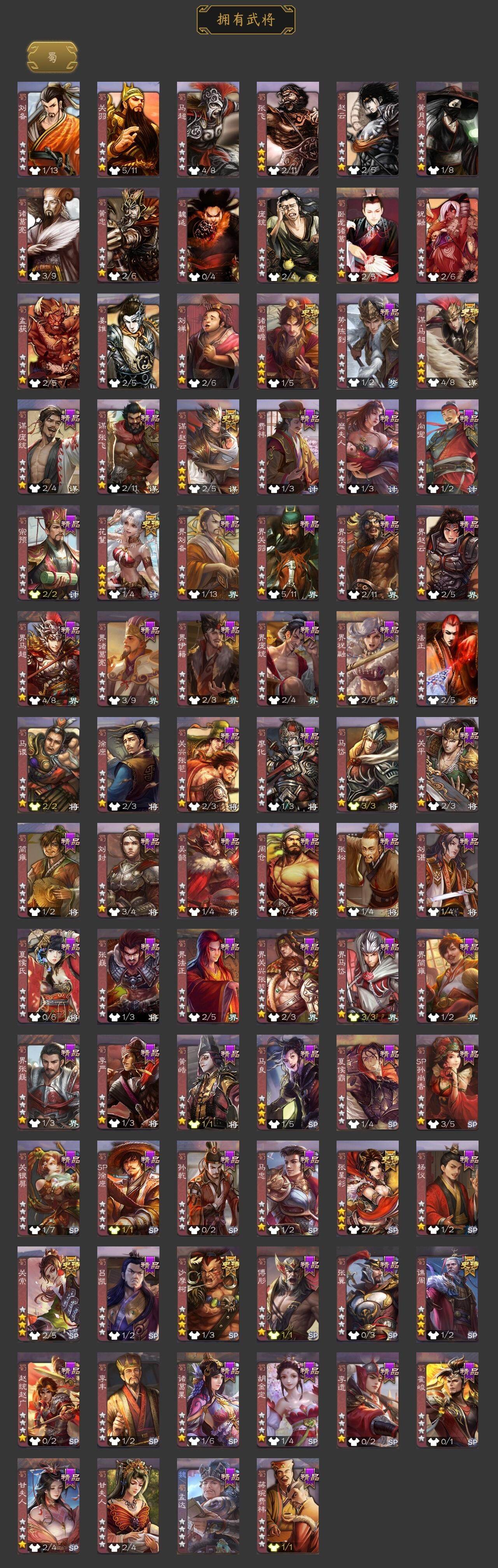 [15177150]【832】官阶:大将军;vip等级:vip9;史诗武将数量:38;动态皮肤数量:35;武将总数:373;史诗宝珠数量:0;将魂数量:5761;神将:7;魏国史诗武将:16;蜀国史诗武将:8;吴国史诗武将:6;群史诗武将:11 神赵云神陆逊神荀彧神关羽神吕蒙神周瑜神诸葛亮星周不疑杨修文鸯魏-司马昭界于禁嵇康陈琳曹纯戏志才清河公主关索谋赵云谋马超诸葛瞻张星彩沙摩柯谯周花鬘吴景骆统界朱然界徐盛势陆郁生势太史慈谋荀彧左慈张让麹义南华老仙沮授卑弥呼谋张角张绣许攸星董卓神太史慈-勇撼日月动态神荀彧-虎年清明动态神荀彧-匡汉延祚动态神赵云-鳞振九霄星周不疑-才广志宏动态曹植-龙年中秋动态甄姬-明珠耀躯(动态)sp蔡文姬-兔年冬日动态戏志才-举棋若定动态王元姬-鼠年冬至动态司马昭-昭威淮南(动态)清河公主-魅影萦心动态花鬘-依心缱绻动态关索-依心缱绻动态关羽-明良千古动态马超-牛年春节动态赵云-牛年春节动态界赵云-牛年春节动态界马超-牛年春节动态诸葛果-蛇年限定动态卧龙诸葛-火烧博望动态孙策-兔年中秋动态周处-义除三害动态吕蒙-剑起惊澜动态孙权-永开吴祚动态孙尚香-兔年春节动态文鸯-势若万钧动态袁绍-声震寰宇动态南华老仙-冠绝天下动态李儒-鸠杀少帝动态sp赵云-威名尽显动态皇甫嵩-奋钺振旅动态