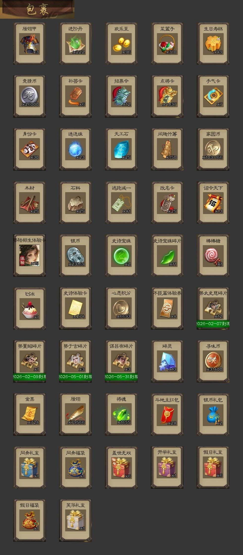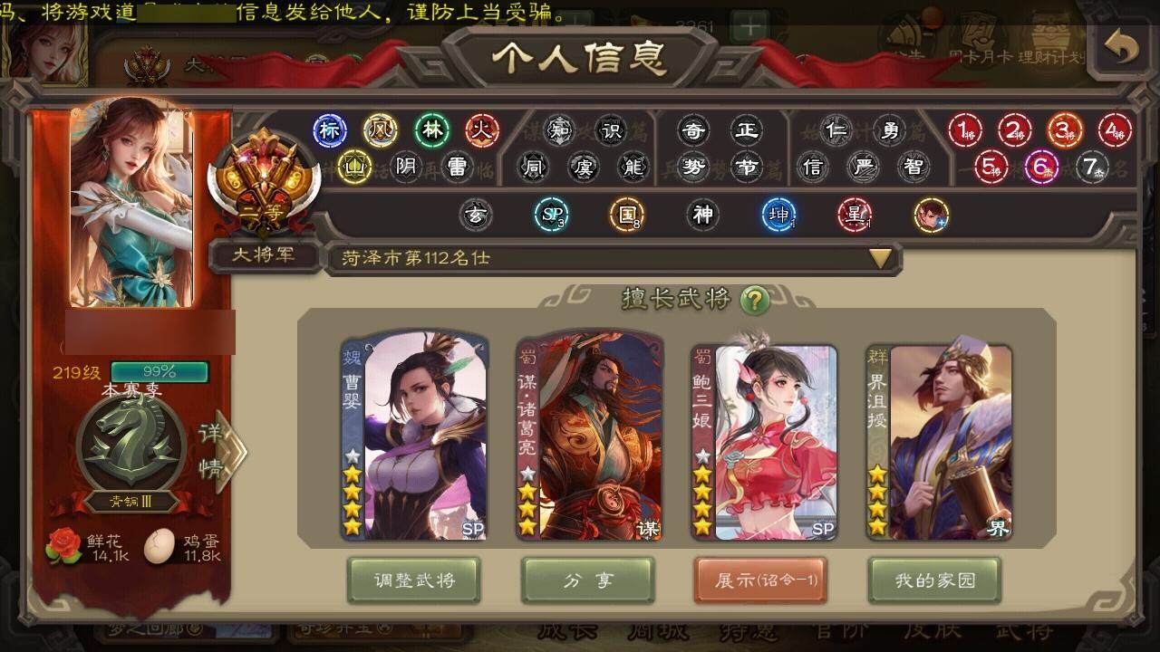 [15177610]【878】官阶:大将军;vip等级:vip10;史诗武将数量:53;动态皮肤数量:54;武将总数:404;史诗宝珠数量:2;将魂数量:1655;神将:6;魏国史诗武将:33;蜀国史诗武将:14;吴国史诗武将:8;群史诗武将:17 神吕布神赵云神陆逊神吕蒙神周瑜神诸葛亮sp司马昭星周不疑王元姬魏-司马昭马钧界钟会界曹真陈琳曹婴曹纯戏志才清河公主关索谋诸葛亮马云騄谋夏侯氏谋赵云谋马超诸葛瞻赵襄张星彩沙摩柯界黄忠花鬘董允鲍三娘周处吴景骆统留赞界朱然界徐盛界步练师势陆郁生谋郭嘉界沮授左慈张让苏飞司马徽麹义南华老仙沮授界左慈界李儒杜预谋张角张绣李傕许攸星董卓神陆逊-绽焰摧枯动态神诸葛亮-孟章诛邪动态神吕布-监兵噬魅动态神赵云-战龙在野动态鲍三娘-情定缘起星周不疑-才广志宏动态曹丕-气荡山河(动态)甄姬-明珠耀躯(动态)sp蔡文姬-兔年冬日动态许褚-虎啸生风动态甄姬-牛年清明动态荀彧-驱虎吞狼动态界许褚-虎啸生风动态界甄姬-牛年清明动态钟会-谋谟之勋动态界钟会-谋谟之勋动态戏志才-举棋若定动态曹婴-锋芒毕露动态朱灵-以战破氐动态王元姬-鼠年冬至动态司马昭-昭威淮南(动态)清河公主-魅影萦心动态刘备-龙御天下动态诸葛亮-龙年限定动态费祎-安民护祚(动态)马超-牛年春节动态马超-虎年冬至动态张飞-猪年中秋动态诸葛瞻-绵竹之殇动态界张飞-猪年中秋动态界马超-牛年春节动态关银屏-虎年端午动态关银屏-兔年春节动态马云騄-牛年春节动态关索-虎年七夕动态李丰-太仓聚粟动态胡金定-明良千古动态太史慈-涤荡江东动态孙策-兔年清明动态周处-义除三害动态吕蒙-剑起惊澜动态孙权-兔年中秋动态孙权-永开吴祚动态孙策-虎踞江东动态孙尚香-兔年春节动态孙尚香-星流霆击动态大乔-猪年七夕动态界大乔-猪年七夕动态界孙尚香-星流霆击动态孙鲁育-牛年端午动态刘赞-抗音而歌动态灵雎-霜刃绚练动态袁绍-声震寰宇动态