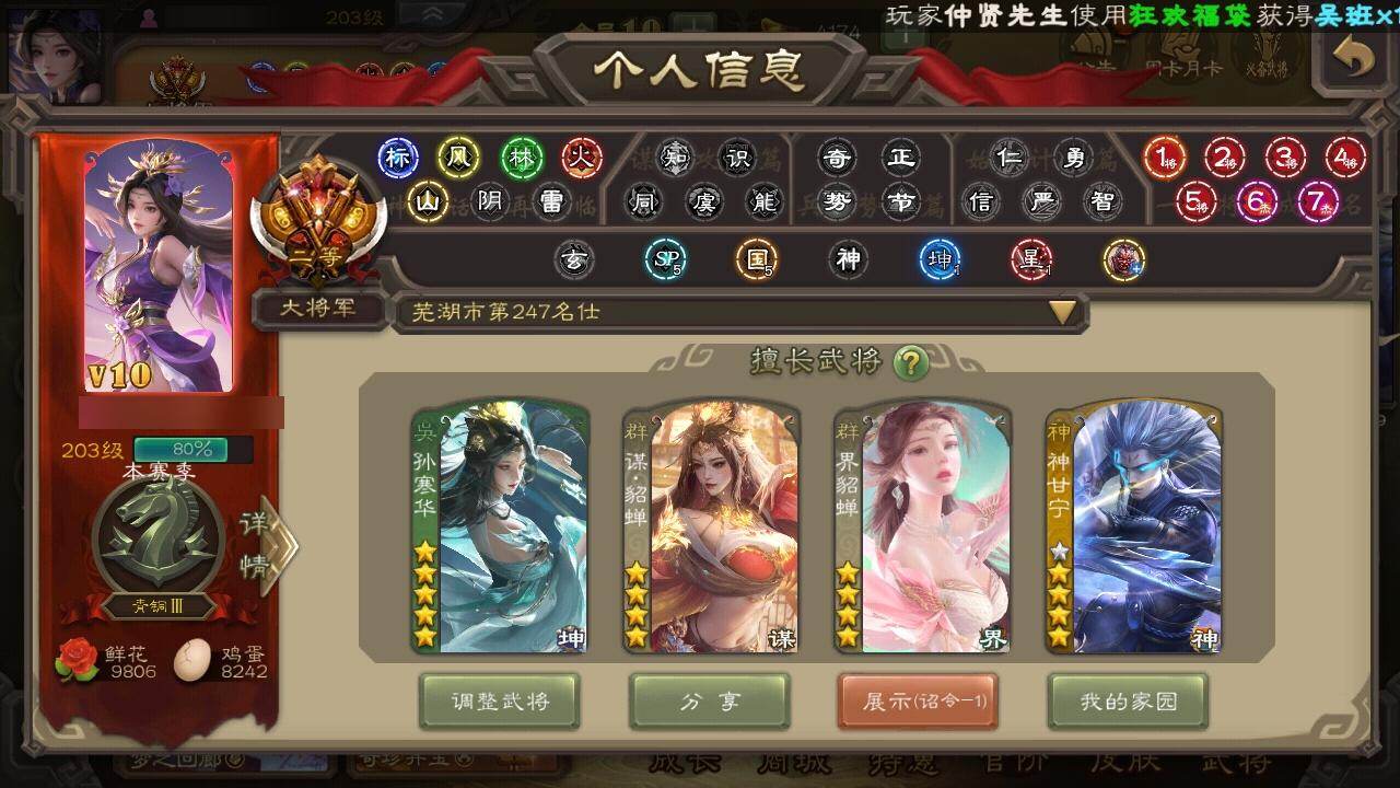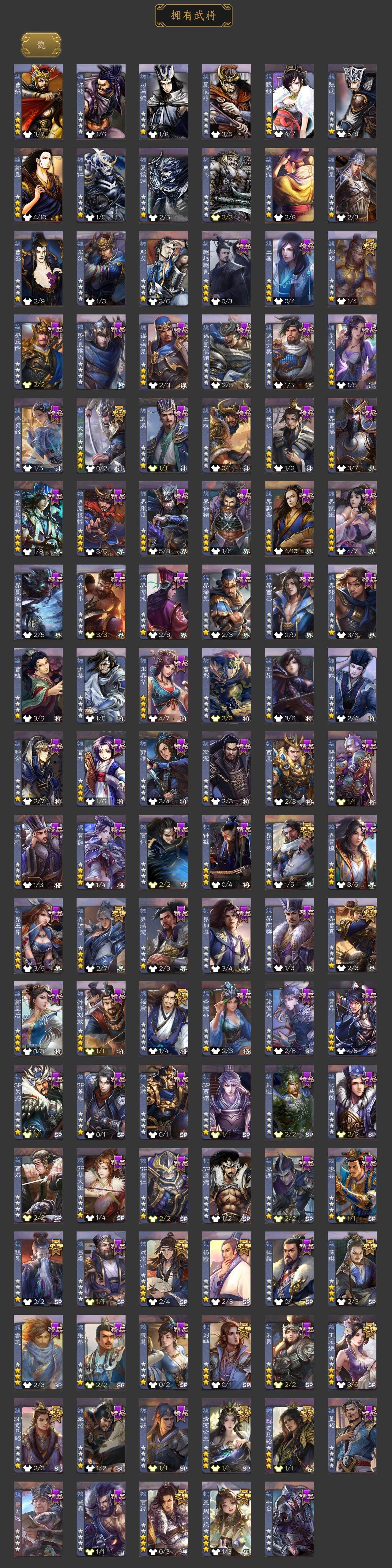 [15177662]【84】官阶:大将军;vip等级:vip10;史诗武将数量:64;动态皮肤数量:50;武将总数:415;史诗宝珠数量:14;将魂数量:11000;神将:8;魏国史诗武将:33;蜀国史诗武将:12;吴国史诗武将:11;群史诗武将:17 神吕布神赵云神陆逊神甘宁神张辽神太史慈神吕蒙神周瑜sp司马昭星周不疑杨修文鸯王元姬魏-司马昭界钟会界于禁界曹真嵇康郝昭陈琳曹纯戏志才刘晔清河公主关索谋诸葛亮马云騄诸葛瞻赵襄张星彩王平沙摩柯谯周界黄忠花鬘董允谋黄盖吴景孙皓孙寒华骆统留赞界朱然界徐盛界步练师贺齐势太史慈谋貂蝉左慈张让星黄忠陶谦苏飞审配麹义南华老仙祢衡沮授界左慈界李儒公孙康卑弥呼张绣许攸神甘宁-万人辟易动态神曹操-天下归心sp司马昭-鼠年冬至(动态)王元姬-婆娑起舞(动态)曹植-龙年中秋动态钟会-潜蛟觊天动态曹丕-气荡山河(动态)星周不疑-龙年清明动态甄姬-明珠耀躯(动态)sp蔡文姬-兔年冬日动态甄姬-牛年清明动态界甄姬-牛年清明动态张春华-宣穆夜袭动态张春华-雪中舞刃动态戏志才-举棋若定动态朱灵-以战破氐动态王元姬-鼠年冬至动态司马昭-昭威淮南(动态)清河公主-魅影萦心动态刘备-龙御天下动态诸葛亮-龙年限定动态关羽-啸风从龙动态黄月英-鼠年春节动态黄月英-明良千古动态刘禅-猪年端午动态界关羽-啸风从龙动态界黄月英-鼠年春节动态界黄月英-明良千古动态界刘禅-猪年端午动态马云騄-猪年大雪动态关索-鼠年中秋动态诸葛果-仙池起舞动态诸葛果-蛇年限定动态周处-义除三害动态孙权-永开吴祚动态孙寒华-莲华熠熠动态孙寒华-威灵尽显动态孙尚香-星流霆击动态大乔-猪年七夕动态小乔-猪年大雪动态鲁肃-联刘抗曹动态周妃-笼中箜响动态界大乔-猪年七夕动态界孙尚香-星流霆击动态界小乔-猪年大雪动态徐盛-破军杀将动态徐氏-琪花瑶草动态孙鲁育-牛年端午动态刘赞-灵魂歌王动态孙寒华-蛇年限定动态灵雎-霜刃绚练