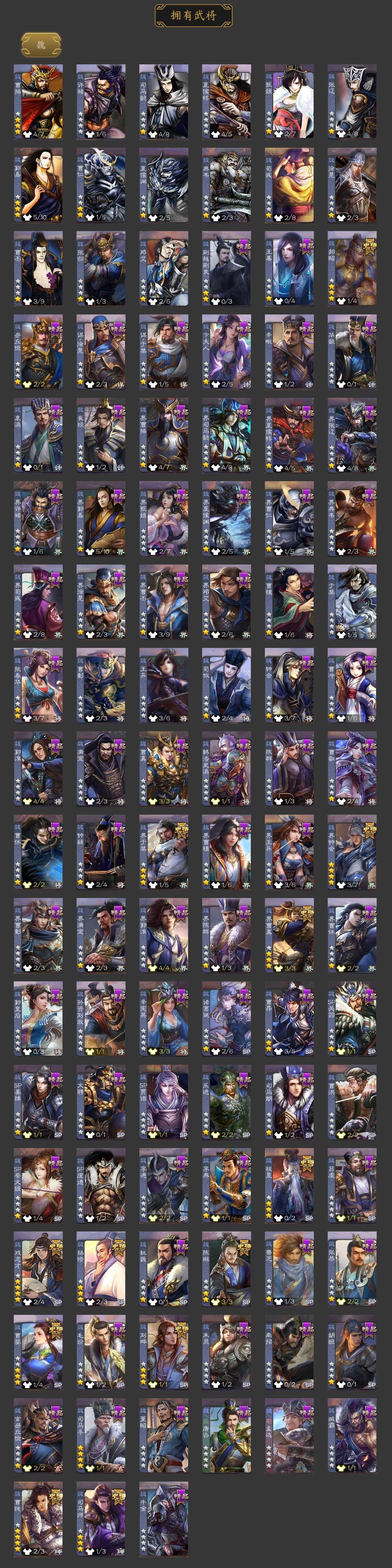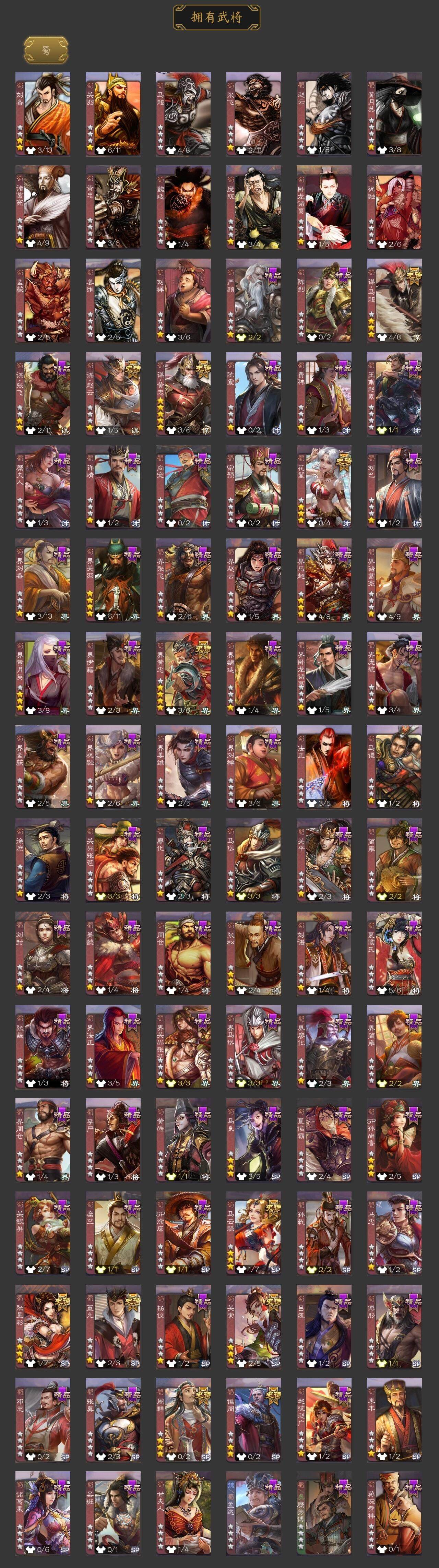 [15177775]【966】官阶:大将军;vip等级:vip11;史诗武将数量:48;动态皮肤数量:32;武将总数:405;史诗宝珠数量:3;将魂数量:2166;神将:10;魏国史诗武将:33;蜀国史诗武将:11;吴国史诗武将:6;群史诗武将:14 神赵云神甘宁神张辽神太史慈神荀彧神关羽神吕蒙神周瑜神诸葛亮神鲁肃杨修司马师界钟会界于禁界曹真郝昭陈琳曹婴曹纯戏志才刘晔关索马云騄谋黄忠谋赵云谋马超周群张星彩谯周界黄忠花鬘董允周处孙寒华骆统留赞界朱然界徐盛星魏延左慈张让星甘宁陶谦麹义南华老仙沮授界李儒公孙康杜预张绣李傕许攸神郭嘉-虎年清明动态神荀彧-虎年清明动态神荀彧-匡汉延祚动态神甘宁-万人辟易动态神司马懿-鉴往知来动态羊徽瑜-月耀华裳(动态)钟繇-安民护祚(动态)甄姬-明珠耀躯(动态)sp蔡文姬-兔年冬日动态曹丕-牛年清明动态邓艾-神兵天降动态界曹丕-牛年清明动态界邓艾-神兵天降动态张春华-牛年立冬动态钟会-谋谟之勋动态曹真-虎年春节动态界钟会-谋谟之勋动态辛宪英-鼠年春节动态戏志才-举棋若定动态朱灵-以战破氐动态曹纯-虎年春节动态曹纯-长坂败备动态羊徽瑜-牛年中秋动态关索-依心缱绻动态刘备-猪年圣诞动态关羽-啸风从龙动态马超-牛年春节动态黄月英-鼠年春节动态诸葛亮-明良千古动态界刘备-猪年圣诞动态界关羽-啸风从龙动态界马超-牛年春节动态界诸葛亮-明良千古动态界黄月英-鼠年春节动态夏侯氏-明良千古动态sp孙尚香-猪年圣诞动态关索-虎年七夕动态黄盖-鏖战赤壁动态孙权-猪年端午动态孙权-牛年七夕动态孙权-吴王六剑动态孙尚香-兔年春节动态孙尚香-星流霆击动态鲁肃-联刘抗曹动态界黄盖-鏖战赤壁动态界孙权-猪年端午动态界孙权-牛年七夕动态界孙权-吴王六剑动态界孙尚香-星流霆击动态步练师-牛年七夕动态孙鲁班-牛年端午动态界孙鲁班-牛年端午动态徐氏-琪花瑶草动态左慈-役使鬼神动态张鲁-虎年