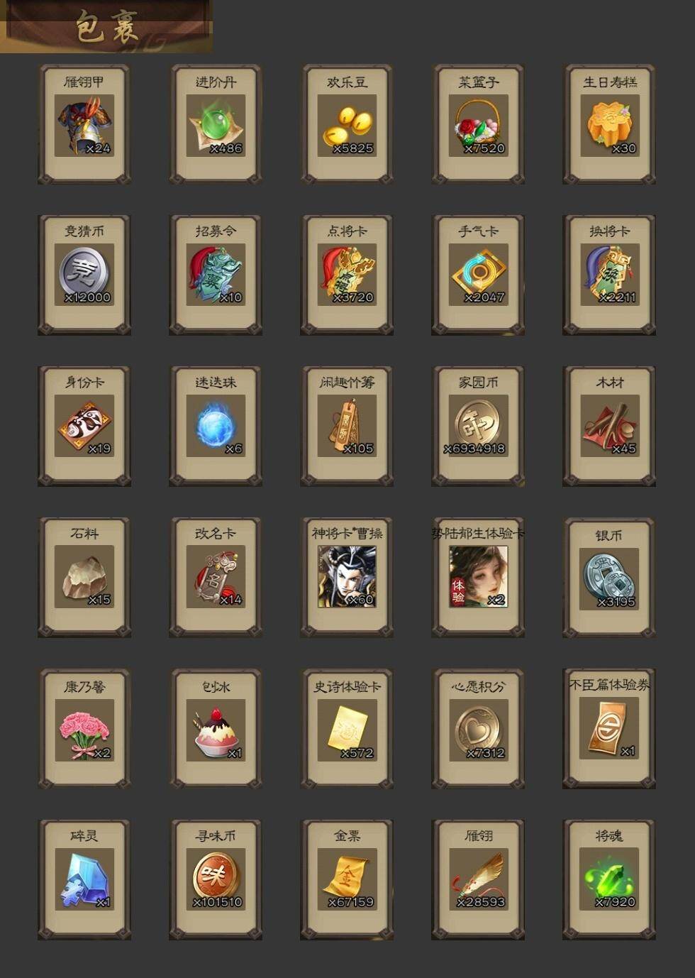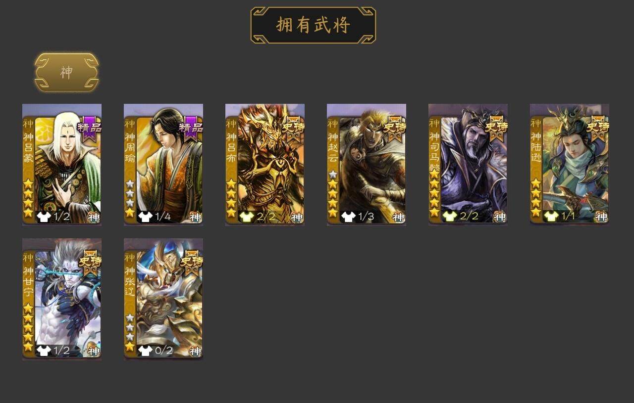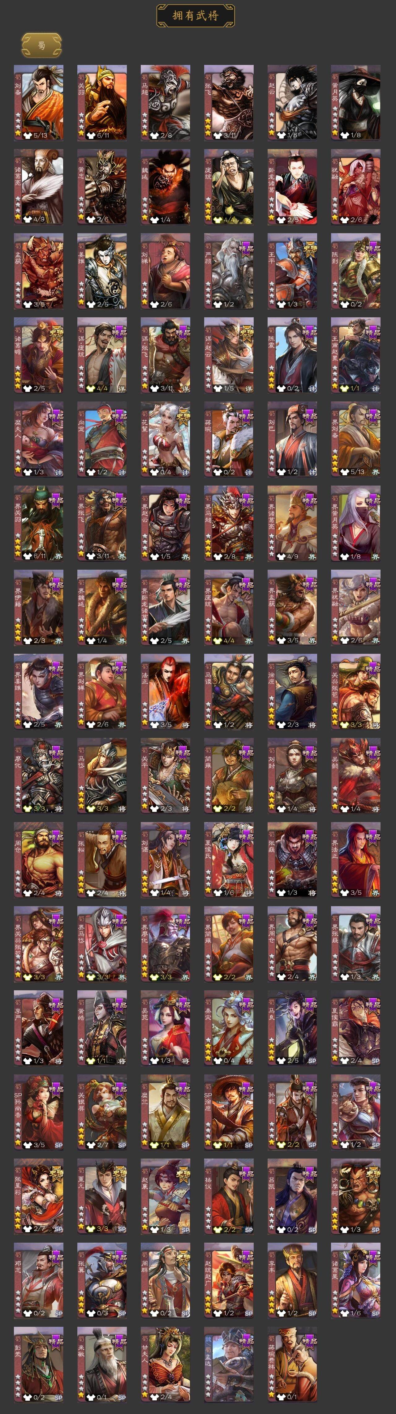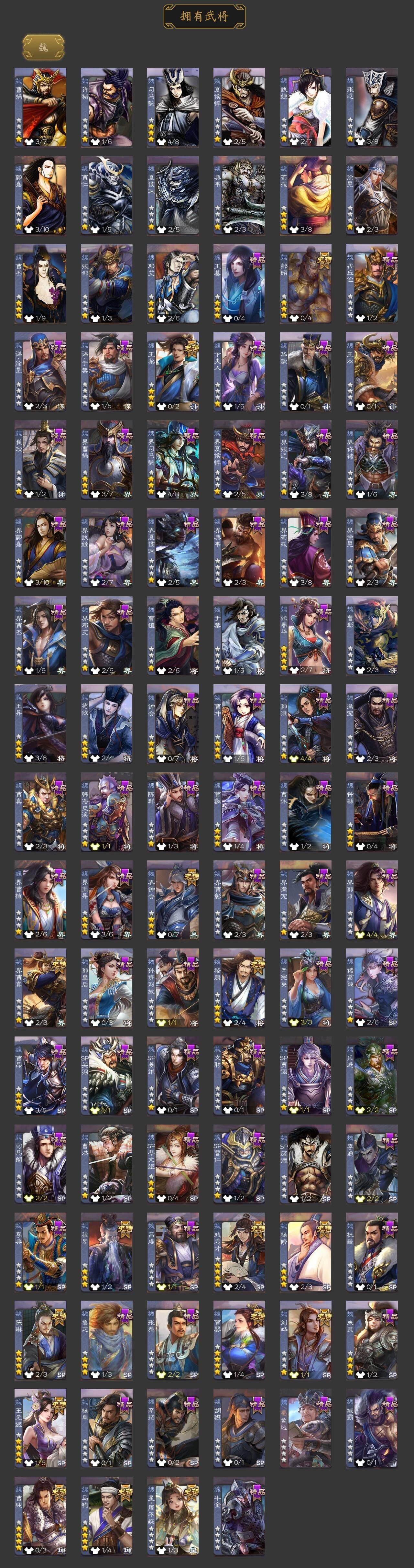[15177840]【289】官阶:大将军;vip等级:vip11;史诗武将数量:52;动态皮肤数量:33;武将总数:400;史诗宝珠数量:0;将魂数量:7920;神将:8;魏国史诗武将:19;蜀国史诗武将:9;吴国史诗武将:6;群史诗武将:18 神吕布神赵云神司马懿神陆逊神甘宁神张辽神吕蒙神周瑜星周不疑王粲杨修王元姬马钧界钟会界曹真嵇康郝昭陈琳曹婴曹纯戏志才刘晔谋赵云诸葛瞻周群赵襄张星彩王平沙摩柯花鬘董允吴景孙皓留赞界朱然界徐盛贺齐左慈张让张琪瑛陶谦麹义南华老仙祢衡刘焉沮授界李儒公孙康杜预卑弥呼谋张角张绣李傕阎象许攸神甘宁-万人辟易动态神陆逊-绽焰摧枯动态神吕蒙-兼资文武动态神诸葛亮-观星唤雨神司马懿-徐图大略神曹操-天下归心神吕布-监兵噬魅动态神吕布-冠绝天下动态神赵云-战龙在野动态神司马懿-鉴往知来动态星周不疑-才广志宏动态张昌蒲-龙年端午(动态)曹植-龙年中秋动态邓艾-神兵天降动态界邓艾-神兵天降动态张春华-宣穆夜袭动态辛宪英-鼠年春节动态程昱-泰山捧日动态戏志才-举棋若定动态曹婴-锋芒毕露动态朱灵-以战破氐动态刘备-龙御天下动态卧龙诸葛-龙跃凤鸣动态刘备-明良千古动态马超-牛年春节动态界刘备-明良千古动态界马超-牛年春节动态sp孙尚香-明良千古动态吕蒙-剑起惊澜动态孙策-虎踞江东动态孙权-牛年七夕动态孙尚香-星流霆击动态大乔-猪年七夕动态周瑜-鼠年春节动态小乔-鼠年春分动态界周瑜-鼠年春节动态界大乔-猪年七夕动态界孙权-牛年七夕动态界孙尚香-星流霆击动态界小乔-鼠年春分动态孙鲁育-牛年端午动态许攸-火烧乌巢动态麹义-扬刀立威动态杜预-龙吟破竹动态袁绍-一往无前动态许攸-盛气凌人动态界袁绍-一往无前动态何太后-蛇蝎为心动态sp赵云-单骑救主动态刘焉-雄踞益州动态兀突骨-鼠年春节动态