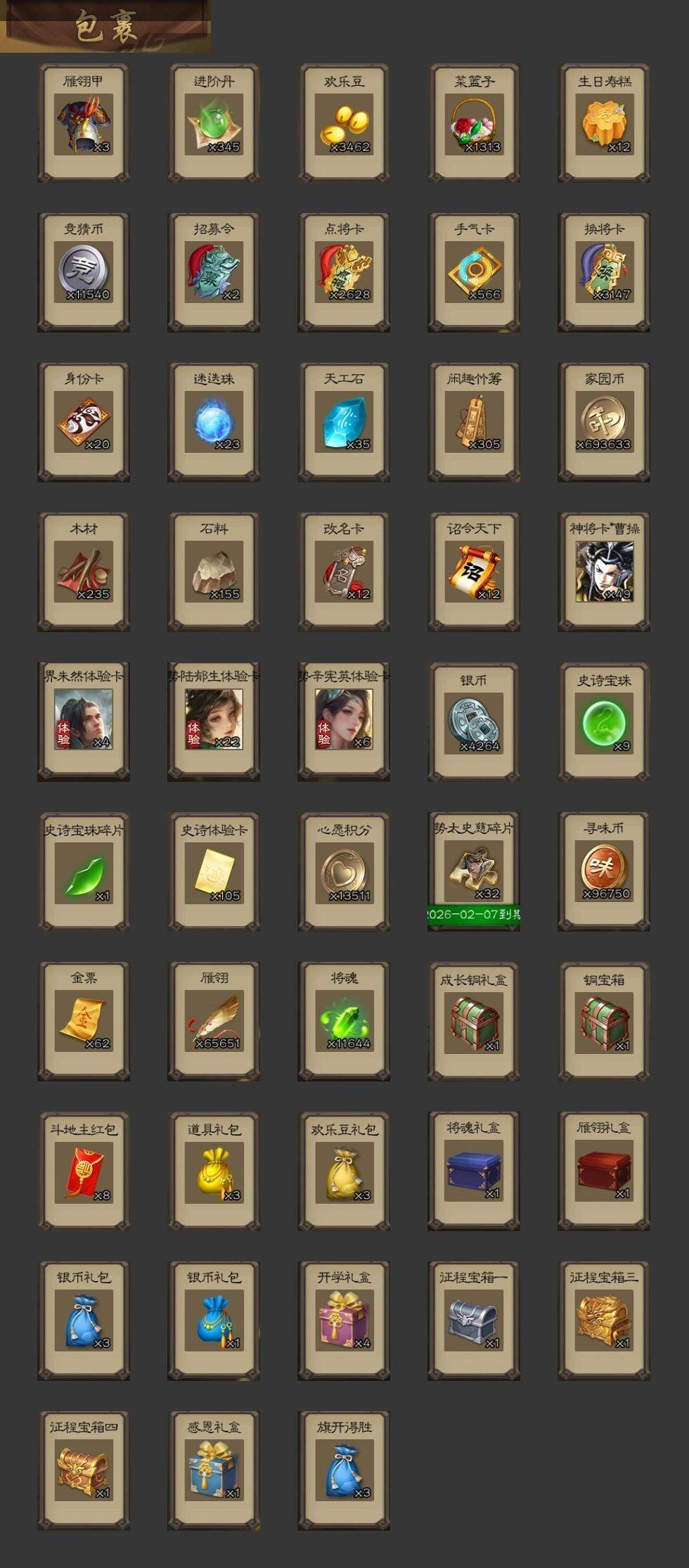 [15178030]【795】官阶:大将军;vip等级:vip9;史诗武将数量:38;动态皮肤数量:29;武将总数:321;史诗宝珠数量:9;将魂数量:11644;神将:2;魏国史诗武将:16;蜀国史诗武将:7;吴国史诗武将:4;群史诗武将:12 神赵云神张辽星周不疑杨修文鸯魏-司马昭界钟会界于禁嵇康曹纯戏志才谋曹丕清河公主谋赵云谋马超诸葛瞻张星彩王平沙摩柯花鬘吴景界徐盛贺齐势陆郁生谋貂蝉裴秀张让张琪瑛星黄忠麹义刘焉界李儒公孙康谋张角谋吕布星董卓神曹操-天下归心郭嘉-以身证道(动态)星周不疑-才广志宏动态曹植-龙年中秋动态曹丕-气荡山河(动态)甄姬-明珠耀躯(动态)sp蔡文姬-兔年冬日动态司马昭-昭威淮南(动态)清河公主-魅影萦心动态花鬘-依心缱绻动态诸葛亮-龙年限定动态黄忠-烈箭贯云动态)关羽-明良千古动态诸葛果-蛇年限定动态周处-义除三害动态吕蒙-剑起惊澜动态孙权-永开吴祚动态徐盛-破军杀将动态孙寒华-蛇年限定动态鲁肃-蛇年端午动态文鸯-势若万钧动态袁绍-声震寰宇动态麹义-扬刀立威动态貂蝉-绝世倾城动态刘焉-雄踞益州动态sp赵云-威名尽显动态皇甫嵩-奋钺振旅动态陶谦-安民护祚动态刘焉-龙兴蜀川动态左慈-蛇年限定动态