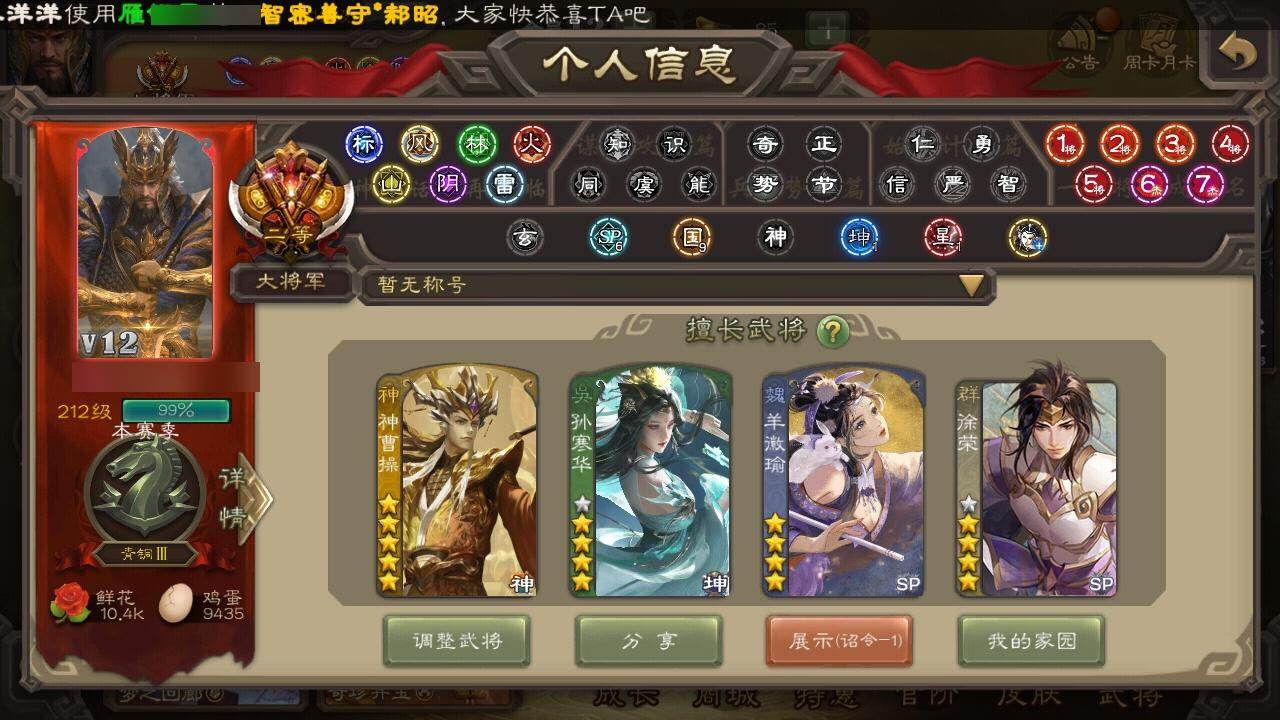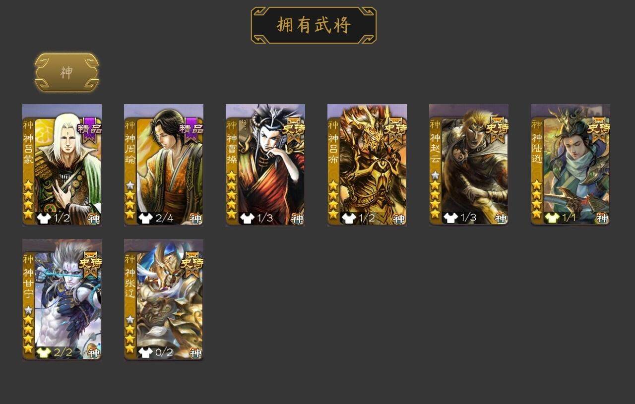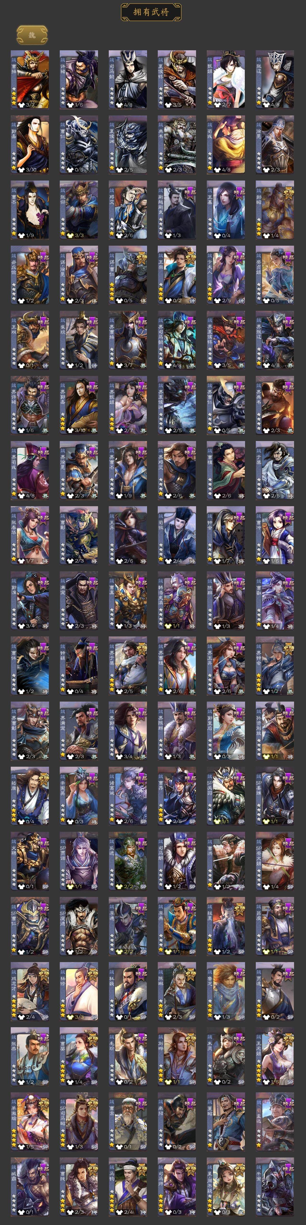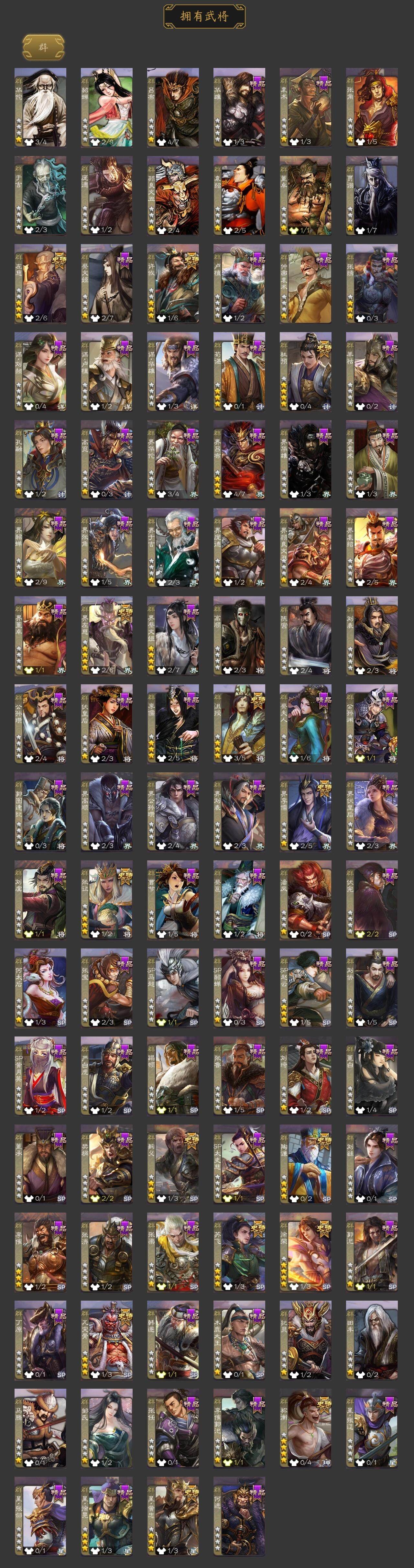 [15178256]【838】官阶:大将军;vip等级:vip12;史诗武将数量:55;动态皮肤数量:37;武将总数:400;史诗宝珠数量:0;将魂数量:723;神将:8;魏国史诗武将:24;蜀国史诗武将:10;吴国史诗武将:6;群史诗武将:15 神曹操神吕布神赵云神陆逊神甘宁神张辽神吕蒙神周瑜sp司马昭星周不疑谋曹仁王粲杨修羊徽瑜王元姬司马师马钧界钟会界于禁嵇康郝昭陈琳曹婴曹纯戏志才刘晔关索马云騄谋马超诸葛瞻赵襄张星彩王平沙摩柯界黄忠董允孙寒华留赞界朱然界徐盛界步练师贺齐左慈张让徐荣星黄忠陶谦苏飞麹义祢衡沮授界左慈界李儒杜预张绣李傕许攸神甘宁-战破无间神甘宁-万人辟易动态神陆逊-绽焰摧枯动态神吕蒙-兼资文武动态神周瑜-焰腾麒麟动态神曹操-玄天通冥动态神吕布-冠绝天下动态神赵云-战龙在野动态sp司马昭-鼠年冬至(动态)sp蔡文姬-兔年冬日动态甄姬-洛水神韵动态张郃-背水一战动态邓艾-神兵天降动态界甄姬-洛水神韵动态界邓艾-神兵天降动态戏志才-举棋若定动态杨修-鼠年端午动态曹婴-锋芒毕露动态曹纯-长坂败备动态王元姬-鼠年冬至动态羊徽瑜-牛年中秋动态马超-牛年春节动态马超-西凉雄狮动态赵云-截江救主动态黄月英-鼠年春节动态界赵云-截江救主动态界马超-牛年春节动态界马超-西凉雄狮动态界黄月英-鼠年春节动态马云騄-牛年春节动态张星彩-猪年中秋动态关索-鼠年中秋动态周处-义除三害动态孙寒华-威灵尽显动态黄盖-鏖战赤壁动态大乔-绝世之姿动态孙策-长沙桓王动态界黄盖-鏖战赤壁动态界大乔-绝世之姿动态界孙策-长沙恒王动态凌统-长风破浪动态徐盛-破军杀将动态步练师-牛年七夕动态孙鲁班-牛年端午动态界凌统-长风破浪动态界步练师-牛年七夕动态孙鲁育-牛年端午动态鲁肃-蛇年端午动态吕布-鼠年七夕动态蔡文姬-泪捻琵琶动态界吕布-鼠年七夕动态界蔡文姬-泪捻琵琶动态苏飞-肝胆相照动态兀突骨-鼠年春