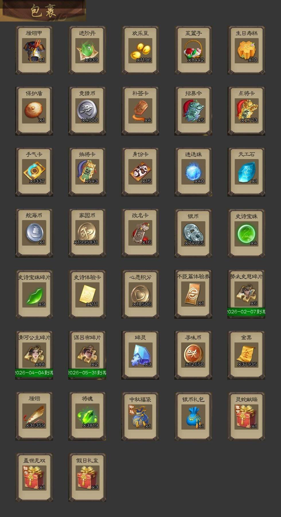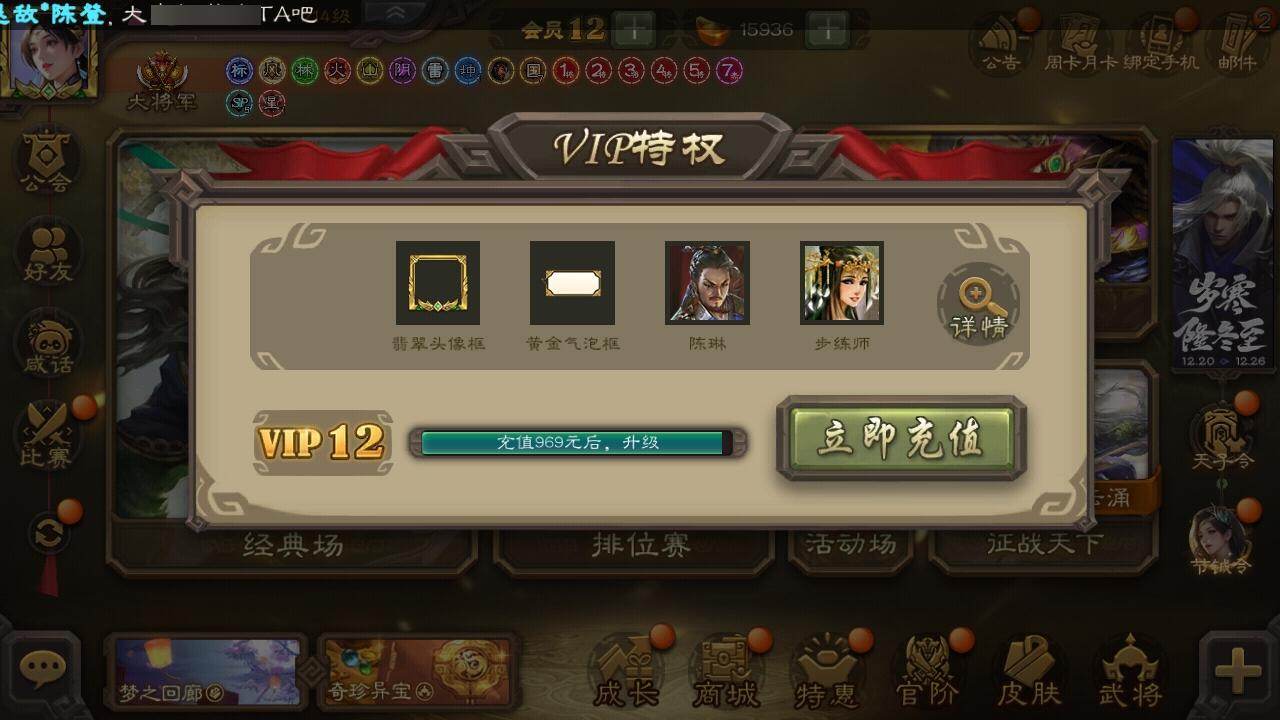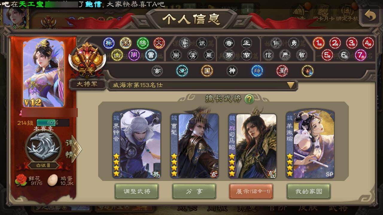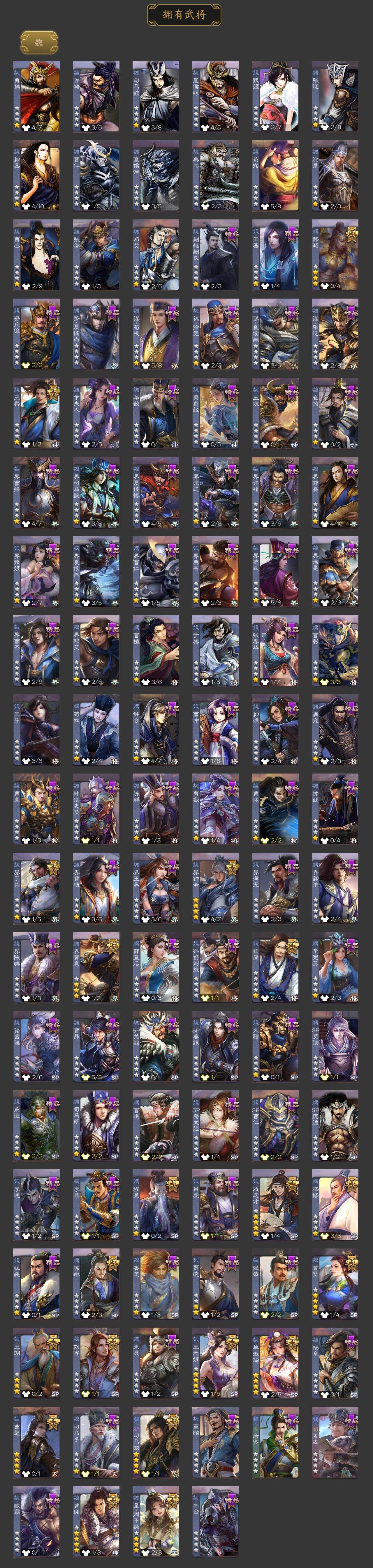 [15178379]【184】官阶:大将军;vip等级:vip12;史诗武将数量:59;动态皮肤数量:48;武将总数:423;史诗宝珠数量:4;将魂数量:3819;神将:11;魏国史诗武将:40;蜀国史诗武将:10;吴国史诗武将:8;群史诗武将:20 神吕布神赵云神陆逊神刘备神甘宁神张辽神太史慈神关羽神吕蒙神周瑜神诸葛亮曹髦星周不疑王粲杨修羊徽瑜王元姬王朗魏-司马昭界钟会界于禁界曹真嵇康郝昭陈琳曹婴曹纯戏志才刘晔关索马云騄谋马超诸葛瞻张星彩王平沙摩柯界黄忠花鬘董允周处吴景骆统留赞界朱然界徐盛界步练师贺齐谋黄月英谋荀彧左慈苏飞司马徽审配麹义庞德公刘焉沮授界左慈界李儒公孙康卑弥呼谋张角张绣李傕阎象许攸友徐庶神郭嘉-虎年清明动态神太史慈-勇撼日月动态神吕蒙-心生万象神甘宁-万人辟易动态神陆逊-绽焰摧枯动态神曹操-天下归心神赵云-战龙在野动态神司马懿-鉴往知来动态星周不疑-才广志宏动态曹植-龙年中秋动态星周不疑-龙年清明动态曹丕-龙年中秋动态sp蔡文姬-兔年冬日动态许褚-兔年端午动态荀彧-驱虎吞狼动态邓艾-神兵天降动态界邓艾-神兵天降动态钟会-谋谟之勋动态界曹植-鼠年端午动态界钟会-谋谟之勋动态辛宪英-鼠年春节动态曹昂-竭战麟伤动态杨修-鼠年端午动态曹婴-锋芒毕露动态曹纯-虎年春节动态王元姬-鼠年冬至动态羊徽瑜-牛年中秋动态司马昭-昭威淮南(动态)清河公主-魅影萦心动态刘备-龙骧麟振动态马超-牛年春节动态马超-西凉雄狮动态黄月英-虎年中秋动态界刘备-龙骧麟振动态界马超-牛年春节动态界马超-西凉雄狮动态夏侯氏-明良千古动态张星彩-猪年中秋动态关索-虎年七夕动态李丰-太仓聚粟动态诸葛果-蛇年限定动态小乔-兔年七夕动态孙权-牛年七夕动态孙尚香-星流霆击动态大乔-猪年七夕动态大乔-鼠年春分动态周瑜-鼠年春节动态孙策-猪年七夕动态界周瑜-鼠年春节动态界大乔-猪年七夕动态界大乔-鼠年春分