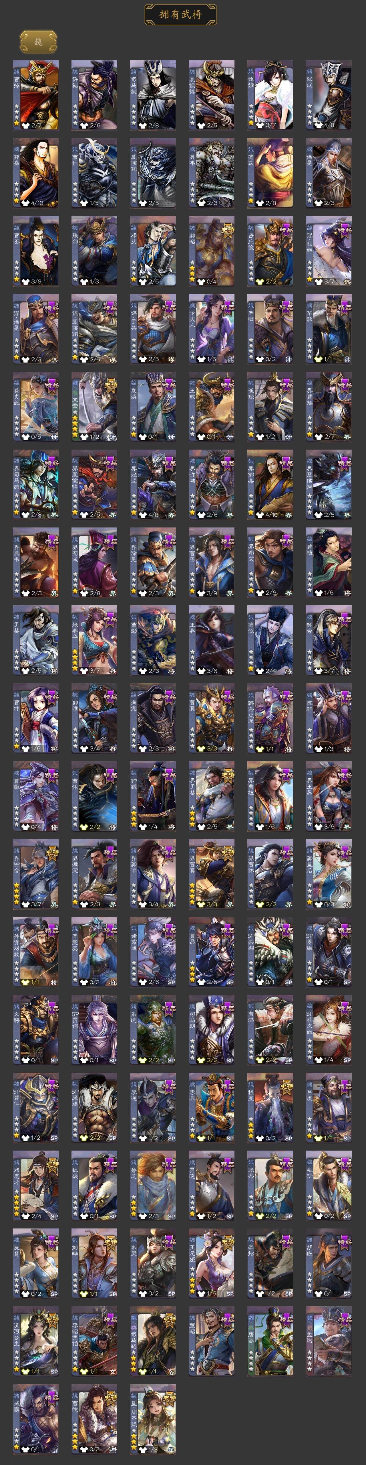 [15178515]【357】官阶:大将军;vip等级:vip9;史诗武将数量:51;动态皮肤数量:41;武将总数:398;史诗宝珠数量:0;将魂数量:12406;神将:7;魏国史诗武将:28;蜀国史诗武将:13;吴国史诗武将:4;群史诗武将:19 神吕布神赵云神陆逊神张辽神太史慈神吕蒙神周瑜星周不疑文鸯王元姬魏-司马昭界钟会界于禁界曹真郝昭曹纯戏志才刘晔清河公主马云騄谋孙尚香谋黄忠谋赵云诸葛瞻赵襄张星彩沙摩柯谯周界黄忠花鬘董允孙皓留赞界徐盛贺齐裴秀皇甫嵩左慈郑玄张让杨彪苏飞麹义南华老仙刘焉界左慈界李儒卑弥呼谋张角张绣李傕许攸友徐庶星董卓神太史慈-勇撼日月动态神周瑜-焰腾麒麟动态星周不疑-才广志宏动态曹丕-气荡山河(动态)甄姬-明珠耀躯(动态)sp蔡文姬-兔年冬日动态邓艾-神兵天降动态界邓艾-神兵天降动态张春华-牛年立冬动态张春华-雪中舞刃动态钟会-谋谟之勋动态曹真-虎年春节动态界钟会-谋谟之勋动态戏志才-举棋若定动态司马昭-昭威淮南(动态)星徐晃-斧引霹雳动态清河公主-魅影萦心动态诸葛亮-龙年限定动态马超-牛年春节动态马超-虎年冬至动态诸葛瞻-绵竹之殇动态界马超-牛年春节动态sp孙尚香-猪年圣诞动态关银屏-虎年端午动态诸葛果-虎年中秋动态胡金定-明良千古动态诸葛果-蛇年限定动态卧龙诸葛-火烧博望动态小乔-兔年七夕动态周处-义除三害动态吕蒙-剑起惊澜动态孙权-永开吴祚动态孙寒华-莲华熠熠动态孙权-猪年端午动态周瑜-鼠年春节动态界周瑜-鼠年春节动态界孙权-猪年端午动态刘赞-灵魂歌王动态文鸯-势若万钧动态貂蝉-舞惑群心动态袁绍-声震寰宇动态麹义-扬刀立威动态杜预-龙吟破竹动态貂蝉-绝世倾城动态界貂蝉-绝世倾城动态刘焉-雄踞益州动态张琪瑛-虎年冬至动态