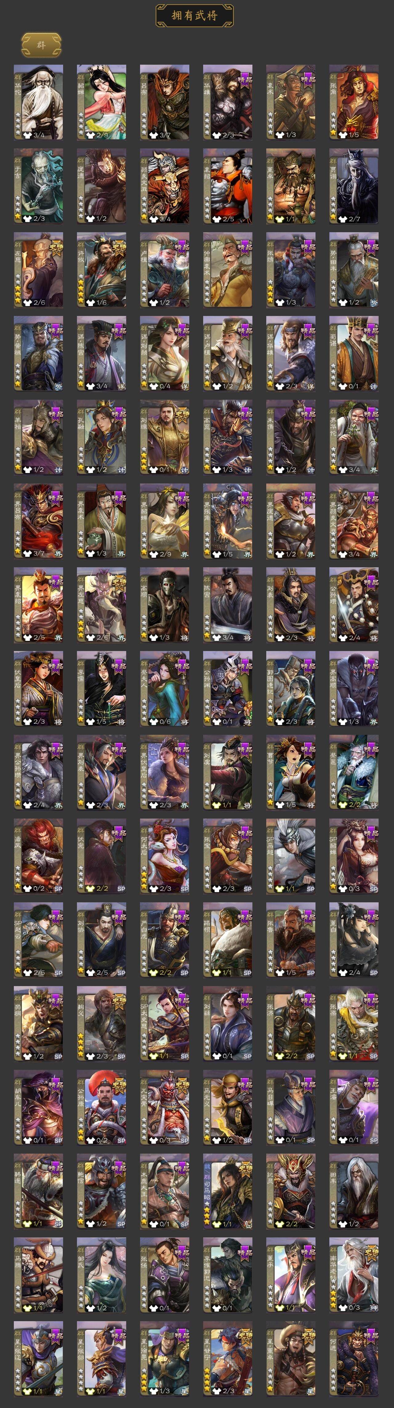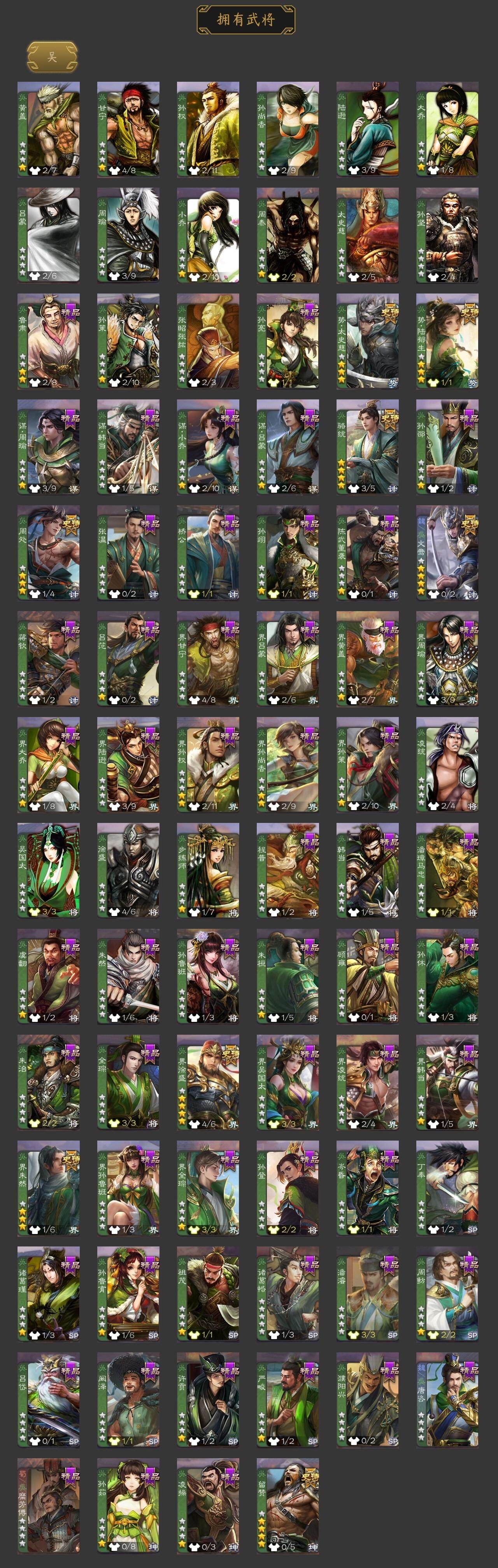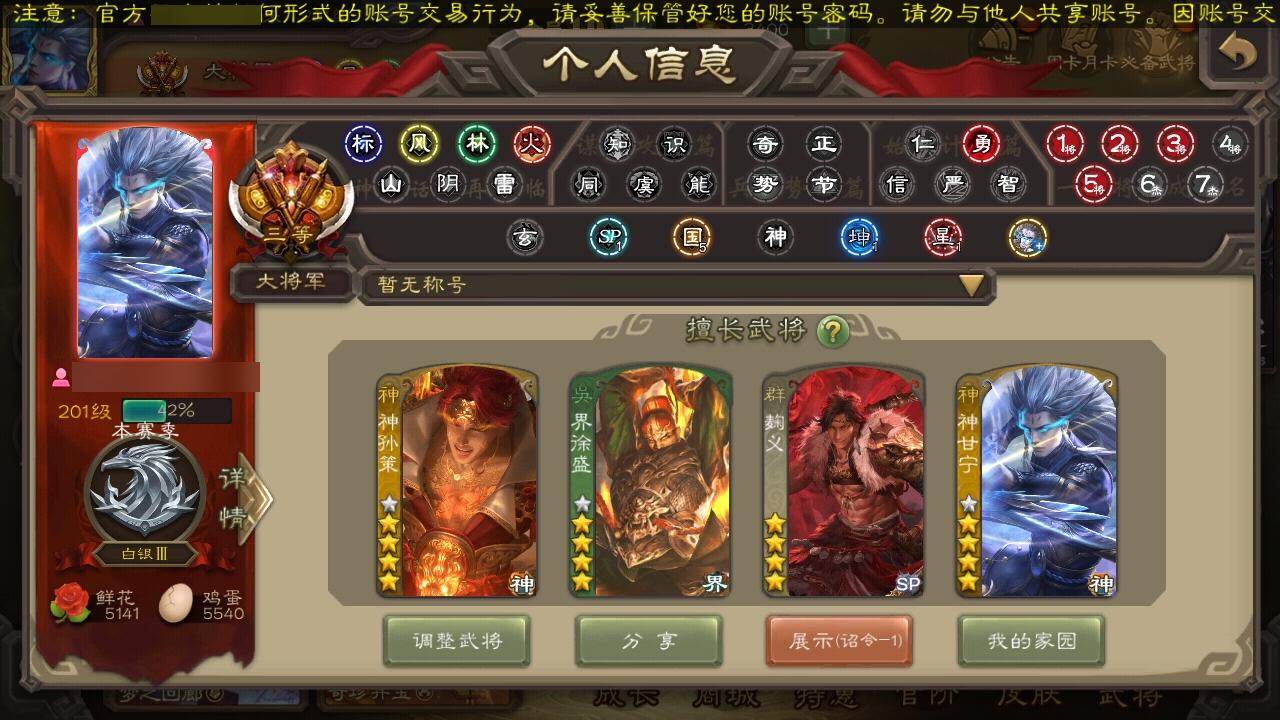 [15178559]【574】官阶:大将军;vip等级:vip10;史诗武将数量:43;动态皮肤数量:33;武将总数:372;史诗宝珠数量:5;将魂数量:7945;神将:8;魏国史诗武将:22;蜀国史诗武将:10;吴国史诗武将:7;群史诗武将:13 神吕布神赵云神甘宁神张辽神孙策神荀彧神吕蒙神周瑜星周不疑文鸯魏-司马昭界钟会界曹真曹婴曹纯戏志才清河公主关索马云騄谋赵云谋马超诸葛瞻周群沙摩柯谯周界黄忠花鬘周处骆统留赞界朱然界徐盛势陆郁生势太史慈谋郭嘉谋黄月英左慈星甘宁麹义南华老仙刘璋界左慈公孙康鲍信张绣许攸星董卓神孙策-霸王再世动态神荀彧-虎年清明动态神吕蒙-心生万象神甘宁-万人辟易动态神赵云-神龙天降郭嘉-以身证道(动态)荀彧-驱虎吞狼动态张春华-牛年立冬动态钟会-谋谟之勋动态界钟会-谋谟之勋动态曹昂-竭战麟伤动态戏志才-举棋若定动态曹纯-虎年春节动态司马昭-昭威淮南(动态)星徐晃-斧引霹雳动态清河公主-魅影萦心动态诸葛亮-龙年限定动态马超-虎年冬至动态马云騄-猪年大雪动态关索-虎年七夕动态鲍三娘-柳娇桃艳动态诸葛果-蛇年限定动态周处-义除三害动态陆逊-龙年七夕动态孙寒华-威灵尽显动态孙权-猪年端午动态界孙权-猪年端午动态徐盛-破军杀将动态孙策-傲凌绝顶动态麹义-扬刀立威动态吕布-傲睨万物动态何太后-蛇蝎为心动态星甘宁-肝胆相照动态sp赵云-威名尽显动态左慈-蛇年限定动态