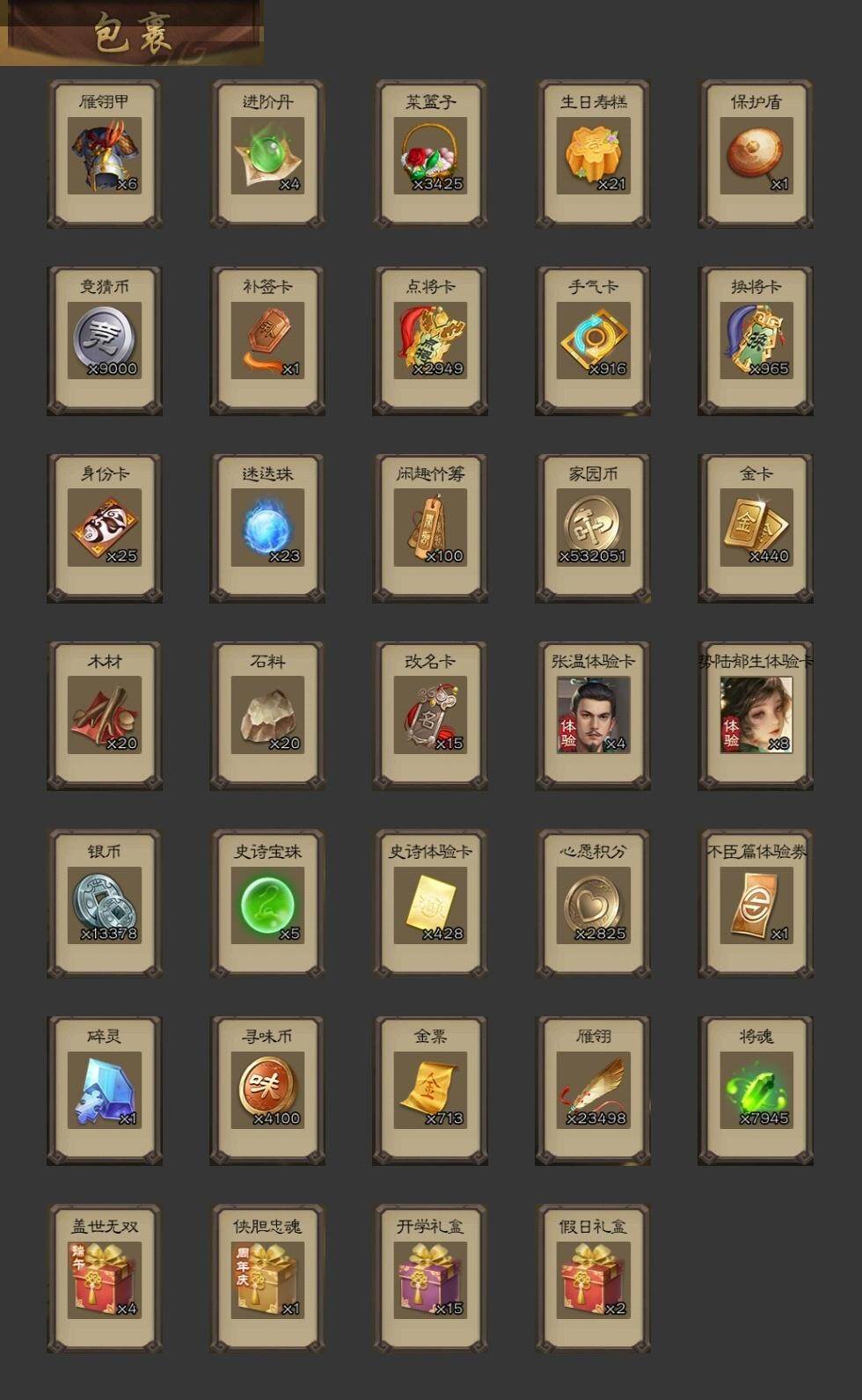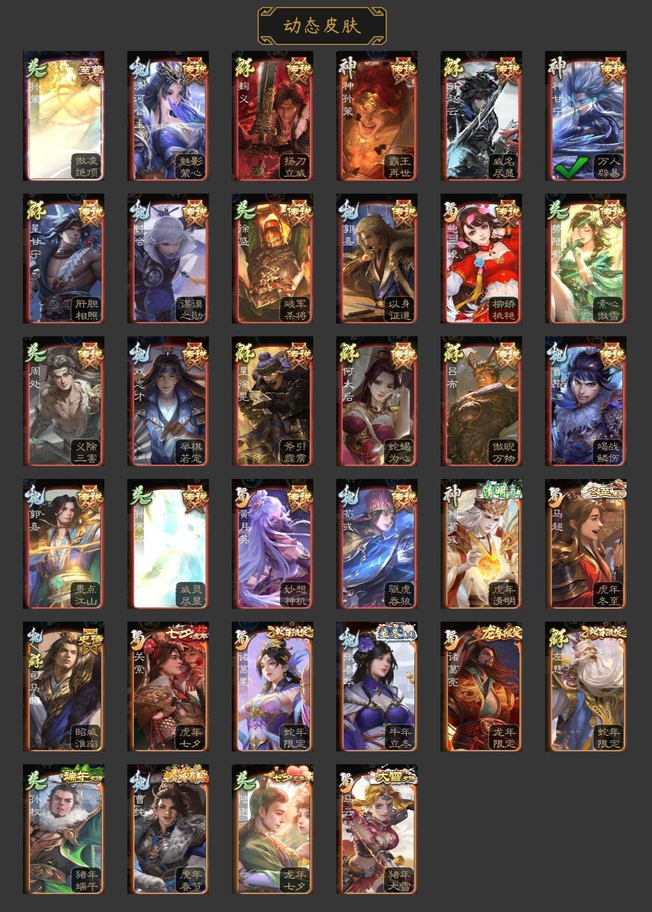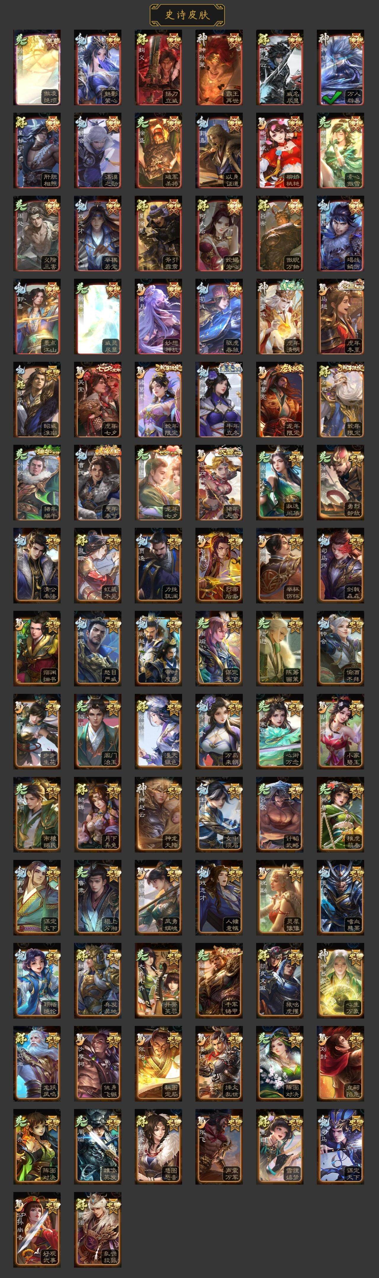 [15178559]【574】官阶:大将军;vip等级:vip10;史诗武将数量:43;动态皮肤数量:33;武将总数:372;史诗宝珠数量:5;将魂数量:7945;神将:8;魏国史诗武将:22;蜀国史诗武将:10;吴国史诗武将:7;群史诗武将:13 神吕布神赵云神甘宁神张辽神孙策神荀彧神吕蒙神周瑜星周不疑文鸯魏-司马昭界钟会界曹真曹婴曹纯戏志才清河公主关索马云騄谋赵云谋马超诸葛瞻周群沙摩柯谯周界黄忠花鬘周处骆统留赞界朱然界徐盛势陆郁生势太史慈谋郭嘉谋黄月英左慈星甘宁麹义南华老仙刘璋界左慈公孙康鲍信张绣许攸星董卓神孙策-霸王再世动态神荀彧-虎年清明动态神吕蒙-心生万象神甘宁-万人辟易动态神赵云-神龙天降郭嘉-以身证道(动态)荀彧-驱虎吞狼动态张春华-牛年立冬动态钟会-谋谟之勋动态界钟会-谋谟之勋动态曹昂-竭战麟伤动态戏志才-举棋若定动态曹纯-虎年春节动态司马昭-昭威淮南(动态)星徐晃-斧引霹雳动态清河公主-魅影萦心动态诸葛亮-龙年限定动态马超-虎年冬至动态马云騄-猪年大雪动态关索-虎年七夕动态鲍三娘-柳娇桃艳动态诸葛果-蛇年限定动态周处-义除三害动态陆逊-龙年七夕动态孙寒华-威灵尽显动态孙权-猪年端午动态界孙权-猪年端午动态徐盛-破军杀将动态孙策-傲凌绝顶动态麹义-扬刀立威动态吕布-傲睨万物动态何太后-蛇蝎为心动态星甘宁-肝胆相照动态sp赵云-威名尽显动态左慈-蛇年限定动态