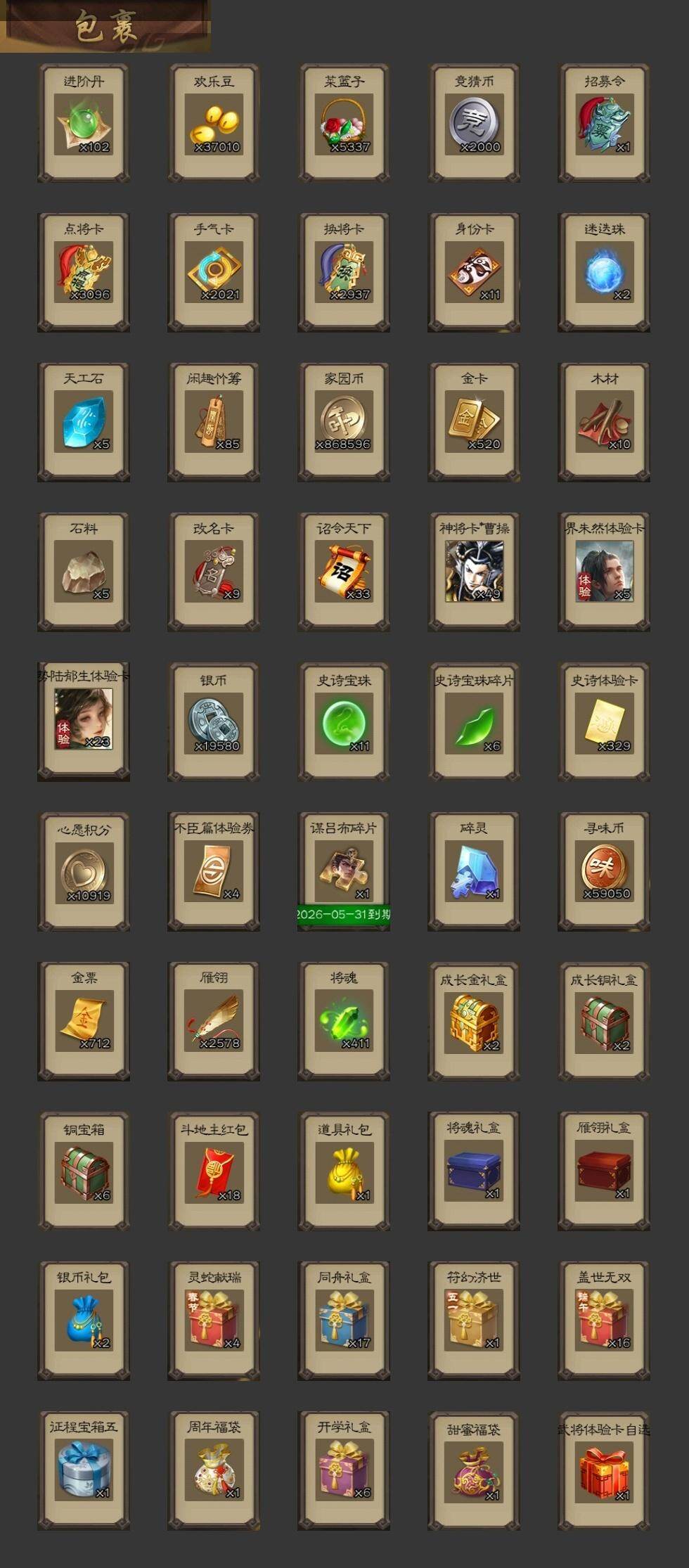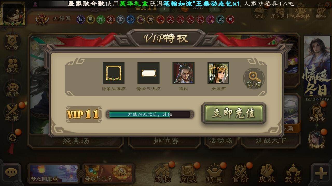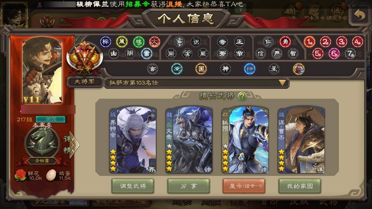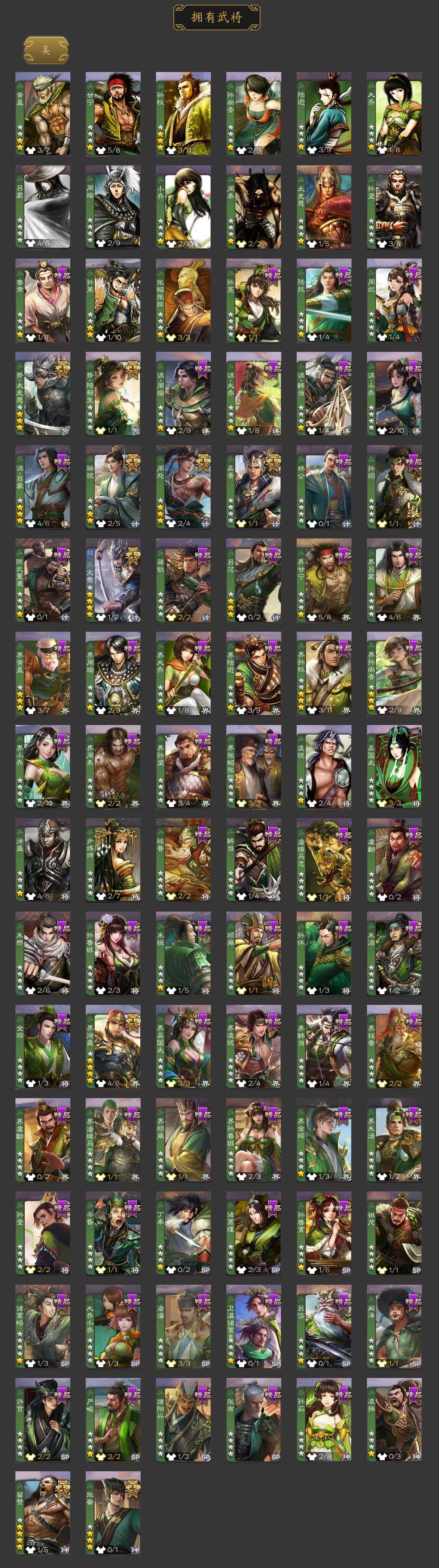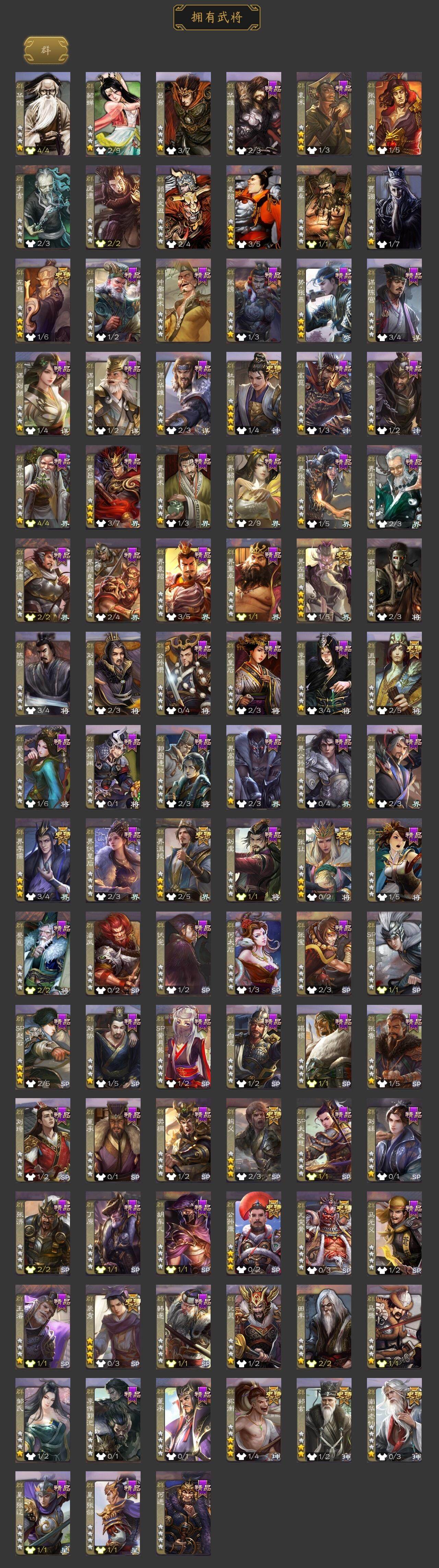 [15178577]【687】官阶:大将军;vip等级:vip11;史诗武将数量:53;动态皮肤数量:42;武将总数:386;史诗宝珠数量:11;将魂数量:411;神将:3;魏国史诗武将:26;蜀国史诗武将:11;吴国史诗武将:8;群史诗武将:15 神赵云神张辽神周瑜sp司马昭曹髦星周不疑王粲杨修文鸯王元姬马钧界钟会界于禁嵇康郝昭曹婴曹纯戏志才刘晔谋曹丕关索马云騄谋赵云谋马超诸葛瞻沙摩柯谯周傅佥界黄忠花鬘董允张奋周处吴景骆统留赞界徐盛势陆郁生势太史慈谋黄月英裴秀界沮授左慈郑玄张让麹义南华老仙祢衡沮授界左慈界李儒公孙康杜预张绣神荀彧-虎年清明动态神关羽-血海罗刹动态神曹操-天下归心郭嘉-以身证道(动态)曹植-龙年中秋动态钟繇-安民护祚(动态)曹丕-气荡山河(动态)星周不疑-龙年清明动态甄姬-明珠耀躯(动态)sp蔡文姬-兔年冬日动态荀彧-驱虎吞狼动态钟会-谋谟之勋动态界钟会-谋谟之勋动态戏志才-举棋若定动态曹纯-虎年春节动态王元姬-鼠年冬至动态刘备-龙御天下动态诸葛亮-龙年限定动态费祎-安民护祚(动态)关羽-明良千古动态马超-牛年春节动态赵云-牛年春节动态诸葛瞻-绵竹之殇动态界赵云-牛年春节动态界马超-牛年春节动态关索-虎年七夕动态孙茹-龙年七夕动态周处-义除三害动态吕蒙-剑起惊澜动态陆逊-龙年七夕动态孙权-永开吴祚动态孙权-牛年七夕动态孙尚香-兔年春节动态周妃-笼中箜响动态界孙权-牛年七夕动态徐盛-破军杀将动态孙鲁育-牛年端午动态刘赞-灵魂歌王动态文鸯-势若万钧动态袁绍-声震寰宇动态李儒-业火毒计动态麹义-扬刀立威动态杜预-龙吟破竹动态吕布-傲睨万物动态sp赵云-威名尽显动态皇甫嵩-奋钺振旅动态
