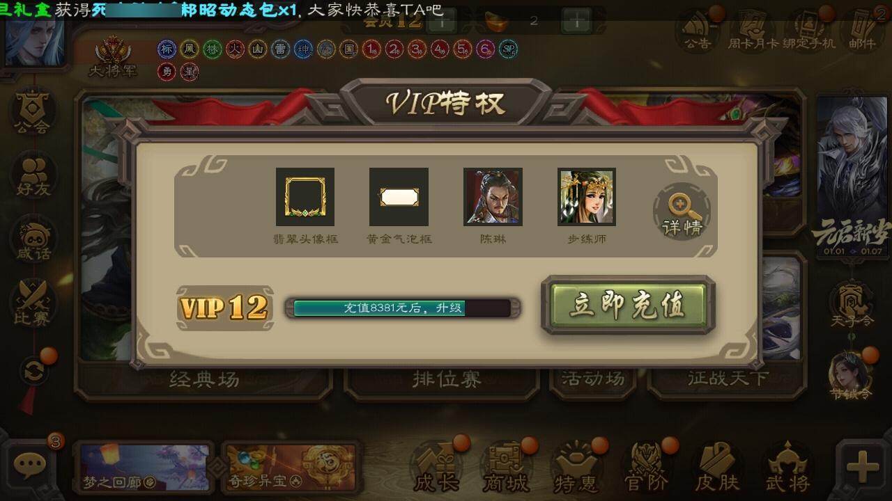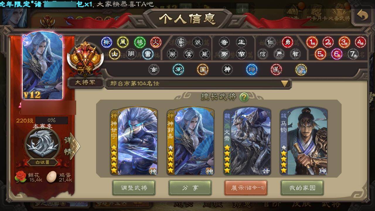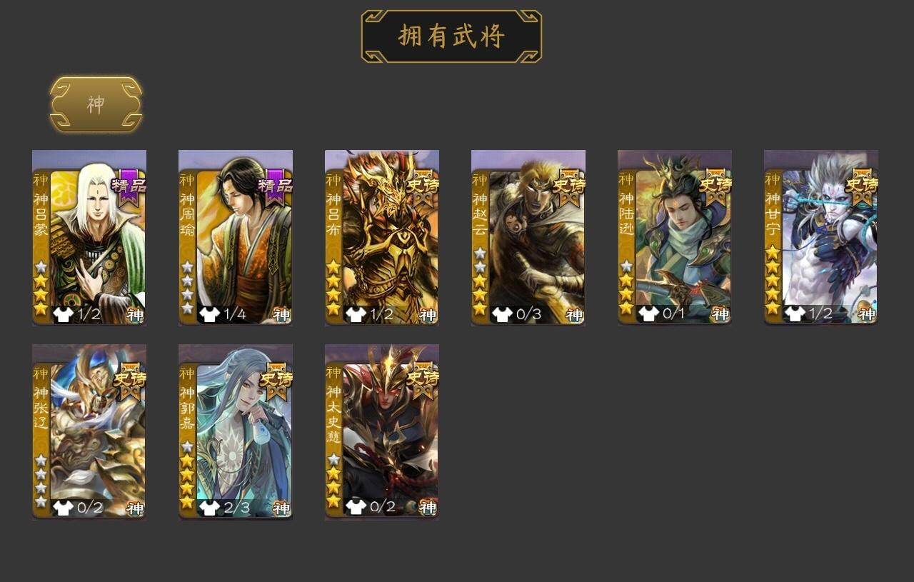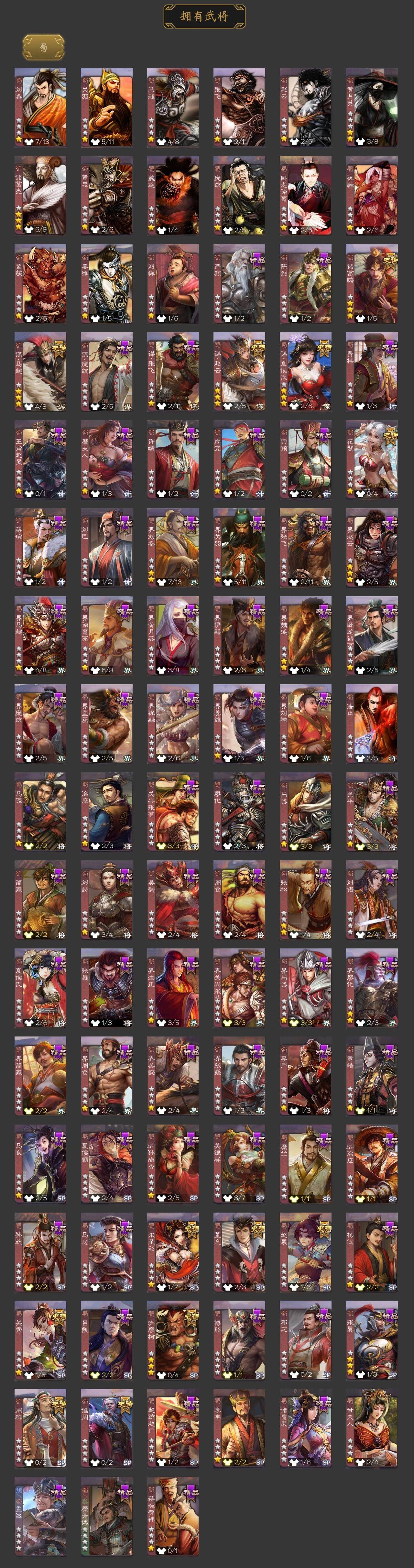 [15178588]【720】官阶:大将军;vip等级:vip12;史诗武将数量:58;动态皮肤数量:49;武将总数:414;史诗宝珠数量:1;将魂数量:9666;神将:7;魏国史诗武将:27;蜀国史诗武将:12;吴国史诗武将:11;群史诗武将:15 神吕布神赵云神陆逊神甘宁神张辽神郭嘉神太史慈星周不疑王粲杨修王元姬马钧界钟会界于禁界曹真嵇康郝昭陈琳曹纯戏志才程昱关索谋夏侯氏谋赵云谋马超诸葛瞻周群赵襄张星彩沙摩柯谯周花鬘董允周处吴景孙寒华骆统留赞界朱然界徐盛界步练师贺齐文鸯裴秀左慈张让星黄忠陶谦苏飞麹义南华老仙刘璋沮授界左慈界李儒公孙康许攸兀突骨神吕蒙神周瑜sp关羽sp曹仁sp蔡文姬乐进曹昂诸葛诞朱灵文聘sp姜维张春华钟会曹冲郭淮满宠界王异界曹操界司马懿界夏侯惇界张辽界许褚界郭嘉李典曹真韩浩史涣陈群曹叡曹休钟繇司马朗王基李通郭皇后孙资刘放辛宪英界甄姬吕虔鲁芝蒯越蒯良界典韦界荀彧界徐晃杜畿界曹丕毌丘俭界邓艾张恭贾逵界曹植界满宠界郭淮卞夫人辛毗华歆蔡贞姬袁涣王双崔琰毛玠阮慧谋徐晃谋于禁界曹休牵招胡班司马孚谋夏侯渊牛金界夏侯渊臧霸唐咨董昭sp孙尚香关银屏夏侯霸马良关兴张苞廖化界马岱关平简雍刘封界法正界关兴张苞界刘备界关羽界张飞界赵云界马超sp徐庶吴懿周仓张松刘谌夏侯氏糜竺马忠孙乾李严黄皓界黄月英界诸葛亮赵统赵广严颜界伊籍界卧龙诸葛界庞统界孟获界祝融陈到界姜维界刘禅吕凯张翼杨仪界廖化邓芝傅肜界简雍费祎糜夫人王甫赵累界周仓许靖向宠宗预蒋琬刘巴界吴懿谋庞统界张嶷谋张飞诸葛果界魏延蒋琬费祎糜芳傅士仁甘夫人鲁肃孙茹凌操大乔小乔诸葛恪诸葛瑾孙鲁育程普韩当潘璋马忠虞翻朱然界周泰界甘宁界吕蒙界黄盖界周瑜界大乔界陆逊孙鲁班朱桓顾雍孙休朱治全琮孙登岑昏界孙权界孙尚香潘濬孙亮严畯界孙坚吕岱周鲂周妃陆抗界张昭张纮许贡卫温诸葛直界吴国太界凌统界韩当