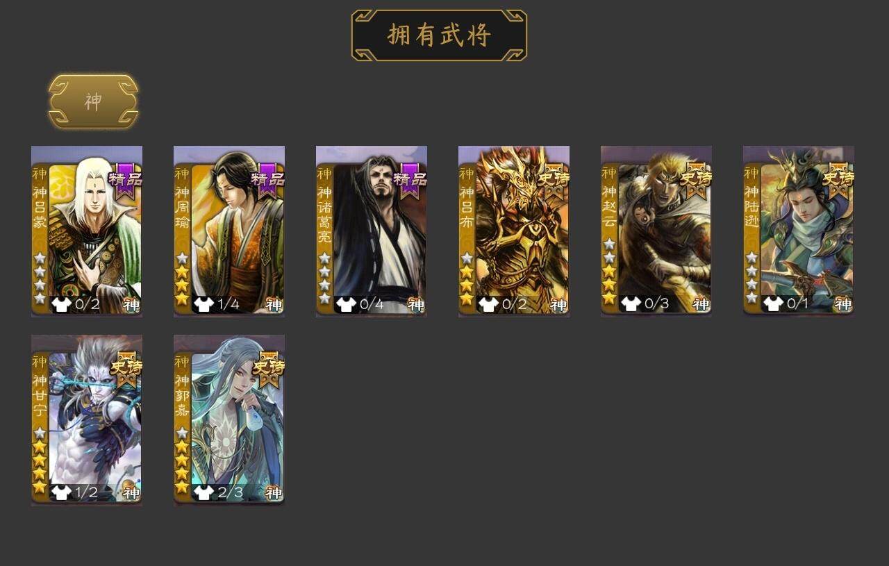 [15178787]【685】官阶:大将军;vip等级:vip9;史诗武将数量:40;动态皮肤数量:40;武将总数:357;史诗宝珠数量:26;将魂数量:4513;神将:8;魏国史诗武将:25;蜀国史诗武将:7;吴国史诗武将:3;群史诗武将:12 神吕布神赵云神陆逊神甘宁神郭嘉神吕蒙神周瑜神诸葛亮曹髦星周不疑张昌蒲王粲杨修文鸯魏-司马昭界钟会界曹真郝昭曹纯戏志才清河公主关索谋赵云谋马超诸葛瞻沙摩柯谯周花鬘骆统留赞界徐盛谋郭嘉十常侍裴秀麹义南华老仙沮授界左慈界李儒卑弥呼谋张角阎象星董卓神郭嘉-虎年清明动态神郭嘉-倚星折月动态神甘宁-万人辟易动态神司马懿-徐图大略郭嘉-以身证道(动态)星周不疑-才广志宏动态钟会-潜蛟觊天动态曹丕-气荡山河(动态)甄姬-明珠耀躯(动态)sp蔡文姬-兔年冬日动态荀彧-驱虎吞狼动态邓艾-神兵天降动态王粲-笔翰如流动态界邓艾-神兵天降动态朱灵-以战破氐动态司马昭-昭威淮南(动态)星徐晃-斧引霹雳动态清河公主-魅影萦心动态刘备-龙御天下动态诸葛亮-龙年限定动态马超-牛年春节动态诸葛瞻-绵竹之殇动态界马超-牛年春节动态关索-虎年七夕动态李丰-太仓聚粟动态孙茹-龙年七夕动态周处-义除三害动态孙权-永开吴祚动态孙策-虎踞江东动态孙寒华-威灵尽显动态徐盛-破军杀将动态刘赞-灵魂歌王动态文鸯-势若万钧动态灵雎-霜刃绚练动态貂蝉-舞惑群心动态袁绍-声震寰宇动态左慈-道法显威(动态)麹义-扬刀立威动态李儒-鸠杀少帝动态界李儒-鸠杀少帝动态张鲁-虎年冬至动态皇甫嵩-奋钺振旅动态左慈-蛇年限定动态