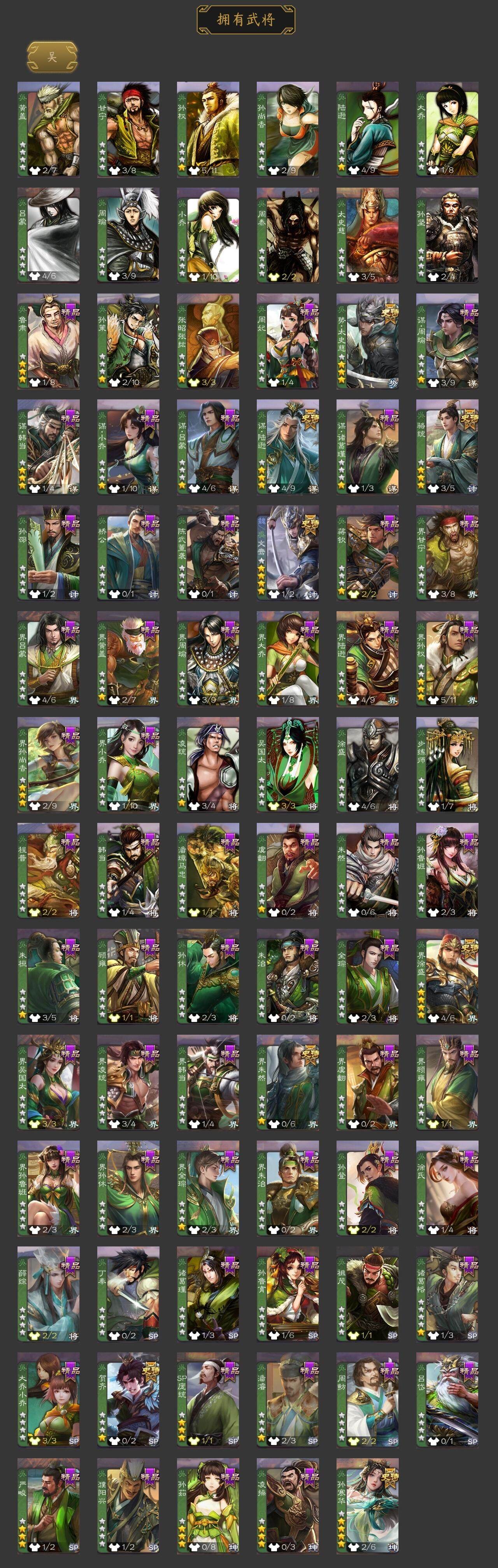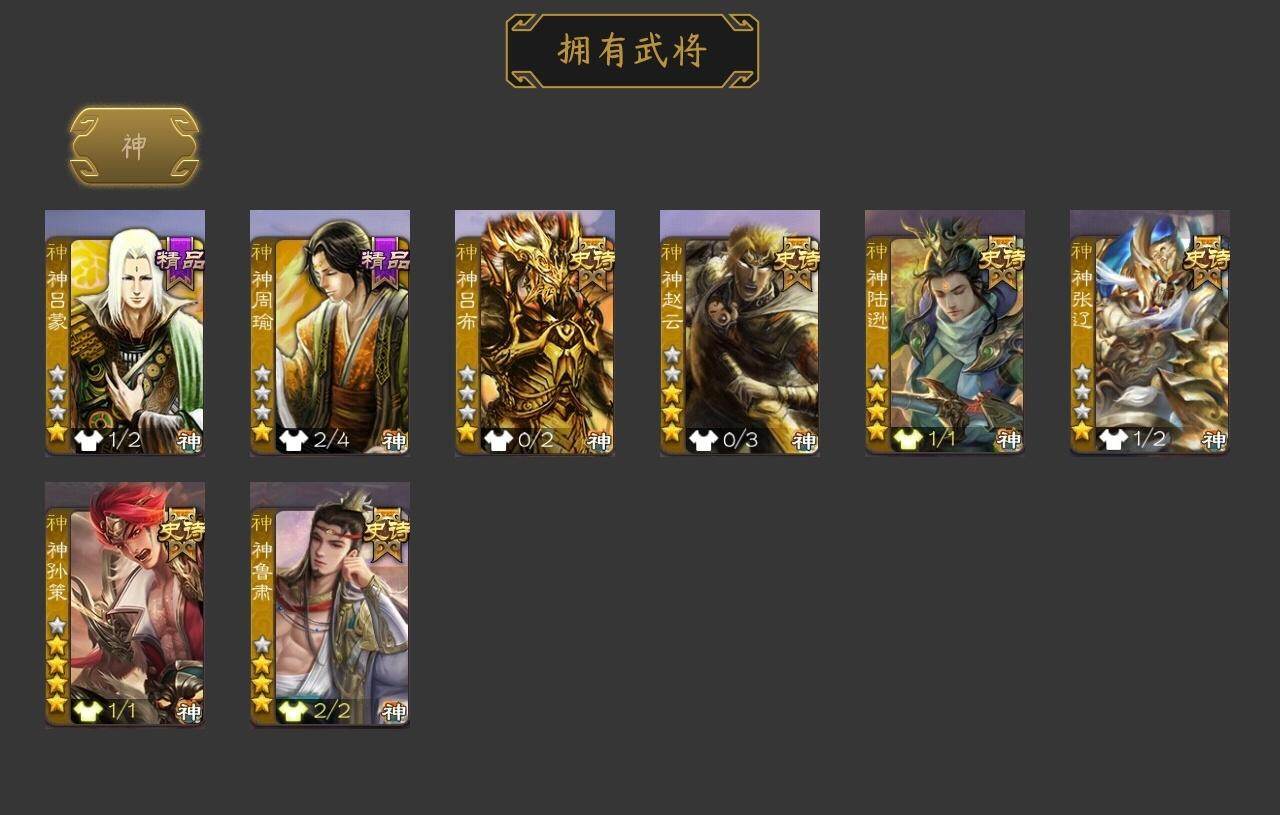 [15178881]【606】官阶:大将军;vip等级:vip10;史诗武将数量:49;动态皮肤数量:44;武将总数:384;史诗宝珠数量:0;将魂数量:399;神将:8;魏国史诗武将:21;蜀国史诗武将:11;吴国史诗武将:7;群史诗武将:18 神吕布神赵云神陆逊神张辽神孙策神吕蒙神周瑜神鲁肃星周不疑杨修文鸯魏-司马昭界钟会界于禁曹婴曹纯戏志才关索谋赵云谋马超诸葛瞻赵襄张星彩沙摩柯谯周界黄忠花鬘董允谋陆逊孙寒华骆统界朱然界徐盛贺齐势太史慈谋郭嘉谋黄月英张让张琪瑛星甘宁麹义庞德公南华老仙刘焉沮授界左慈界李儒杜预鲍信谋张角李傕许攸星董卓神鲁肃-九州为局神张辽-威震江东神太史慈-勇撼日月动态神孙策-霸王再世动态神刘备-龙兴海内神周瑜-波澜不惊神吕蒙-心生万象神鲁肃-青牛化圣(动态)神陆逊-绽焰摧枯动态星周不疑-才广志宏动态曹植-龙年中秋动态曹丕-气荡山河(动态)sp蔡文姬-兔年冬日动态司马懿-牛年立冬动态界司马懿-牛年立冬动态曹昂-竭战麟伤动态朱灵-以战破氐动态司马昭-昭威淮南(动态)星徐晃-斧引霹雳动态清河公主-魅影萦心动态刘备-龙御天下动态马超-虎年冬至动态黄月英-木牛流马动态诸葛瞻-绵竹之殇动态界黄月英-木牛流马动态李丰-太仓聚粟动态诸葛果-蛇年限定动态卧龙诸葛-火烧博望动态太史慈-涤荡江东动态周处-义除三害动态陆逊-龙年七夕动态孙权-永开吴祚动态孙策-虎踞江东动态周瑜-免年清明动态孙权-猪年端午动态孙权-牛年七夕动态界孙权-猪年端午动态界孙权-牛年七夕动态孙寒华-蛇年限定动态文鸯-势若万钧动态许攸-火烧乌巢动态袁绍-声震寰宇动态左慈-道法显威(动态)麹义-扬刀立威动态杜预-龙吟破竹动态袁绍-一往无前动态界袁绍-一往无前动态李儒-鸠杀少帝动态界李儒-鸠杀少帝动态刘焉-雄踞益州动态庞德公-超脱于世动态左慈-蛇年限定动态