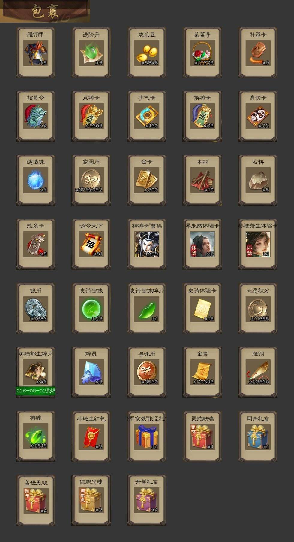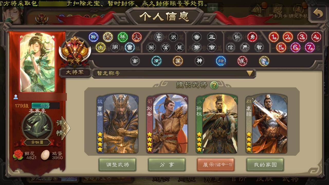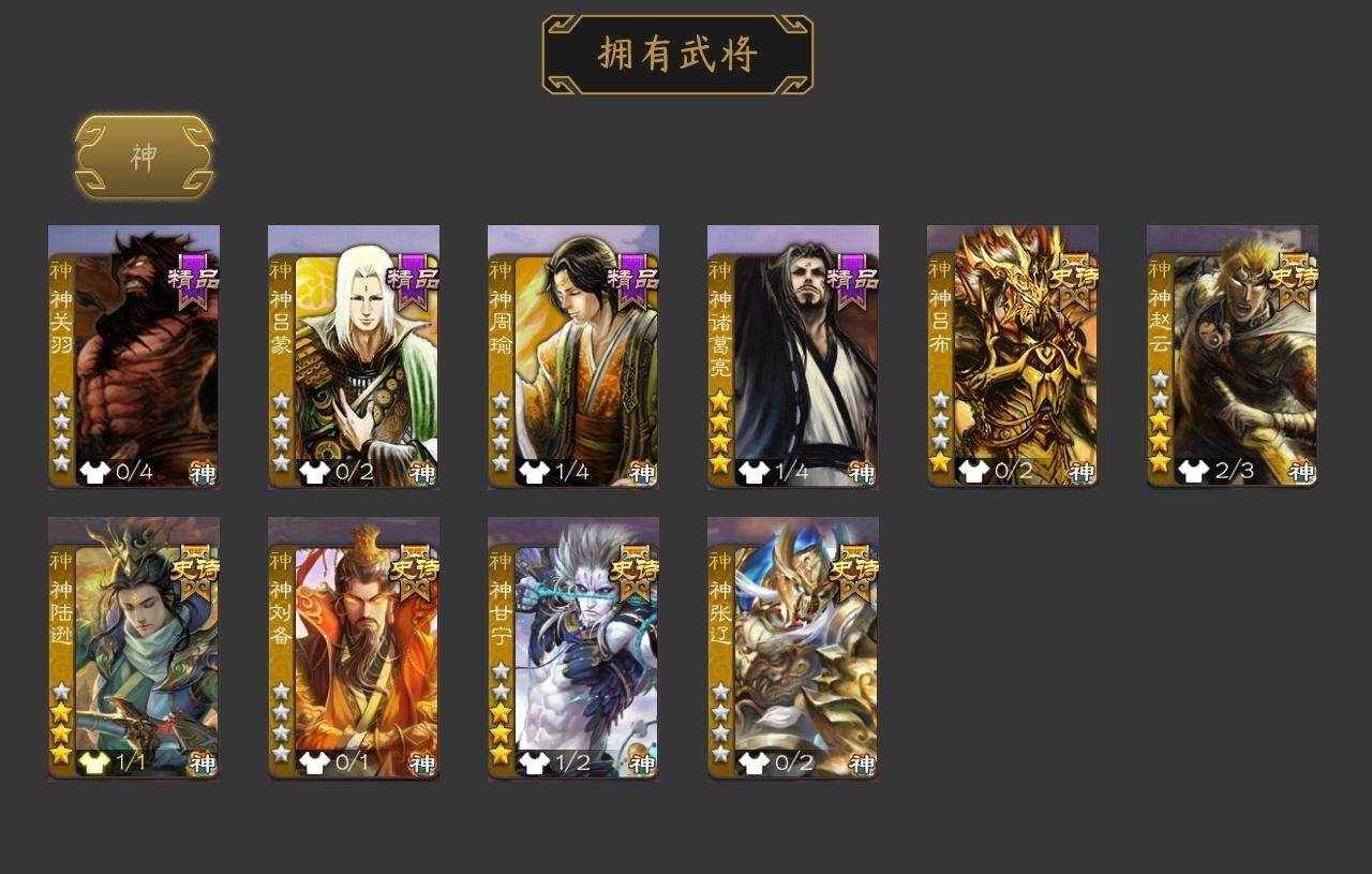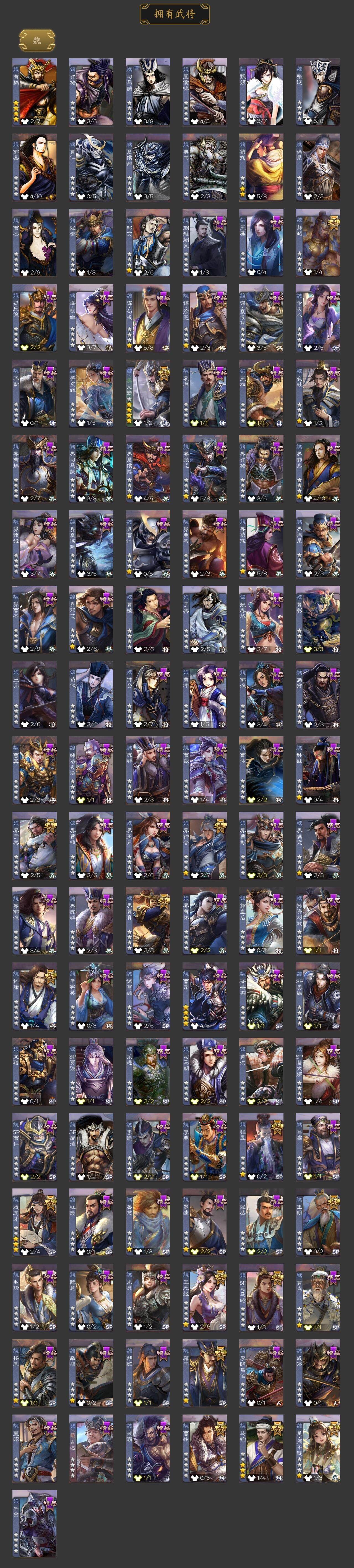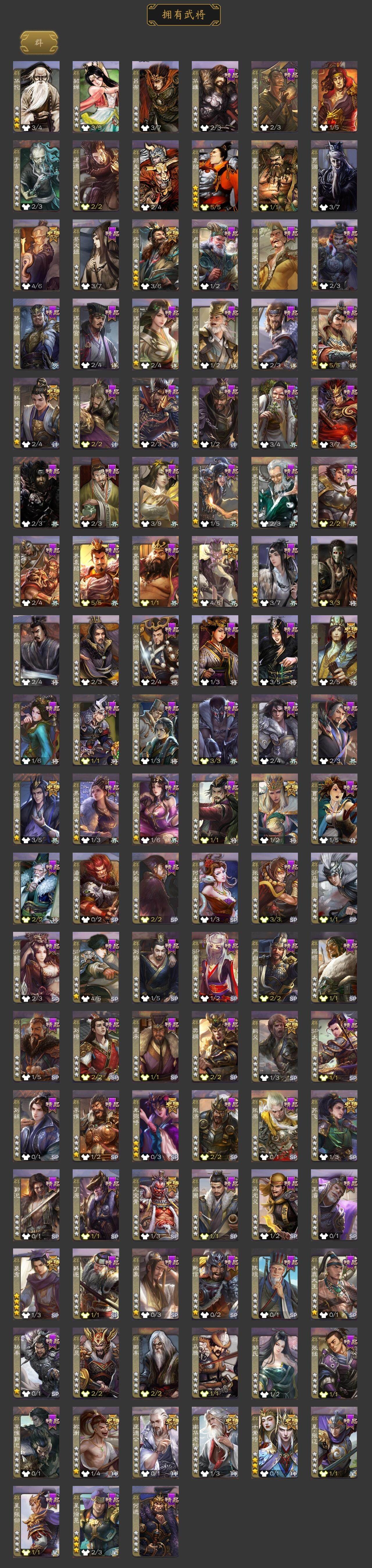 [15178993]【251】官阶:大将军;vip等级:vip11;史诗武将数量:54;动态皮肤数量:57;武将总数:438;史诗宝珠数量:26;将魂数量:2518;神将:10;魏国史诗武将:25;蜀国史诗武将:9;吴国史诗武将:8;群史诗武将:22 神吕布神赵云神陆逊神刘备神甘宁神张辽神关羽神吕蒙神周瑜神诸葛亮sp司马昭星周不疑文鸯王元姬王朗马钧界钟会界于禁界曹真嵇康郝昭曹纯戏志才蒋干谋诸葛亮马云騄谋赵云谋马超诸葛瞻赵襄沙摩柯界黄忠花鬘周处吴景孙寒华骆统留赞界徐盛界步练师贺齐谋黄月英谋荀彧十常侍裴秀左慈张让苏飞麹义庞德公南华老仙祢衡沮授界左慈界李儒杜预卑弥呼鲍信张绣李傕阎象许攸陈珪神郭嘉-倚星折月动态神荀彧-虎年清明动态神郭嘉-半醉山河神甘宁-万人辟易动态神陆逊-绽焰摧枯动态神诸葛亮-孟章诛邪动态神曹操-天下归心神赵云-战龙在野动态神赵云-神龙天降星周不疑-才广志宏动态张昌蒲-龙年端午(动态)钟会-龙年端午(动态)曹丕-气荡山河(动态)甄姬-明珠耀躯(动态)sp蔡文姬-兔年冬日动态许褚-兔年端午动态张春华-雪中舞刃动态界曹植-鼠年端午动态戏志才-举棋若定动态曹婴-锋芒毕露动态朱灵-以战破氐动态羊徽瑜-牛年中秋动态孟获-祸崇南疆动态刘备-龙御天下动态诸葛亮-龙年限定动态卧龙诸葛-龙跃凤鸣动态诸葛亮-国之柱石(动态)马超-虎年冬至动态马超-明良千古动态张飞-明良千古动态诸葛瞻-绵竹之殇动态鲍三娘-柳娇桃艳动态甘夫人-为君担忧动态孙策-兔年中秋动态周处-义除三害动态吕蒙-剑起惊澜动态黄盖-兔年端午动态孙权-永开吴祚动态周瑜-兔年七夕动态孙策-虎踞江东动态步骘-鸿笔丽藻动态孙寒华-莲华熠熠动态孙权-猪年端午动态大乔-猪年七夕动态孙策-猪年七夕动态周妃-笼中箜响动态界大乔-猪年七夕动态界孙权-猪年端午动态界孙策-猪年七夕动态徐盛-破军杀将动态刘赞-灵魂歌王动态文鸯-势若万钧动态高顺-每战必克