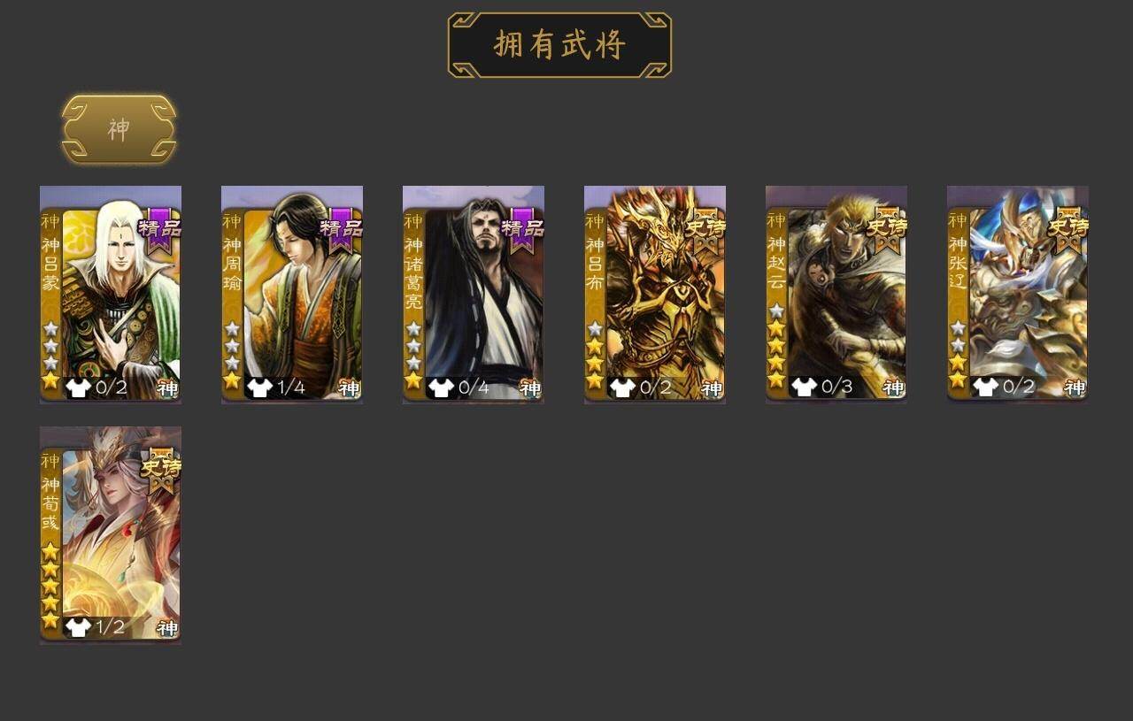 [15179021]【332】官阶:大将军;vip等级:vip10;史诗武将数量:53;动态皮肤数量:36;武将总数:404;史诗宝珠数量:17;将魂数量:1441;神将:7;魏国史诗武将:27;蜀国史诗武将:15;吴国史诗武将:6;群史诗武将:14 神吕布神赵云神张辽神荀彧神吕蒙神周瑜神诸葛亮星周不疑王粲羊徽瑜文鸯王元姬司马师马钧界钟会界于禁界曹真郝昭曹婴曹纯戏志才关索谋诸葛亮马云騄谋孙尚香谋黄忠谋赵云谋马超赵襄张星彩沙摩柯谯周界黄忠花鬘董允周处吴景骆统留赞界朱然界徐盛十常侍界沮授左慈张让王允苏飞麹义南华老仙沮授界左慈界李儒杜预张绣许攸神荀彧-虎年清明动态sp蔡文姬-兔年冬日动态司马懿-牛年立冬动态荀彧-驱虎吞狼动态曹丕-牛年清明动态王粲-笔翰如流动态界司马懿-牛年立冬动态界曹丕-牛年清明动态张春华-雪中舞刃动态钟会-谋谟之勋动态界钟会-谋谟之勋动态戏志才-举棋若定动态朱灵-以战破氐动态羊徽瑜-牛年中秋动态司马师-牛年中秋动态花鬘-依心缱绻动态卧龙诸葛-龙跃凤鸣动态费祎-安民护祚(动态)关羽-明良千古动态马超-虎年冬至动态赵云-牛年春节动态黄月英-鼠年春节动态黄月英-虎年中秋动态界赵云-牛年春节动态界黄月英-鼠年春节动态sp孙尚香-明良千古动态张星彩-虎年端午动态关索-虎年七夕动态鲍三娘-柳娇桃艳动态李丰-太仓聚粟动态太史慈-涤荡江东动态周处-义除三害动态吕蒙-剑起惊澜动态孙权-吴王六剑动态孙权-冠绝天下动态孙尚香-星流霆击动态大乔-猪年七夕动态界大乔-猪年七夕动态界孙权-吴王六剑动态界孙尚香-星流霆击动态徐盛-破军杀将动态文鸯-势若万钧动态杜预-龙吟破竹动态貂蝉-鼠年七夕动态吕布-鼠年七夕动态左慈-役使鬼神动态界吕布-鼠年七夕动态界貂蝉-鼠年七夕动态刘协-龙困于渊动态张鲁-虎年冬至动态董白-猪年春节动态苏飞-肝胆相照动态张琪瑛-虎年冬至动态