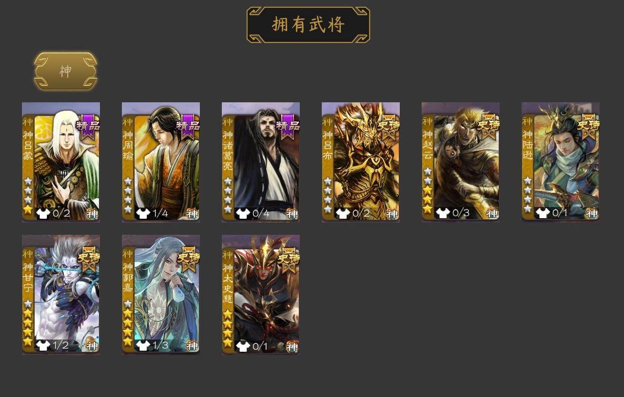 [15179042]【608】官阶:大将军;vip等级:vip10;史诗武将数量:49;动态皮肤数量:36;武将总数:395;史诗宝珠数量:8;将魂数量:3209;神将:9;魏国史诗武将:29;蜀国史诗武将:12;吴国史诗武将:5;群史诗武将:17 神吕布神赵云神陆逊神甘宁神郭嘉神太史慈神吕蒙神周瑜神诸葛亮星周不疑杨修王元姬魏-司马昭界钟会界曹真嵇康曹婴曹纯戏志才蒋干谋诸葛亮马云騄谋夏侯氏谋赵云谋马超周群赵襄张星彩沙摩柯谯周界黄忠花鬘孙寒华留赞界朱然界徐盛势太史慈十常侍界沮授左慈张让星黄忠麹义南华老仙界左慈界李儒公孙康鲍信谋张角张绣李傕阎象许攸星董卓神郭嘉-虎年清明动态神张辽-散敌擒孙神甘宁-万人辟易动态王元姬-婆娑起舞(动态)郭嘉-以身证道(动态)星周不疑-才广志宏动态曹丕-气荡山河(动态)甄姬-明珠耀躯(动态)曹丕-龙年中秋动态甄姬-牛年清明动态界甄姬-牛年清明动态界曹植-鼠年端午动态曹昂-竭战麟伤动态戏志才-举棋若定动态曹婴-兔年春节动态朱灵-以战破氐动态曹纯-长坂败备动态司马昭-昭威淮南(动态)诸葛亮-国之柱石(动态)费祎-安民护祚(动态)关羽-明良千古动态张飞-明良千古动态黄月英-虎年中秋动态卧龙诸葛-火烧博望动态周处-义除三害动态吕蒙-剑起惊澜动态孙寒华-威灵尽显动态孙权-牛年七夕动态界孙权-牛年七夕动态徐盛-破军杀将动态孙鲁育-牛年端午动态刘赞-灵魂歌王动态许攸-火烧乌巢动态貂蝉-舞惑群心动态麹义-扬刀立威动态sp赵云-威名尽显动态左慈-蛇年限定动态