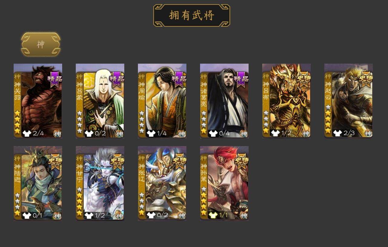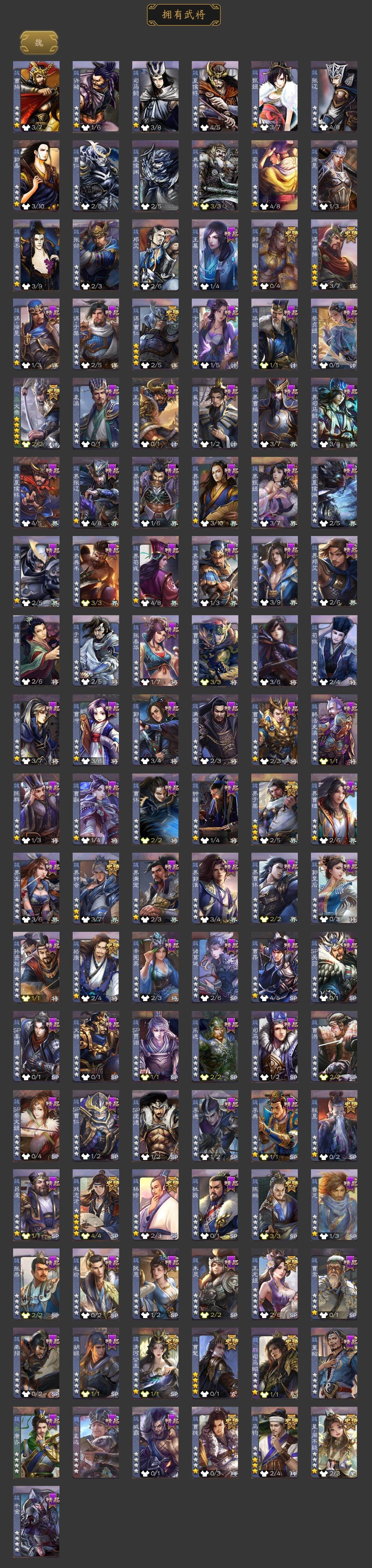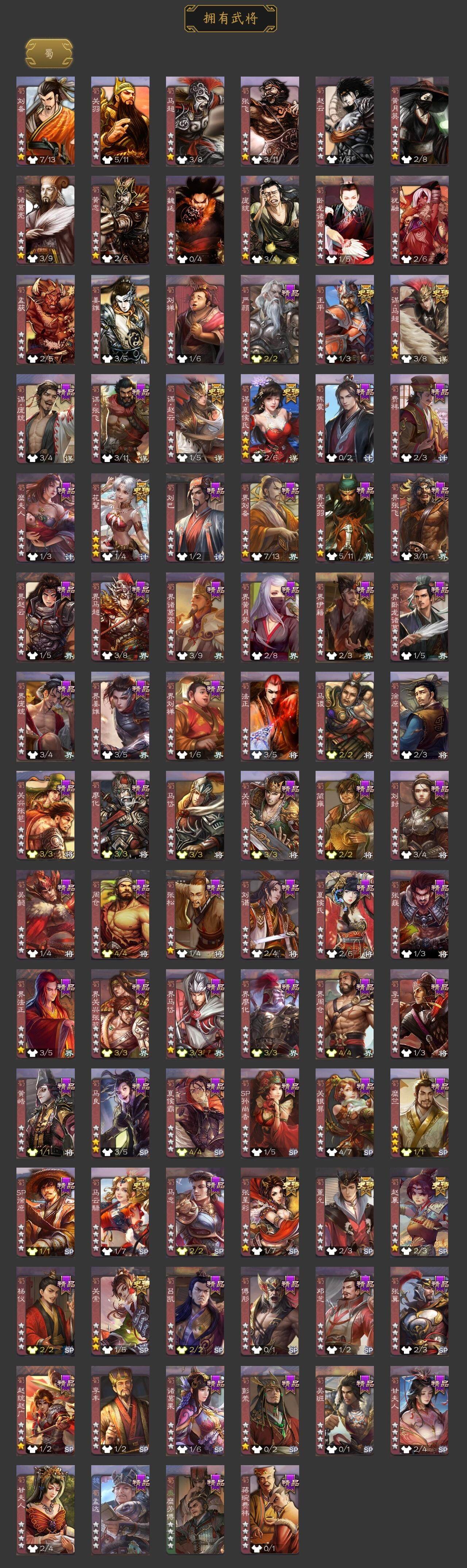 [15179069]【640】官阶:大将军;vip等级:vip12;史诗武将数量:60;动态皮肤数量:40;武将总数:396;史诗宝珠数量:42;将魂数量:9507;神将:10;魏国史诗武将:31;蜀国史诗武将:10;吴国史诗武将:8;群史诗武将:19 神吕布神赵云神陆逊神甘宁神张辽神孙策神关羽神吕蒙神周瑜神诸葛亮曹髦星周不疑谋曹仁谋曹操杨修文鸯王元姬魏-司马昭马钧界钟会界于禁嵇康郝昭陈琳曹纯戏志才清河公主关索马云騄谋夏侯氏谋赵云谋马超赵襄张星彩王平花鬘董允谋黄盖周处孙皓骆统留赞界朱然界徐盛贺齐界沮授左慈张仲景张让杨彪星甘宁苏飞司马徽麹义南华老仙刘璋沮授界李儒杜预谋张角张绣李傕许攸星董卓神关羽-链狱鬼神神郭嘉-倚星折月动态神孙策-霸王再世动态神甘宁-万人辟易动态神关羽-魂追弗届神吕布-监兵噬魅动态神赵云-战龙在野动态神赵云-神龙天降星周不疑-才广志宏动态曹植-龙年中秋动态曹丕-气荡山河(动态)星周不疑-龙年清明动态甄姬-明珠耀躯(动态)郭嘉-十胜十败动态荀彧-驱虎吞狼动态邓艾-神兵天降动态界郭嘉-十胜十败动态界邓艾-神兵天降动态钟会-谋谟之勋动态界钟会-谋谟之勋动态戏志才-举棋若定动态曹婴-兔年春节动态朱灵-以战破氐动态司马昭-昭威淮南(动态)清河公主-魅影萦心动态刘备-龙御天下动态费祎-安民护祚(动态)马超-虎年冬至动态关银屏-兔年春节动态赵襄-猪年春节动态周处-义除三害动态吕蒙-剑起惊澜动态黄盖-兔年端午动态黄盖-以身证道动态周瑜-兔年七夕动态文鸯-破宇开天动态周瑜-免年清明动态黄盖-鏖战赤壁动态孙尚香-兔年春节动态界黄盖-鏖战赤壁动态孙鲁育-猪年春节动态刘赞-抗音而歌动态刘赞-灵魂歌王动态文鸯-势若万钧动态谋杨婉-明良千古动态李儒-鸠杀少帝动态界李儒-鸠杀少帝动态董白-猪年春节动态苏飞-肝胆相照动态星甘宁-肝胆相照动态杨彪-忧心国事动态杨彪-国之柱石动态左慈-蛇年限定动态