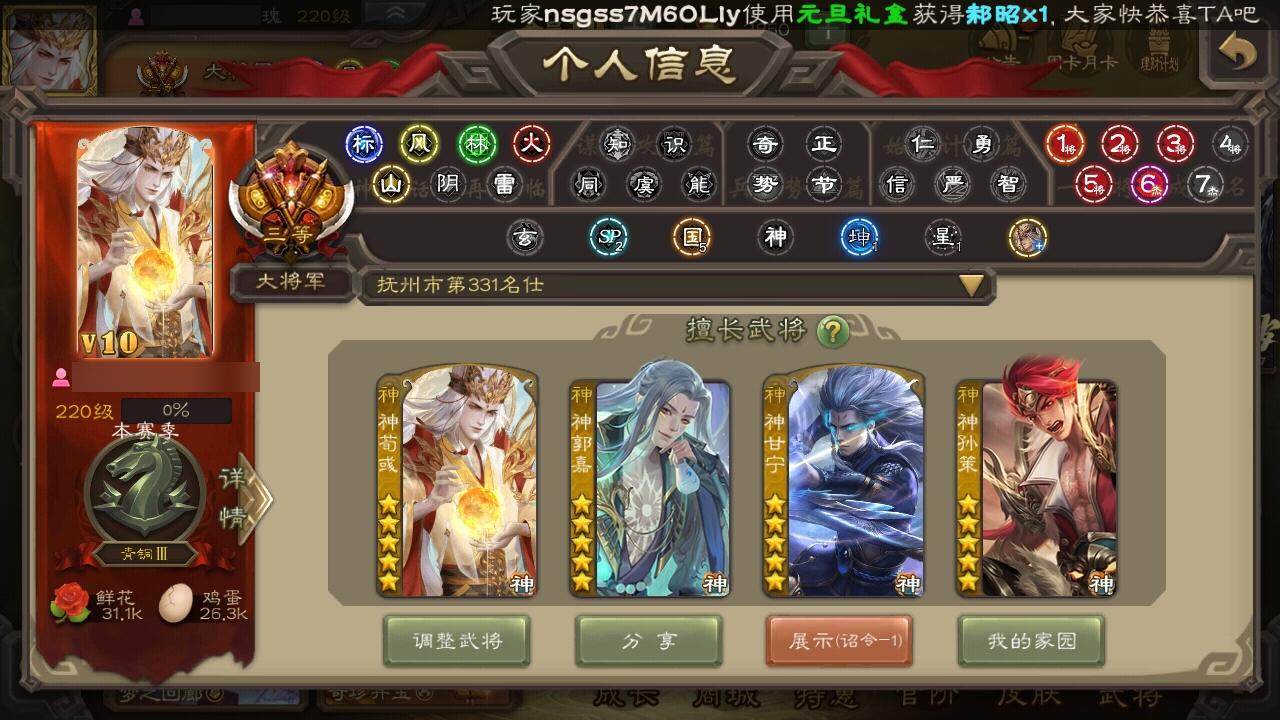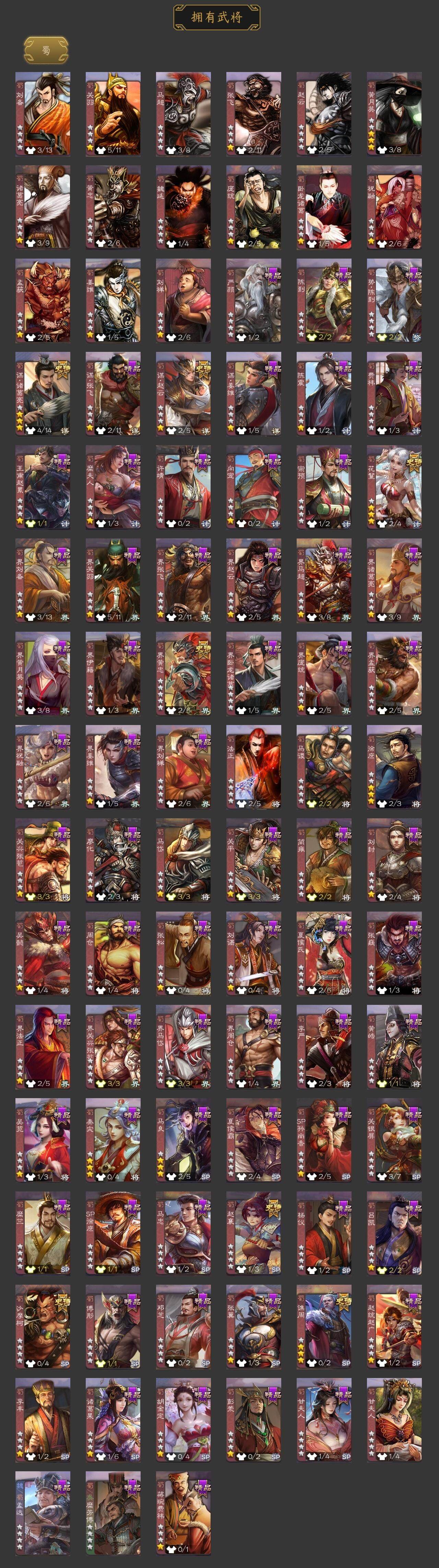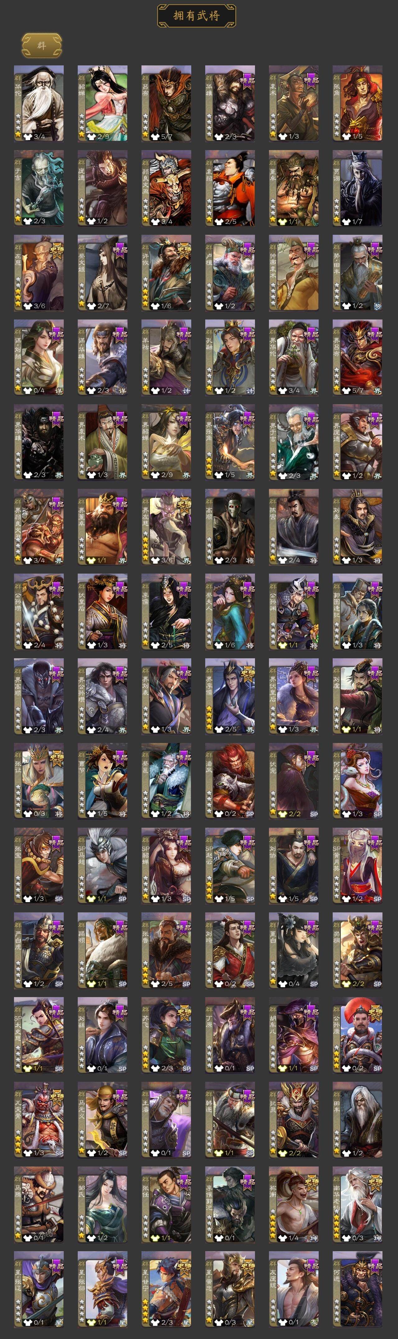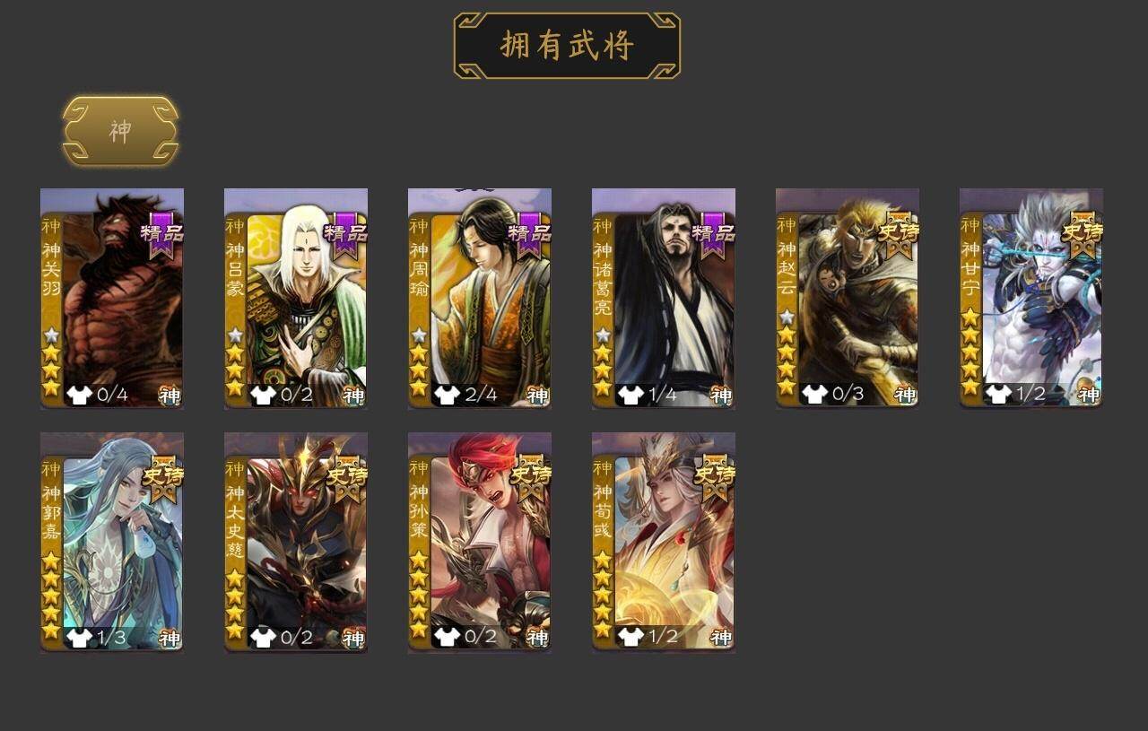 [15179251]【164】官阶:大将军;vip等级:vip10;史诗武将数量:40;动态皮肤数量:18;武将总数:374;史诗宝珠数量:0;将魂数量:1128;神将:7;魏国史诗武将:13;蜀国史诗武将:7;吴国史诗武将:4;群史诗武将:12 神赵云神甘宁神郭嘉神太史慈神孙策神荀彧神诸葛亮曹髦杨修马钧界钟会界于禁界曹真郝昭陈琳曹纯戏志才程昱谋诸葛亮谋赵云赵襄沙摩柯谯周界黄忠花鬘周处留赞界朱然界徐盛左慈张让星黄忠星甘宁苏飞南华老仙祢衡界左慈界李儒公孙康许攸兀突骨神吕蒙神周瑜神关羽sp关羽sp蔡文姬乐进曹昂诸葛诞朱灵文聘sp姜维张春华钟会曹冲郭淮满宠界王异界曹操界司马懿界夏侯惇界张辽界许褚界郭嘉李典曹真韩浩史涣陈群曹叡曹休钟繇司马朗王基李通郭皇后孙资刘放辛宪英界甄姬吕虔鲁芝蒯越蒯良界典韦界荀彧界徐晃杜畿界曹丕毌丘俭界邓艾张恭界曹植界满宠界郭淮卞夫人华歆袁涣王双崔琰谋徐晃谋于禁牛金界夏侯渊臧霸唐咨董昭势陈到sp孙尚香关银屏夏侯霸马良关兴张苞廖化界马岱关平简雍刘封界法正界关兴张苞界刘备界关羽界张飞界赵云界马超sp徐庶吴懿周仓张松刘谌夏侯氏糜竺马忠李严黄皓吴苋秦宓界黄月英界诸葛亮赵统赵广严颜界伊籍界卧龙诸葛界庞统界孟获界祝融陈到界姜维界刘禅胡金定吕凯张翼杨仪邓芝傅肜陈震费祎糜夫人王甫赵累界周仓许靖向宠宗预彭羕谋姜维谋张飞诸葛果蒋琬费祎糜芳傅士仁甘夫人鲁肃孙茹凌操大乔小乔诸葛恪诸葛瑾孙鲁育程普韩当潘璋马忠虞翻朱然界周泰界甘宁界吕蒙界黄盖界周瑜界大乔界陆逊孙鲁班朱桓顾雍孙休朱治全琮步骘阚泽孙登岑昏徐氏薛综界孙权界孙尚香潘濬sp庞统孙亮严畯界孙坚吕岱周鲂周妃界张昭张纮许贡卫温诸葛直界吴国太界凌统界韩当界程普界虞翻界潘璋马忠孙邵张温陈武董袭孙翊蒋钦吕范界顾雍界孙鲁班谋吕蒙界朱治界小乔孟达友庞统蔡文姬伏完刘协界袁术sp赵云sp貂蝉张宝