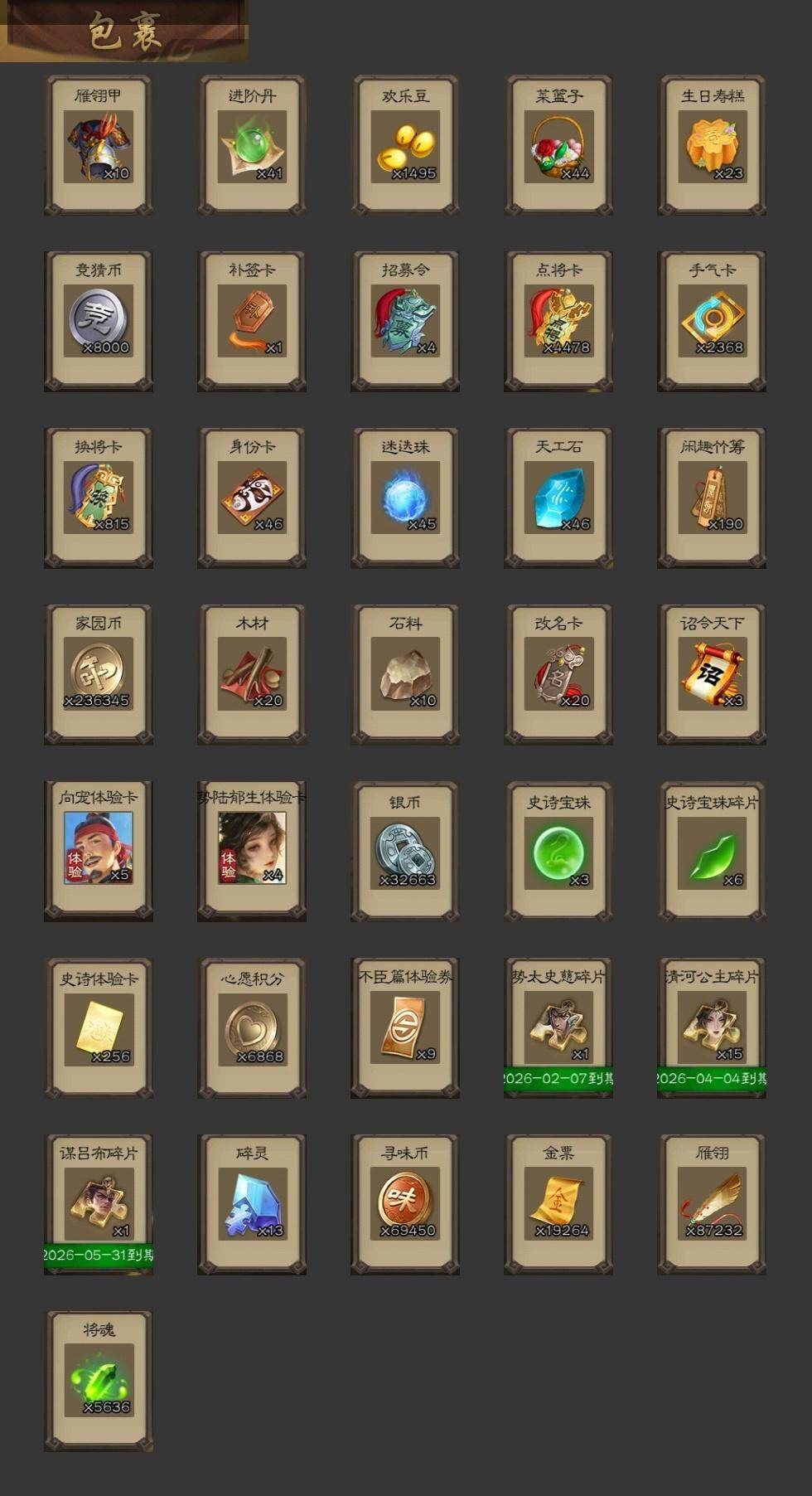 [15179432]【288】官阶:大将军;vip等级:vip9;史诗武将数量:54;动态皮肤数量:41;武将总数:406;史诗宝珠数量:3;将魂数量:5636;神将:10;魏国史诗武将:36;蜀国史诗武将:10;吴国史诗武将:6;群史诗武将:19 神吕布神赵云神司马懿神陆逊神甘宁神郭嘉神关羽神吕蒙神周瑜神诸葛亮sp司马昭星周不疑文鸯王元姬魏-司马昭马钧界钟会界于禁界曹真嵇康郝昭曹婴曹纯戏志才谋黄忠谋夏侯氏谋赵云谋马超诸葛瞻张星彩沙摩柯谯周傅佥花鬘吴景骆统留赞界朱然界徐盛界步练师裴秀左慈张让星黄忠苏飞审配麹义庞德公南华老仙界左慈界李儒杜预卑弥呼鲍信谋张角张绣李傕许攸星董卓神郭嘉-虎年清明动态神张辽-散敌擒孙神赵云-鳞振九霄神甘宁-万人辟易动态神陆逊-绽焰摧枯动态神诸葛亮-孟章诛邪动态神吕布-冠绝天下动态神司马懿-鉴往知来动态星周不疑-才广志宏动态钟会-潜蛟觊天动态曹丕-气荡山河(动态)甄姬-明珠耀躯(动态)sp蔡文姬-兔年冬日动态荀彧-驱虎吞狼动态曹丕-牛年清明动态界曹丕-牛年清明动态张春华-雪中舞刃动态钟会-谋谟之勋动态界钟会-谋谟之勋动态戏志才-举棋若定动态曹婴-兔年春节动态曹纯-虎年春节动态王元姬-鼠年冬至动态司马昭-昭威淮南(动态)星徐晃-斧引霹雳动态清河公主-魅影萦心动态刘备-龙御天下动态关羽-明良千古动态关银屏-兔年春节动态李丰-太仓聚粟动态胡金定-明良千古动态诸葛果-蛇年限定动态周处-义除三害动态吕蒙-剑起惊澜动态孙权-永开吴祚动态周瑜-兔年七夕动态孙策-虎踞江东动态孙尚香-兔年春节动态孙尚香-星流霆击动态界孙尚香-星流霆击动态步练师-牛年七夕动态界步练师-牛年七夕动态刘赞-灵魂歌王动态孙寒华-蛇年限定动态许攸-火烧乌巢动态袁绍-声震寰宇动态吕布-傲睨万物动态李儒-鸠杀少帝动态界李儒-鸠杀少帝动态皇甫嵩-奋钺振旅动态左慈-蛇年限定动态谋刘赪-冠绝天下动态