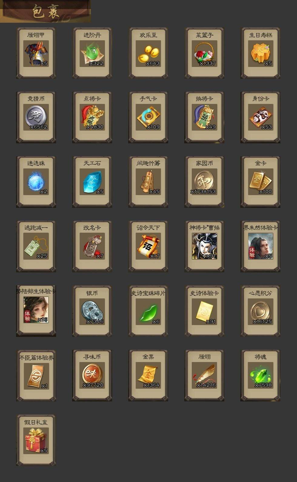 [15179447]【518】官阶:大将军;vip等级:vip9;史诗武将数量:44;动态皮肤数量:46;武将总数:387;史诗宝珠数量:0;将魂数量:7598;神将:7;魏国史诗武将:14;蜀国史诗武将:9;吴国史诗武将:5;群史诗武将:12 神吕布神赵云神陆逊神甘宁神郭嘉神太史慈神吕蒙星周不疑王粲杨修文鸯王元姬界钟会曹婴曹纯戏志才清河公主谋诸葛亮谋赵云谋马超诸葛瞻赵襄王平沙摩柯界黄忠花鬘吴景孙皓骆统界徐盛势陆郁生左慈张让苏飞麹义刘焉沮授界左慈界李儒公孙康谋张角许攸星董卓神郭嘉-虎年清明动态神太史慈-勇撼日月动态神张辽-散敌擒孙神甘宁-万人辟易动态sp司马昭-鼠年冬至(动态)王元姬-婆娑起舞(动态)星周不疑-才广志宏动态曹丕-气荡山河(动态)甄姬-明珠耀躯(动态)sp蔡文姬-兔年冬日动态清河公主-魅影萦心动态刘备-龙御天下动态诸葛亮-国之柱石(动态)关羽-明良千古动态马超-牛年春节动态马超-明良千古动态界马超-牛年春节动态关银屏-兔年春节动态李丰-太仓聚粟动态胡金定-明良千古动态孙策-兔年中秋动态周处-义除三害动态吕蒙-剑起惊澜动态孙权-兔年中秋动态孙权-永开吴祚动态孙策-虎踞江东动态孙寒华-莲华熠熠动态孙权-牛年七夕动态周瑜-鼠年春节动态界周瑜-鼠年春节动态界孙权-牛年七夕动态徐盛-破军杀将动态孙寒华-蛇年限定动态文鸯-势若万钧动态灵雎-霜刃绚练动态袁绍-声震寰宇动态麹义-扬刀立威动态吕布-鼠年七夕动态吕布-虓虎之勇动态许攸-盛气凌人动态界吕布-鼠年七夕动态界吕布-虓虎之勇动态李儒-鸠杀少帝动态界李儒-鸠杀少帝动态曹节-猪年大雪动态卑弥呼-鬼渊蝶引动态刘焉-雄踞益州动态sp赵云-威名尽显动态皇甫嵩-奋钺振旅动态
