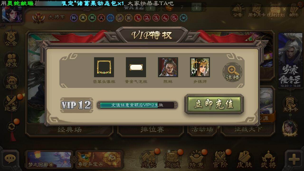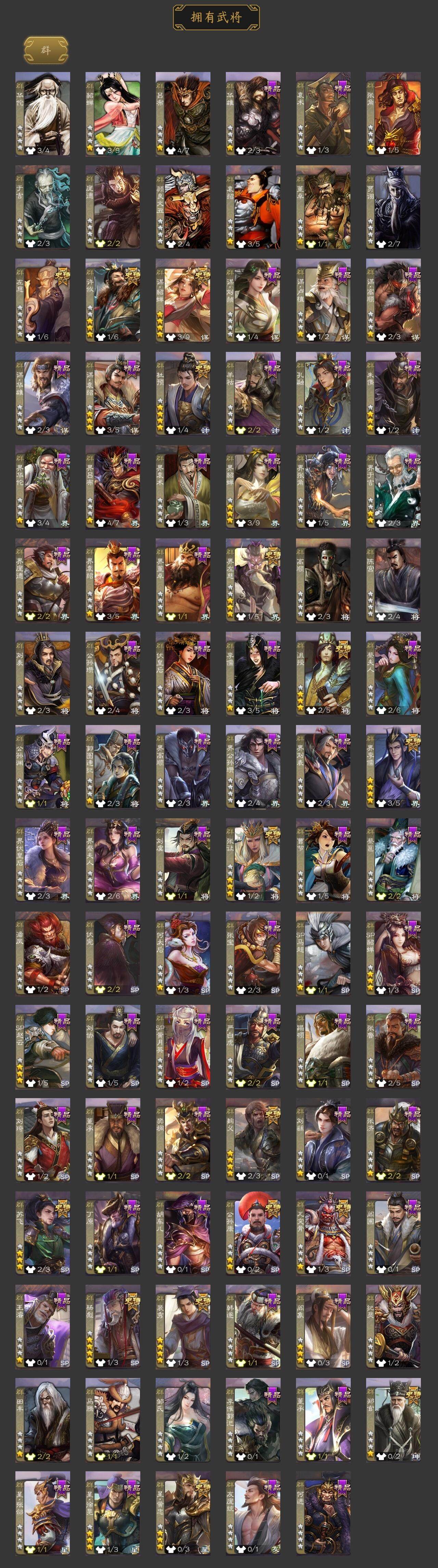 [15179484]【785】官阶:大将军;vip等级:vip12;史诗武将数量:52;动态皮肤数量:39;武将总数:392;史诗宝珠数量:0;将魂数量:186;神将:9;魏国史诗武将:26;蜀国史诗武将:12;吴国史诗武将:7;群史诗武将:16 神吕布神赵云神张辽神太史慈神孙策神荀彧神吕蒙神周瑜神诸葛亮谋曹仁杨修文鸯界钟会界于禁陈琳曹纯戏志才刘晔谋夏侯惇关索谋黄忠谋夏侯氏谋赵云谋马超诸葛瞻周群赵襄张星彩沙摩柯界黄忠花鬘张奋周处吴景孙皓骆统留赞界徐盛谋貂蝉裴秀左慈郑玄张让杨彪星黄忠苏飞麹义沮授界左慈界李儒公孙康杜预阎象许攸神太史慈-勇撼日月动态神吕布-冠绝天下动态钟会-潜蛟觊天动态曹仁-国之柱石动态曹冲-五陵英少动态甄姬-牛年清明动态曹丕-牛年清明动态界甄姬-牛年清明动态界曹丕-牛年清明动态于禁-威严毅重动态张春华-雪中舞刃动态钟会-谋谟之勋动态界于禁-威严毅重动态界钟会-谋谟之勋动态曹纯-虎年春节动态刘备-龙御天下动态诸葛亮-龙年限定动态卧龙诸葛-龙跃凤鸣动态关索-依心缱绻动态刘备-龙骧麟振动态马超-星夜袭曹动态诸葛瞻-绵竹之殇动态界刘备-龙骧麟振动态界马超-星夜袭曹动态鲍三娘-柳娇桃艳动态张翼-锐不可当动态孙策-兔年中秋动态周处-义除三害动态周瑜-兔年七夕动态孙策-虎踞江东动态孙权-吴王六剑动态大乔-猪年七夕动态界大乔-猪年七夕动态界孙权-吴王六剑动态徐盛-破军杀将动态孙鲁育-牛年端午动态孙茹-烟水悠悠动态灵雎-霜刃绚练动态貂蝉-舞惑群心动态袁绍-声震寰宇动态麹义-扬刀立威动态杜预-龙吟破竹动态吕布-鼠年七夕动态界吕布-鼠年七夕动态李儒-鸠杀少帝动态界李儒-鸠杀少帝动态sp貂蝉-驭魂千机动态张鲁-虎年冬至动态苏飞-肝胆相照动态