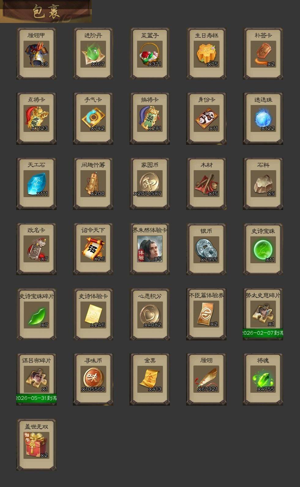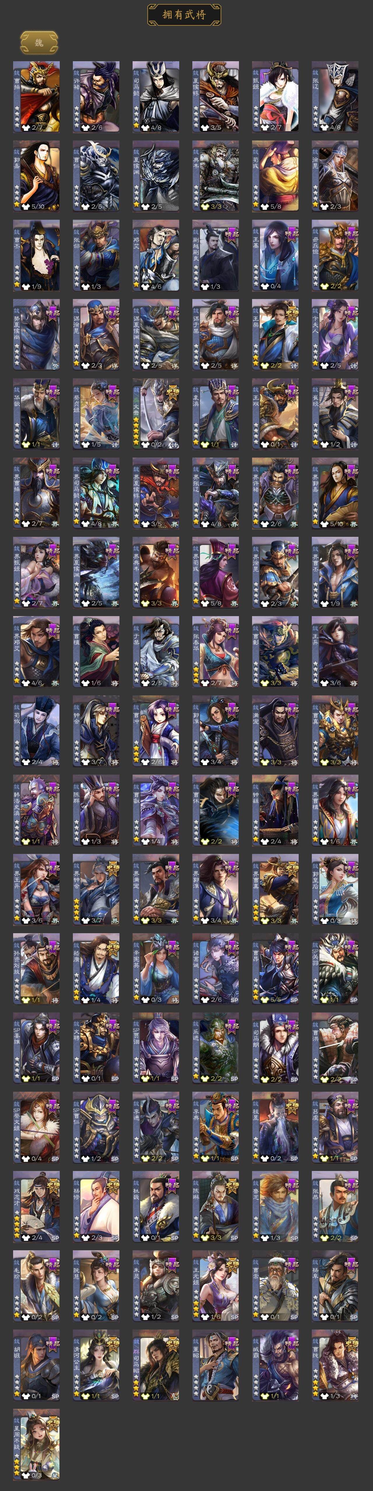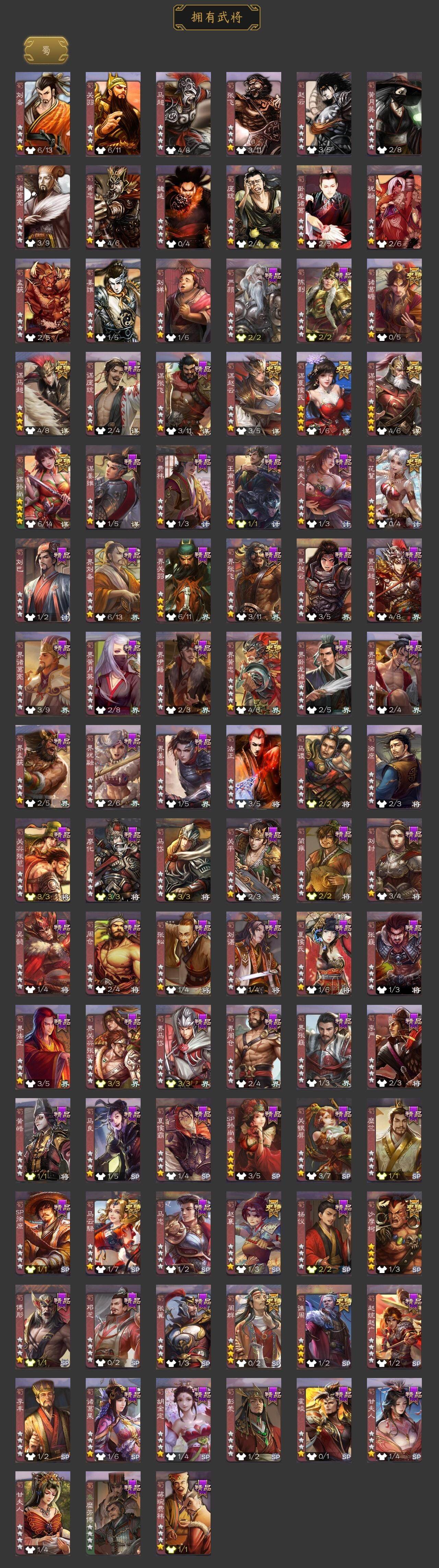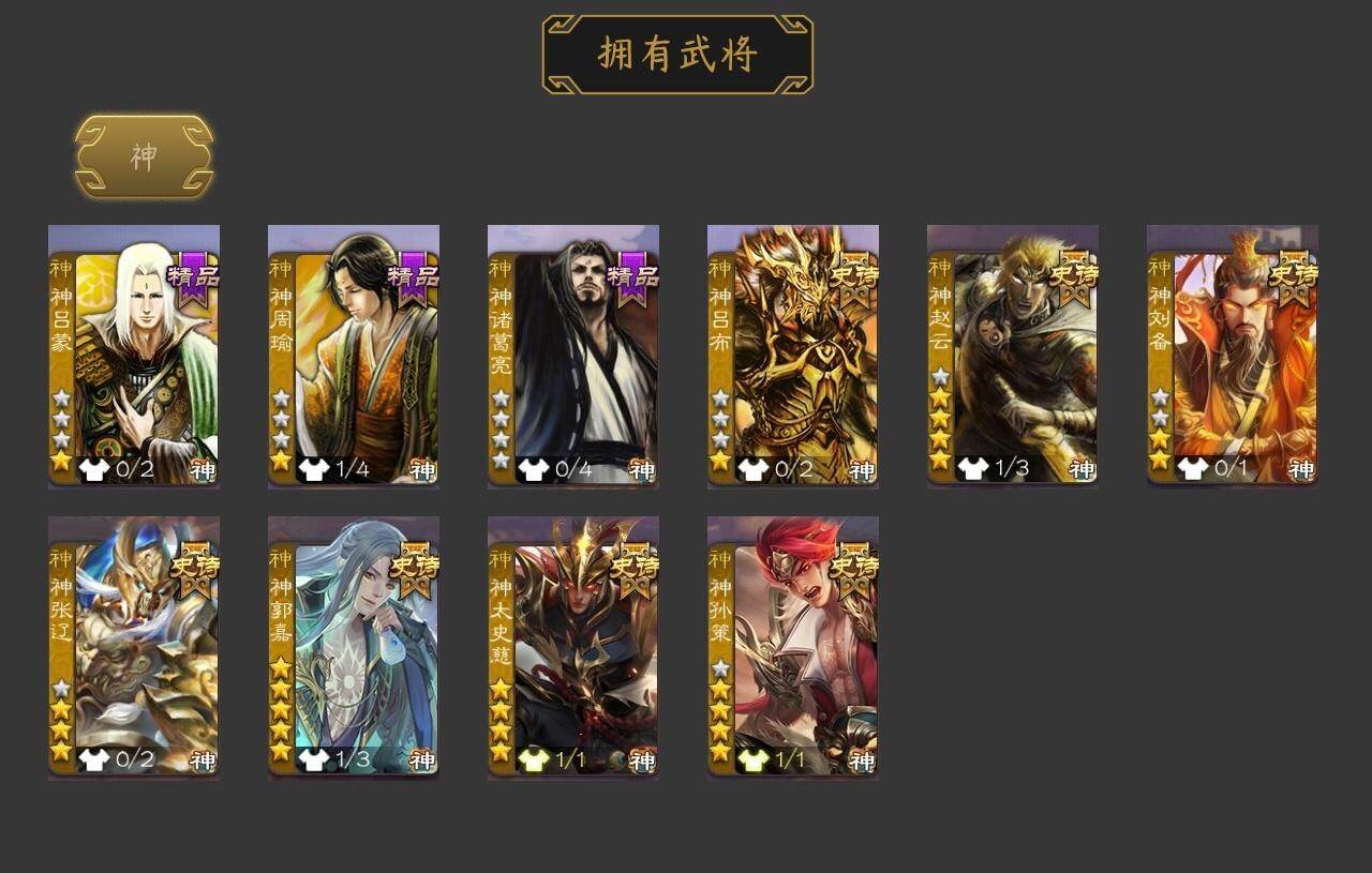 [15179871]【394】官阶:大将军;vip等级:vip12;史诗武将数量:59;动态皮肤数量:48;武将总数:400;史诗宝珠数量:11;将魂数量:4755;神将:10;魏国史诗武将:33;蜀国史诗武将:14;吴国史诗武将:6;群史诗武将:20 神吕布神赵云神刘备神张辽神郭嘉神太史慈神孙策神吕蒙神周瑜神诸葛亮星周不疑王粲杨修文鸯王元姬魏-司马昭界钟会界曹真嵇康陈琳曹纯戏志才清河公主马云騄谋孙尚香谋黄忠谋夏侯氏谋赵云谋马超诸葛瞻周群赵襄沙摩柯谯周界黄忠花鬘吴景孙寒华骆统留赞界徐盛界步练师谋貂蝉裴秀星魏延左慈张让星黄忠苏飞审配麹义南华老仙沮授界左慈界李儒公孙康卑弥呼谋张角张绣阎象许攸星董卓神郭嘉-虎年清明动态神太史慈-勇撼日月动态神孙策-霸王再世动态神荀彧-虎年清明动态神赵云-战龙在野动态钟繇-安民护祚(动态)司马懿-牛年立冬动态荀彧-驱虎吞狼动态邓艾-神兵天降动态王粲-笔翰如流动态界司马懿-牛年立冬动态界邓艾-神兵天降动态张春华-牛年立冬动态钟会-谋谟之勋动态曹真-虎年春节动态界钟会-谋谟之勋动态曹昂-竭战麟伤动态戏志才-举棋若定动态朱灵-以战破氐动态曹纯-长坂败备动态羊徽瑜-牛年中秋动态司马昭-昭威淮南(动态)清河公主-魅影萦心动态刘备-龙御天下动态刘备-龙骧麟振动态关羽-明良千古动态马超-虎年冬至动态张飞-明良千古动态赵云-牛年春节动态黄忠-明良千古动态界刘备-龙骧麟振动态界赵云-牛年春节动态夏侯氏-明良千古动态sp孙尚香-明良千古动态关银屏-兔年春节动态关索-虎年七夕动态鲍三娘-虎年七夕动态李丰-太仓聚粟动态诸葛果-虎年中秋动态胡金定-明良千古动态卧龙诸葛-火烧博望动态孙策-兔年中秋动态周处-义除三害动态周瑜-兔年七夕动态孙策-虎踞江东动态孙寒华-莲华熠熠动态孙权-牛年七夕动态孙权-吴王六剑动态孙尚香-星流霆击动态界孙权-牛年七夕动态界孙权-吴王六剑动态界孙