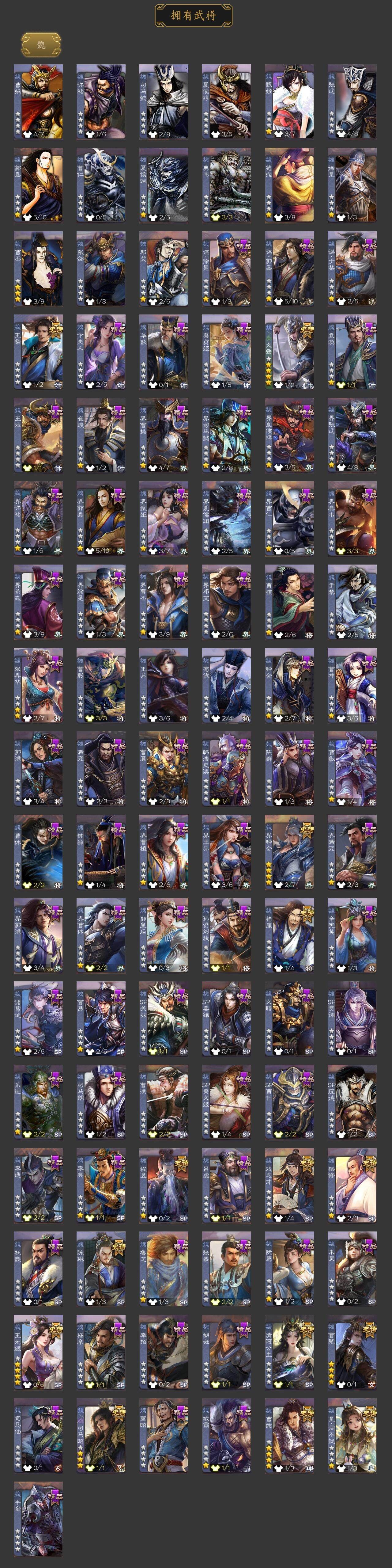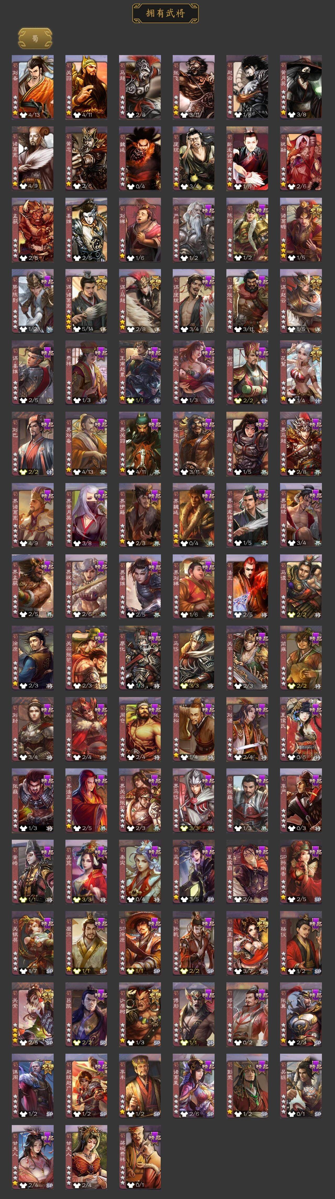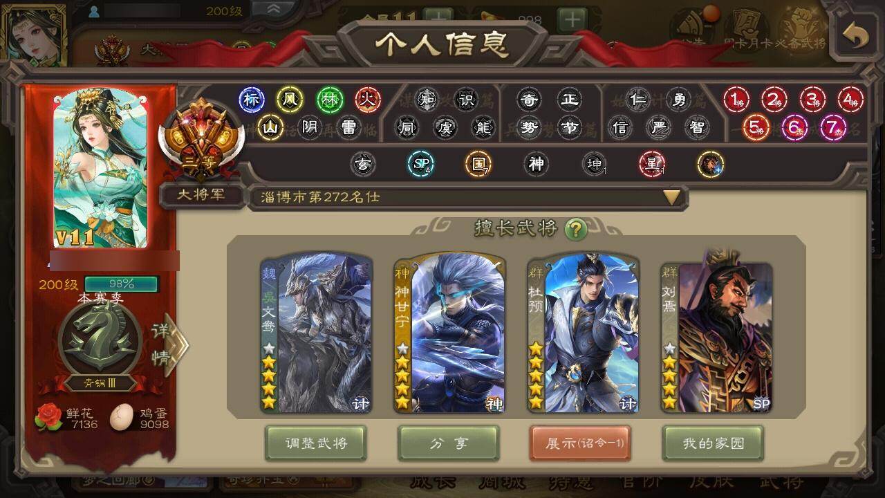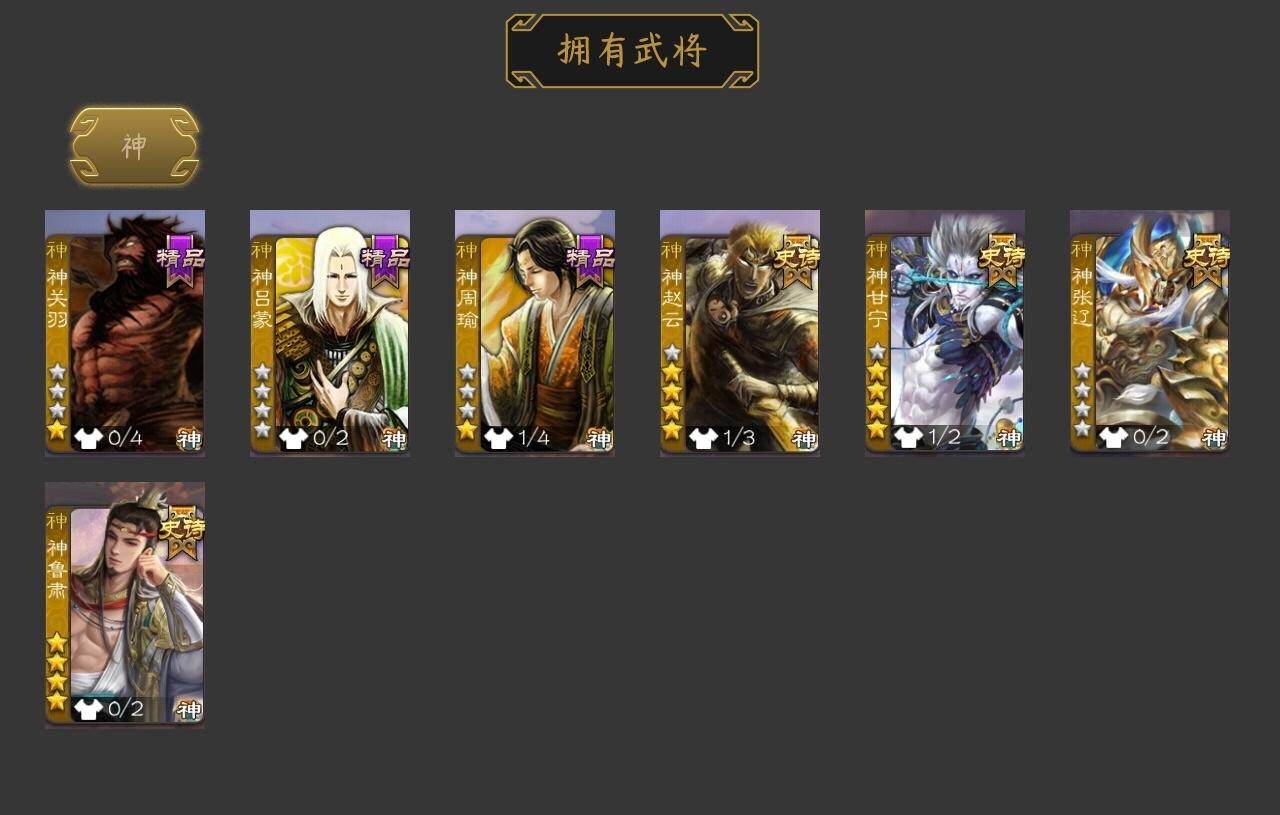 [15180153]【679】官阶:大将军;vip等级:vip11;史诗武将数量:42;动态皮肤数量:40;武将总数:383;史诗宝珠数量:23;将魂数量:8262;神将:7;魏国史诗武将:25;蜀国史诗武将:9;吴国史诗武将:4;群史诗武将:12 神赵云神甘宁神张辽神关羽神吕蒙神周瑜神鲁肃曹髦星周不疑王粲杨修文鸯王元姬魏-司马昭界钟会嵇康陈琳曹纯戏志才清河公主关索谋诸葛亮谋赵云谋马超诸葛瞻张星彩沙摩柯谯周花鬘孙寒华骆统界徐盛贺齐谋郭嘉十常侍左慈张让星黄忠麹义刘焉沮授界李儒杜预谋张角张绣神太史慈-勇撼日月动态神荀彧-虎年清明动态神甘宁-万人辟易动态神赵云-战龙在野动态郭嘉-以身证道(动态)星周不疑-才广志宏动态钟繇-安民护祚(动态)曹丕-气荡山河(动态)甄姬-牛年清明动态荀彧-驱虎吞狼动态邓艾-神兵天降动态界甄姬-牛年清明动态界邓艾-神兵天降动态张春华-雪中舞刃动态曹纯-长坂败备动态司马昭-昭威淮南(动态)星徐晃-斧引霹雳动态清河公主-魅影萦心动态花鬘-依心缱绻动态刘备-龙御天下动态关羽-明良千古动态张星彩-临军对阵动态李丰-太仓聚粟动态太史慈-涤荡江东动态周处-义除三害动态吕蒙-剑起惊澜动态孙权-永开吴祚动态周瑜-兔年七夕动态孙寒华-莲华熠熠动态孙权-吴王六剑动态界孙权-吴王六剑动态徐盛-破军杀将动态鲁肃-蛇年端午动态文鸯-势若万钧动态左慈-道法显威(动态)杜预-龙吟破竹动态左慈-役使鬼神动态许攸-盛气凌人动态sp貂蝉-驭魂千机动态刘焉-雄踞益州动态皇甫嵩-奋钺振旅动态