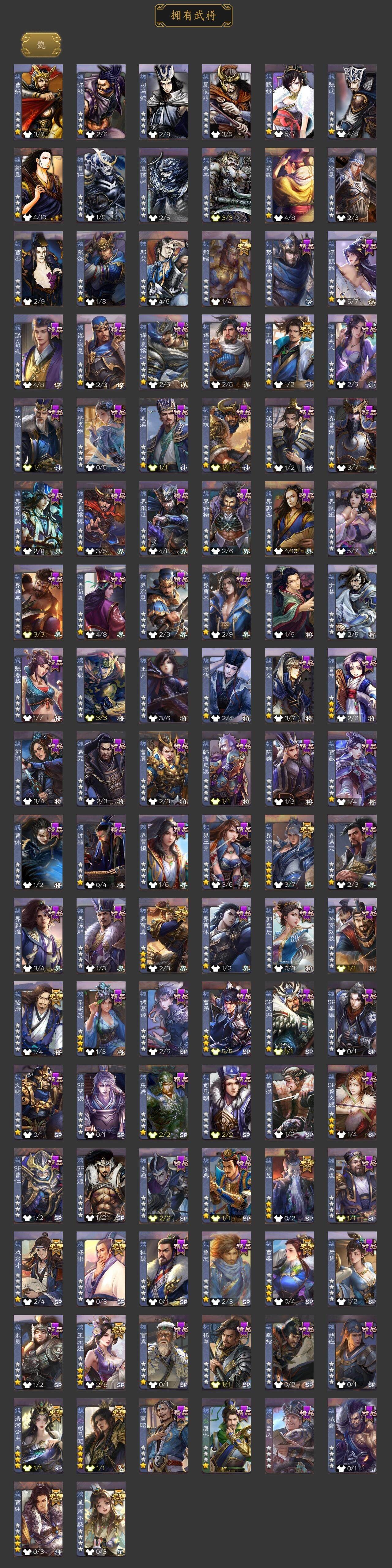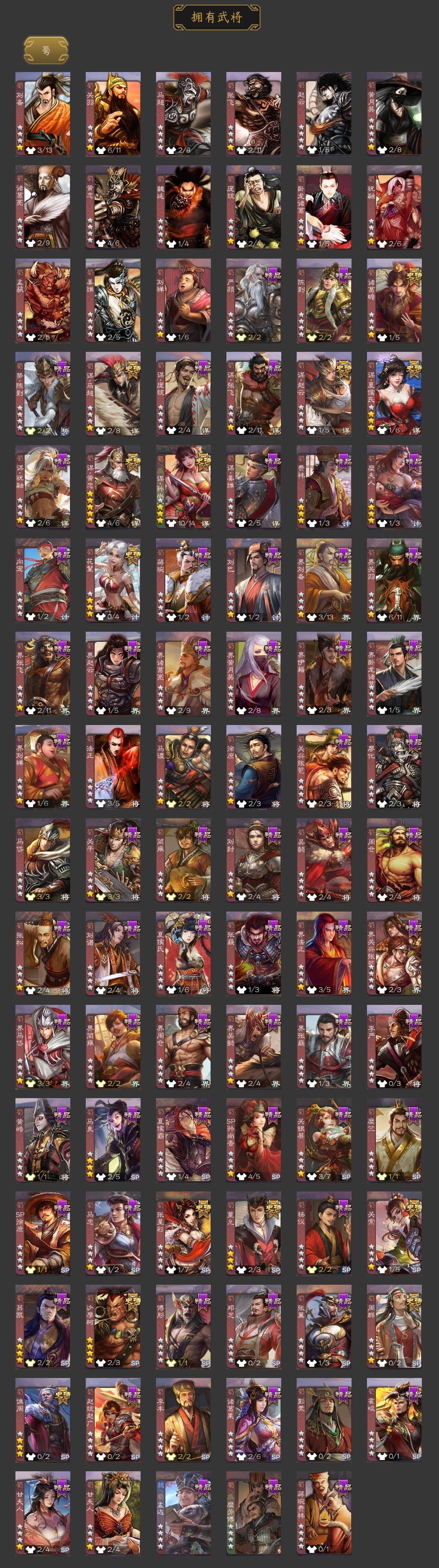 [15180189]【433】官阶:大将军;vip等级:vip10;史诗武将数量:59;动态皮肤数量:51;武将总数:400;史诗宝珠数量:30;将魂数量:9427;神将:9;魏国史诗武将:29;蜀国史诗武将:14;吴国史诗武将:6;群史诗武将:21 神吕布神赵云神司马懿神陆逊神刘备神张辽神郭嘉神吕蒙神周瑜星周不疑王粲杨修王元姬魏-司马昭界钟会界曹真嵇康郝昭曹婴曹纯戏志才清河公主关索谋孙尚香谋黄忠谋夏侯氏谋赵云谋马超诸葛瞻周群张星彩沙摩柯谯周花鬘董允周处吴景骆统留赞界朱然界徐盛谋荀彧谋公孙瓒裴秀星魏延界沮授左慈郑玄张让星黄忠苏飞麹义南华老仙刘焉沮授界左慈界李儒卑弥呼鲍信谋张角张绣星董卓神郭嘉-虎年清明动态神诸葛亮-观星唤雨神曹操-天下归心神吕布-冠绝天下动态神赵云-战龙在野动态神司马懿-鉴往知来动态钟会-潜蛟觊天动态甄姬-明珠耀躯(动态)sp蔡文姬-兔年冬日动态甄姬-牛年清明动态荀彧-驱虎吞狼动态邓艾-神兵天降动态界甄姬-牛年清明动态钟会-谋谟之勋动态界钟会-谋谟之勋动态曹昂-竭战麟伤动态戏志才-举棋若定动态羊徽瑜-牛年中秋动态司马昭-昭威淮南(动态)星徐晃-斧引霹雳动态清河公主-魅影萦心动态刘备-龙御天下动态关索-依心缱绻动态黄忠-明良千古动态sp孙尚香-明良千古动态关银屏-兔年春节动态鲍三娘-虎年七夕动态李丰-太仓聚粟动态胡金定-明良千古动态诸葛果-蛇年限定动态太史慈-涤荡江东动态周处-义除三害动态陆逊-龙年七夕动态孙权-兔年中秋动态孙权-永开吴祚动态孙策-虎踞江东动态孙权-牛年七夕动态孙尚香-兔年春节动态孙尚香-星流霆击动态大乔-猪年七夕动态大乔-鼠年春分动态大乔-绝世之姿动态孙策-猪年七夕动态小乔-猪年大雪动态界大乔-猪年七夕动态界大乔-鼠年春分动态界大乔-绝世之姿动态界孙权-牛年七夕动态界孙尚香-星流霆击动态界小乔-猪年大雪动态步练师-牛年七夕动态刘赞-灵魂歌王动态