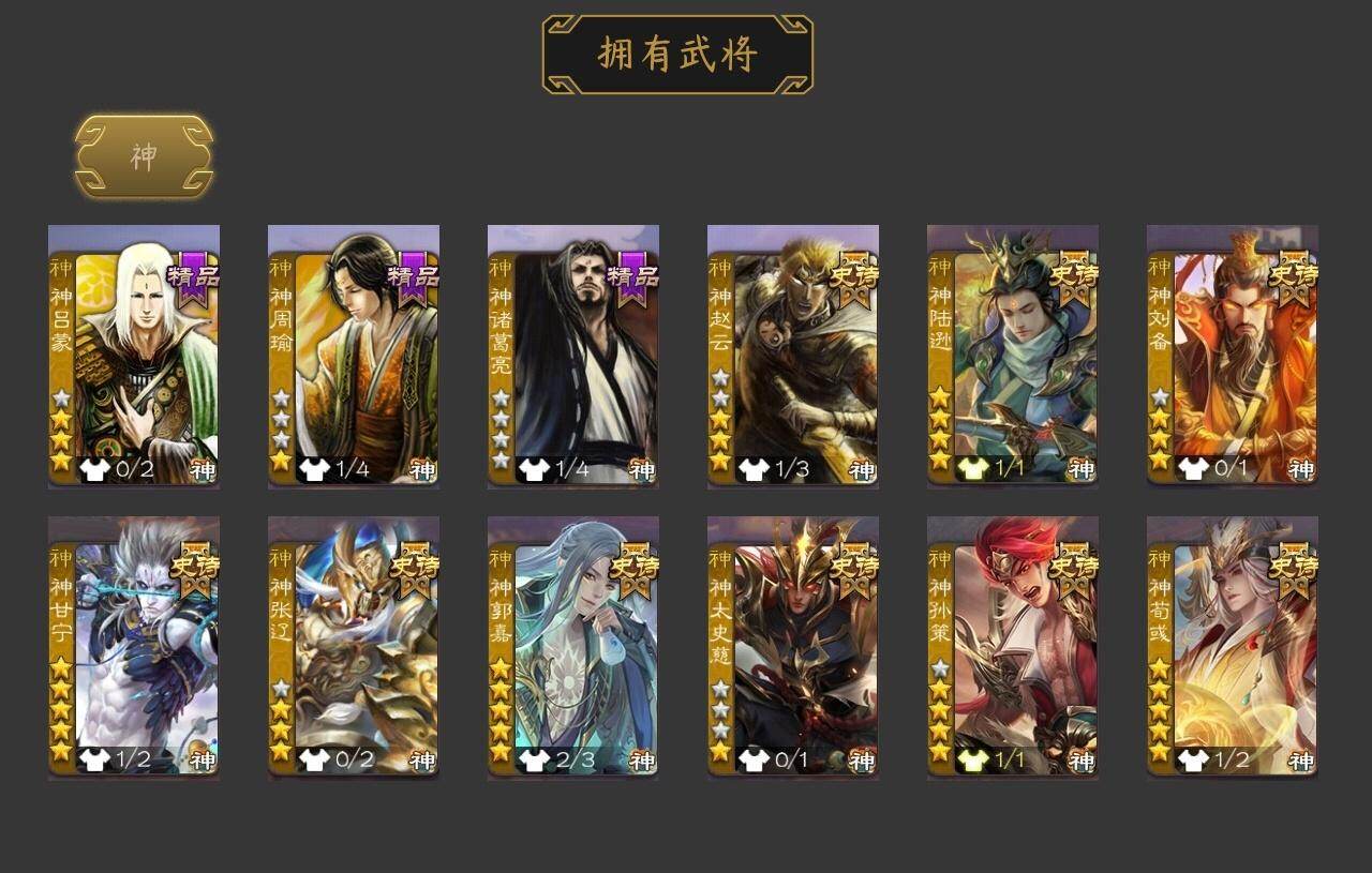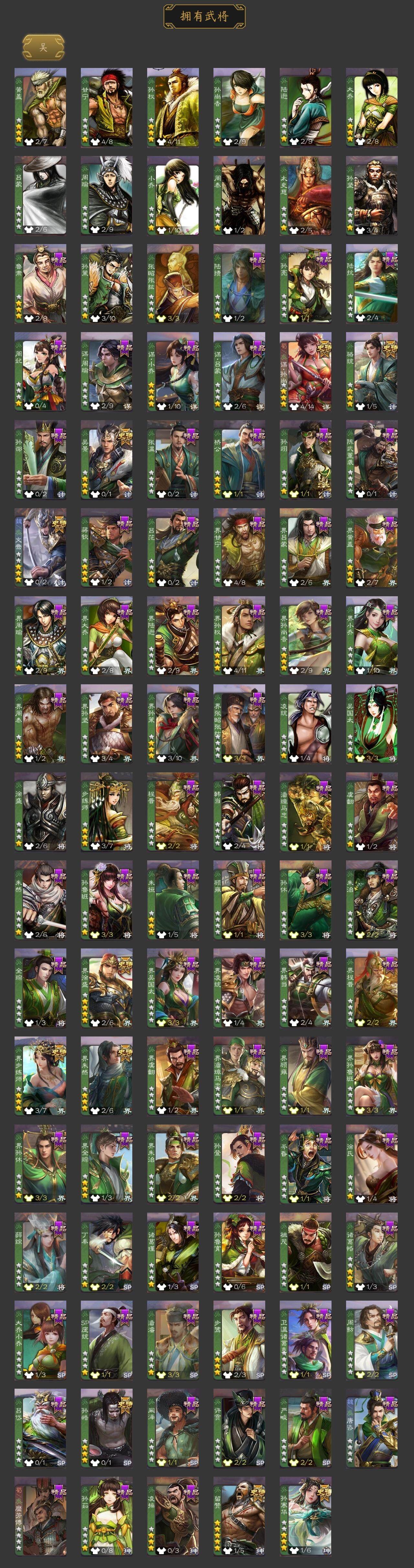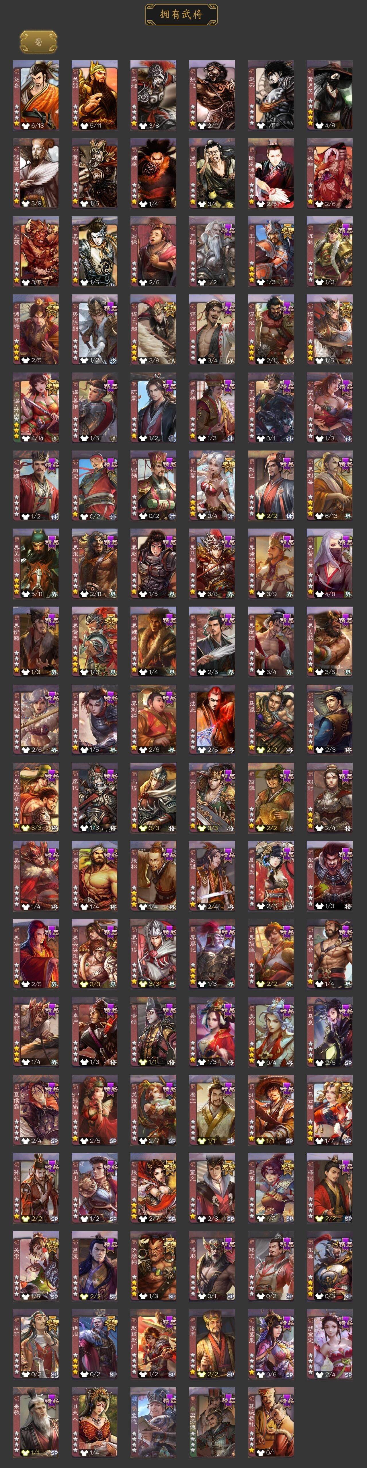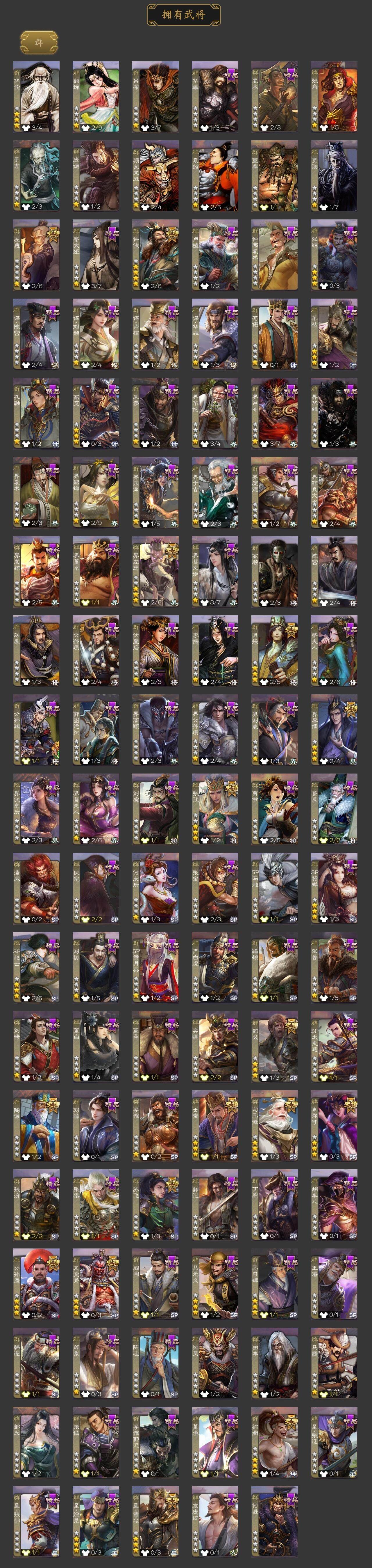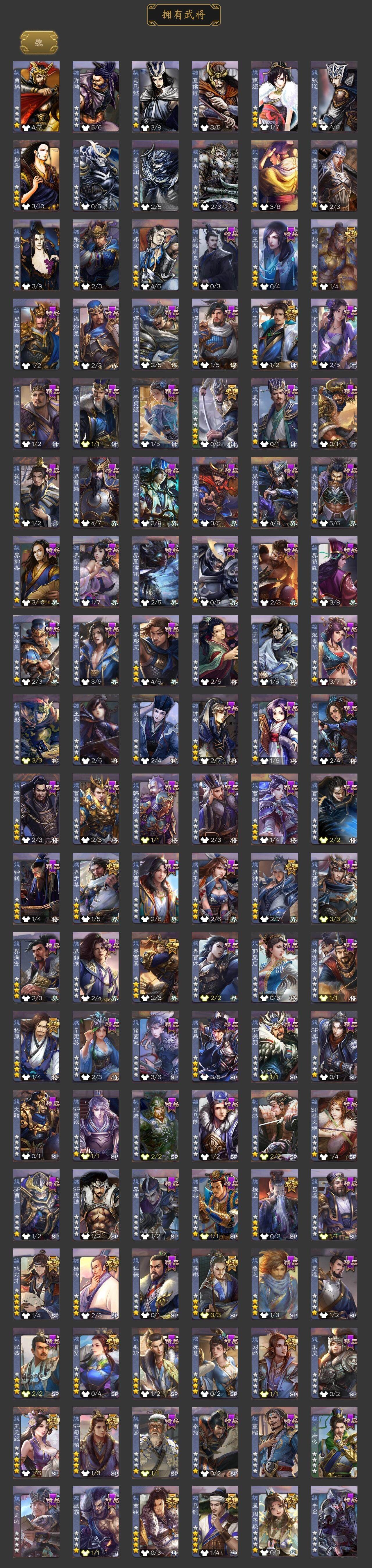 [15180357]【628】官阶:大将军;vip等级:vip11;史诗武将数量:66;动态皮肤数量:39;武将总数:447;史诗宝珠数量:44;将魂数量:835;神将:12;魏国史诗武将:26;蜀国史诗武将:16;吴国史诗武将:8;群史诗武将:18 神赵云神陆逊神刘备神甘宁神张辽神郭嘉神太史慈神孙策神荀彧神吕蒙神周瑜神诸葛亮sp司马昭星周不疑王粲杨修文鸯王元姬马钧界钟会界于禁界曹真嵇康郝昭陈琳曹婴曹纯戏志才刘晔关索马云騄谋孙尚香谋赵云谋马超诸葛瞻周群赵襄张星彩王平沙摩柯谯周界黄忠花鬘董允吴景孙皓孙寒华骆统留赞界朱然界徐盛界步练师左慈张让星黄忠陶谦苏飞司马徽麹义祢衡沮授界左慈界李儒公孙康卑弥呼张绣李傕阎象许攸陈珪神郭嘉-虎年清明动态神孙策-霸王再世动态神荀彧-虎年清明动态神郭嘉-半醉山河神甘宁-万人辟易动态神陆逊-绽焰摧枯动态神诸葛亮-观星唤雨神曹操-天下归心神吕布-监兵噬魅动态神赵云-战龙在野动态sp蔡文姬-兔年冬日动态许褚-兔年端午动态许褚-虎啸生风动态荀彧-驱虎吞狼动态曹丕-猪年端午动态张郃-背水一战动态邓艾-神兵天降动态界许褚-虎啸生风动态界曹丕-猪年端午动态界邓艾-神兵天降动态张春华-雪中舞刃动态钟会-谋谟之勋动态界钟会-谋谟之勋动态卧龙诸葛-龙跃凤鸣动态刘备-明良千古动态关羽-明良千古动态马超-虎年冬至动态黄月英-木牛流马动态刘禅-猪年端午动态界刘备-明良千古动态界黄月英-木牛流马动态界刘禅-猪年端午动态张星彩-虎年端午动态鲍三娘-虎年七夕动态李丰-太仓聚粟动态胡金定-明良千古动态周瑜-兔年七夕动态孙策-虎踞江东动态孙权-吴王六剑动态大乔-猪年七夕动态孙策-猪年七夕动态界大乔-猪年七夕动态界孙权-吴王六剑动态界孙策-猪年七夕动态徐盛-破军杀将动态孙鲁班-牛年端午动态界孙鲁班-牛年端午动态刘赞-抗音而歌动态孙寒华-蛇年限定动态灵雎-霜刃绚练动态吕布-傲睨