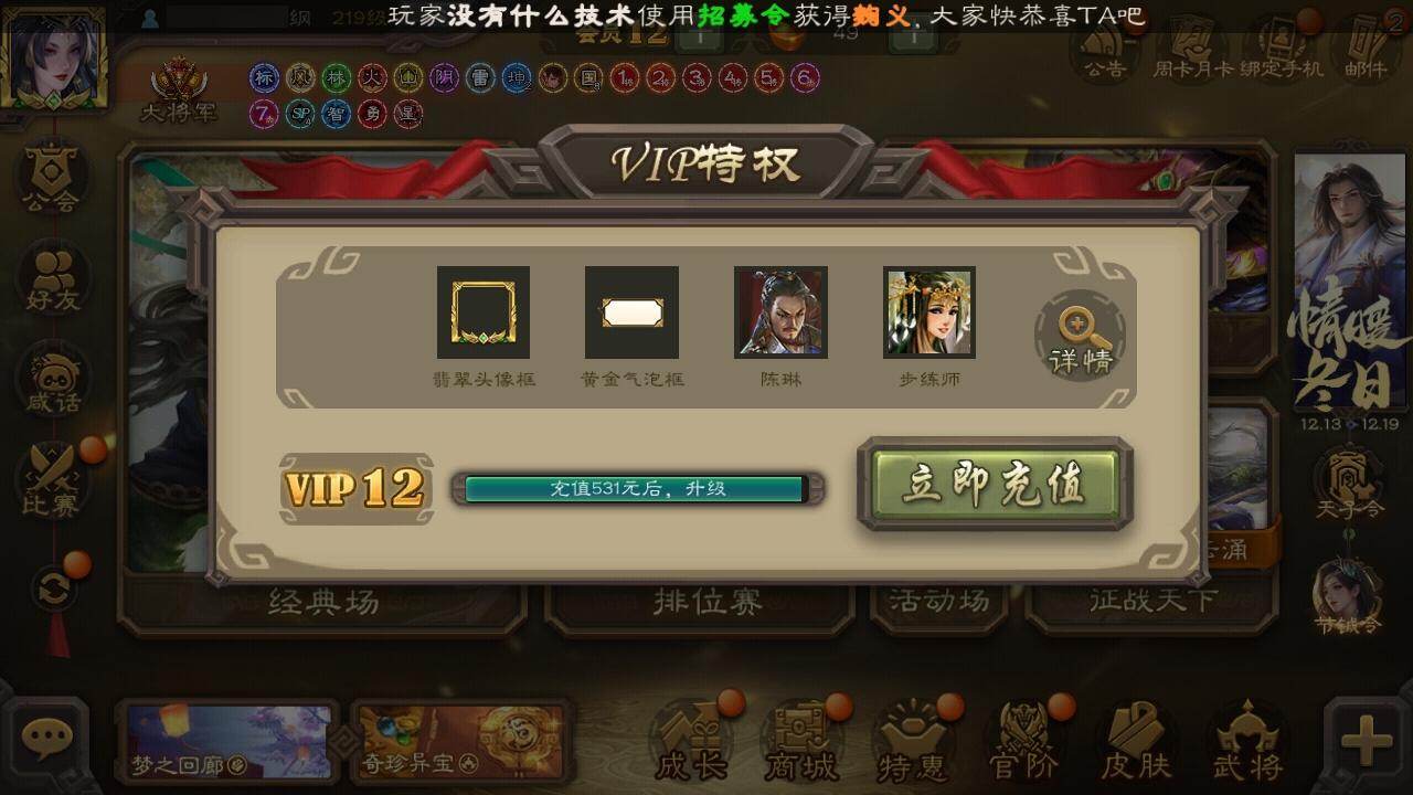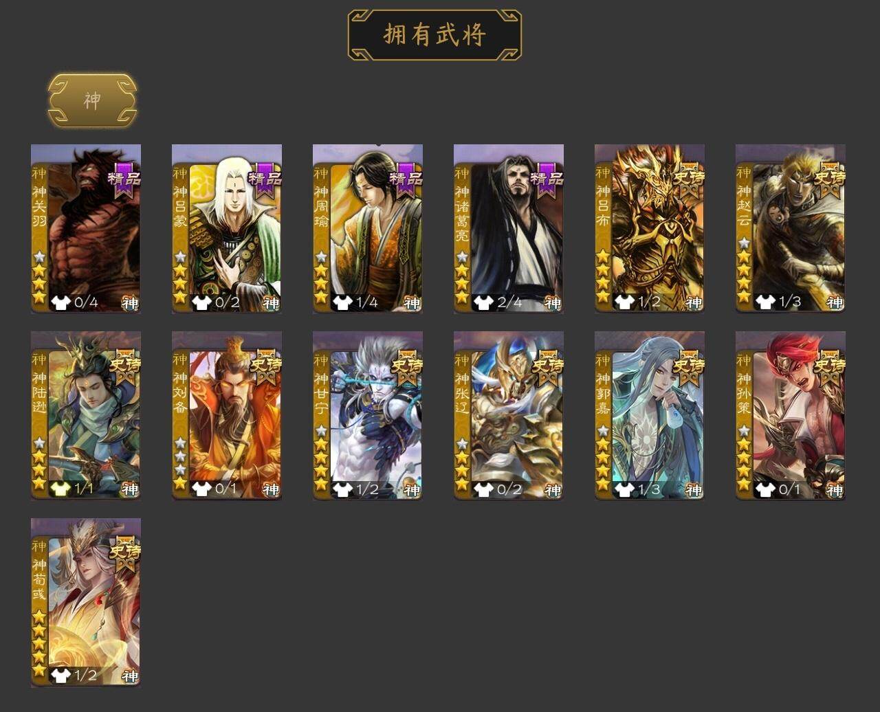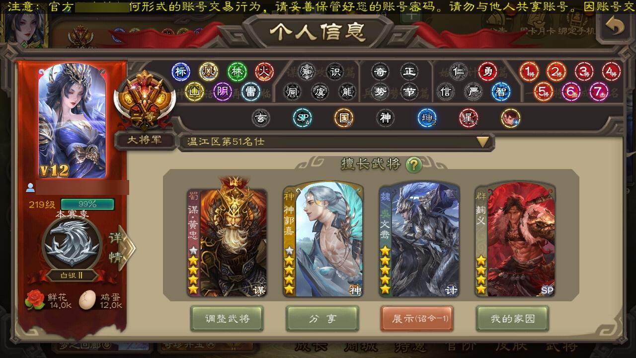 [15180481]【69】官阶:大将军;vip等级:vip12;史诗武将数量:64;动态皮肤数量:43;武将总数:437;史诗宝珠数量:0;将魂数量:4716;神将:13;魏国史诗武将:25;蜀国史诗武将:16;吴国史诗武将:6;群史诗武将:20 神吕布神赵云神陆逊神刘备神甘宁神张辽神郭嘉神孙策神荀彧神关羽神吕蒙神周瑜神诸葛亮王粲杨修文鸯马钧界钟会界于禁界曹真嵇康郝昭陈琳曹纯戏志才刘晔清河公主关索马云騄谋黄忠谋赵云谋马超诸葛瞻周群赵襄张星彩王平沙摩柯谯周傅佥界黄忠花鬘鲍三娘吴景骆统留赞界徐盛界步练师贺齐左慈张让杨彪星黄忠司马徽麹义庞德公南华老仙祢衡沮授界左慈界李儒公孙康杜预卑弥呼张绣李傕许攸友徐庶星董卓神鲁肃-九州为局神郭嘉-虎年清明动态神荀彧-虎年清明动态神甘宁-万人辟易动态神陆逊-绽焰摧枯动态神诸葛亮-观星唤雨神诸葛亮-孟章诛邪动态神曹操-天下归心神曹操-玄天通冥动态神吕布-监兵噬魅动态神赵云-战龙在野动态许褚-虎啸生风动态荀彧-驱虎吞狼动态邓艾-神兵天降动态界许褚-虎啸生风动态界邓艾-神兵天降动态张春华-雪中舞刃动态钟会-谋谟之勋动态钟繇-稳定关右动态界钟会-谋谟之勋动态程昱-泰山捧日动态朱灵-以战破氐动态曹纯-长坂败备动态王元姬-鼠年冬至动态清河公主-魅影萦心动态刘备-龙骧麟振动态关羽-明良千古动态马超-西凉雄狮动态黄月英-虎年中秋动态黄月英-明良千古动态诸葛亮-明良千古动态黄忠-明良千古动态魏延-麒麟生角动态界刘备-龙骧麟振动态界马超-西凉雄狮动态界诸葛亮-明良千古动态界黄月英-明良千古动态界魏延-麒麟生角动态夏侯氏-明良千古动态sp孙尚香-猪年圣诞动态关索-虎年七夕动态李丰-太仓聚粟动态胡金定-明良千古动态周处-义除三害动态孙权-猪年端午动态孙权-吴王六剑动态陆逊-猪年圣诞动态大乔-鼠年春分动态孙策-长沙桓王动态界大乔-鼠年春分动态界陆逊-猪年圣诞动