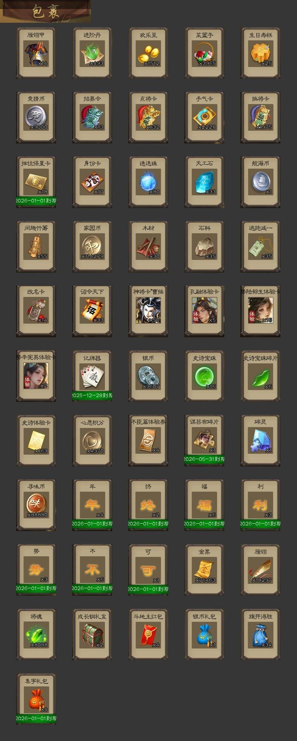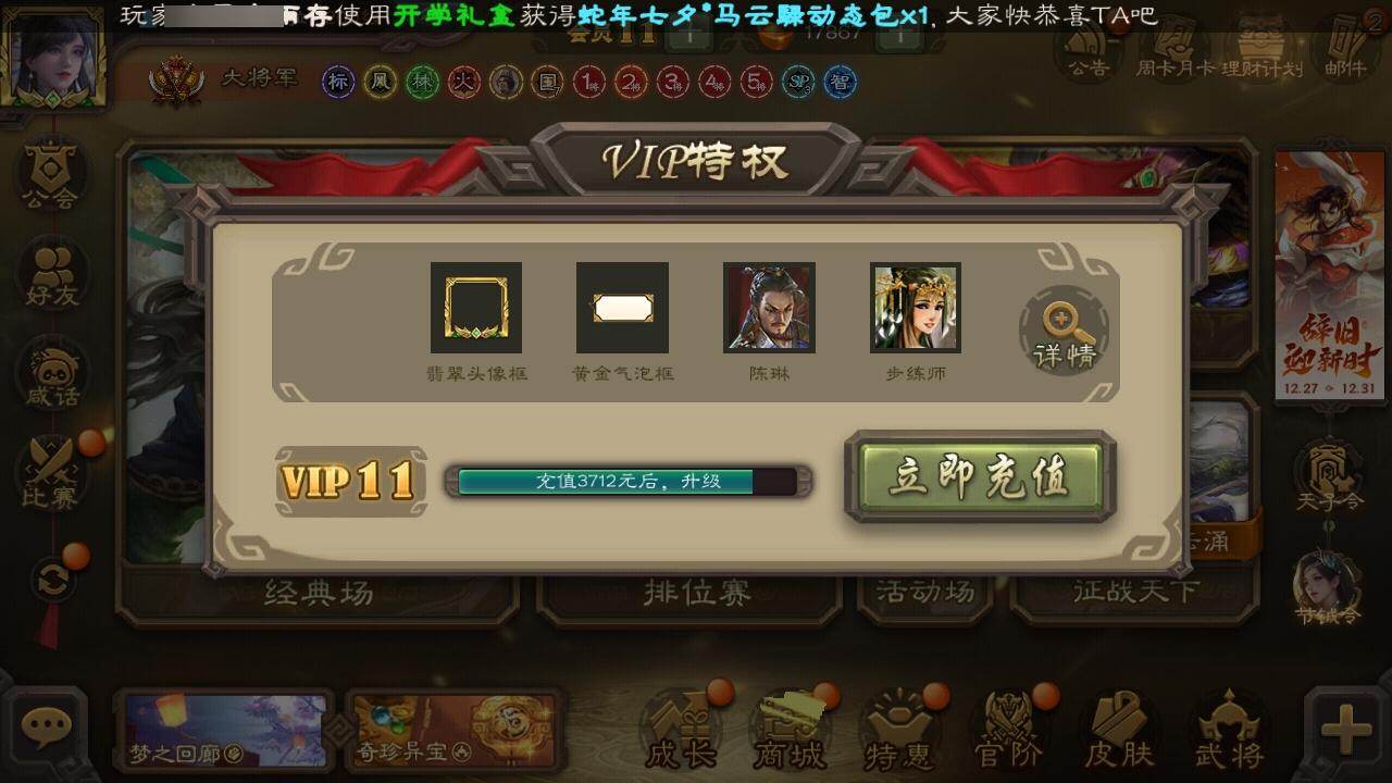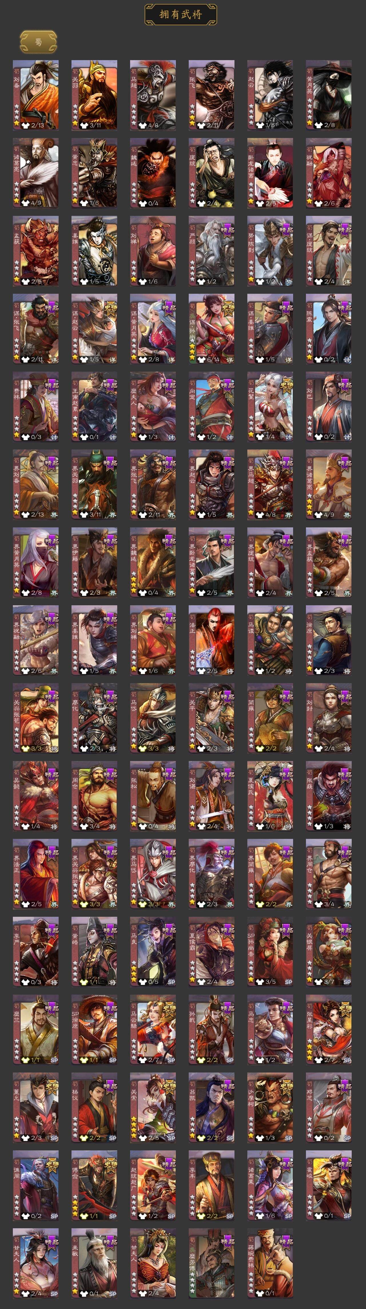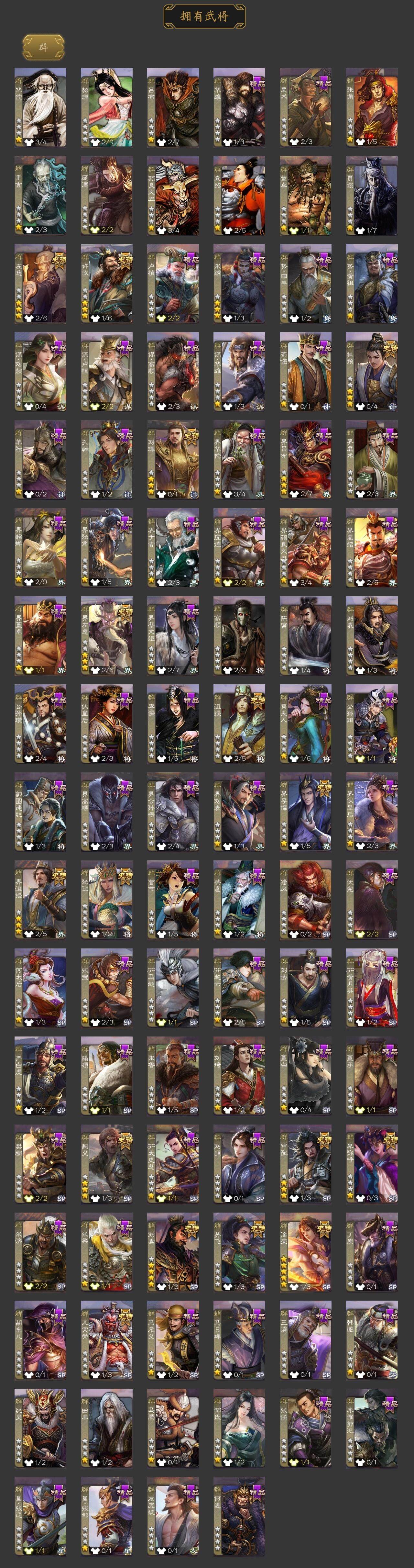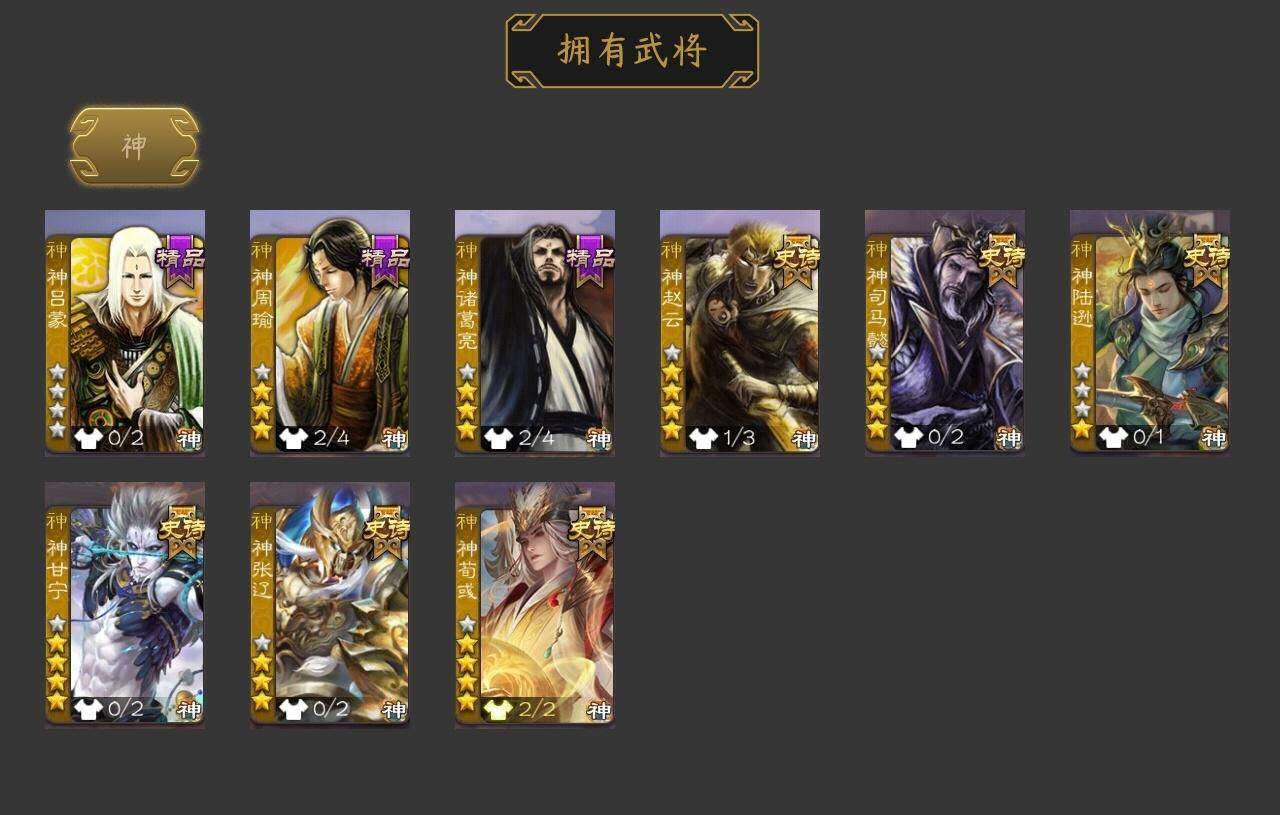 [15180537]【1005】官阶:大将军;vip等级:vip11;史诗武将数量:53;动态皮肤数量:39;武将总数:398;史诗宝珠数量:16;将魂数量:8088;神将:9;魏国史诗武将:18;蜀国史诗武将:11;吴国史诗武将:9;群史诗武将:17 神赵云神司马懿神陆逊神甘宁神张辽神荀彧神吕蒙神周瑜神诸葛亮王粲杨修文鸯界钟会嵇康陈琳曹纯戏志才刘晔清河公主蒋济关索马云騄谋孙尚香谋赵云张星彩沙摩柯谯周傅佥花鬘董允谋黄盖吴景孙皓孙寒华骆统界朱然界徐盛界步练师势陆郁生谋黄月英界沮授左慈张让徐荣苏飞审配麹义刘璋刘焉沮授界左慈界李儒杜预卑弥呼张绣许攸神太史慈-勇撼日月动态神荀彧-虎年清明动态神荀彧-匡汉延祚动态神诸葛亮-风舞魔鸟动态神周瑜-陵光引灵动态神诸葛亮-剑祭通天动态神赵云-战龙在野动态甄姬-明珠耀躯(动态)郭嘉-十胜十败动态荀彧-驱虎吞狼动态王基-独秉固志动态界郭嘉-十胜十败动态于禁-威严毅重动态钟会-谋谟之勋动态界钟会-谋谟之勋动态清河公主-魅影萦心动态卧龙诸葛-龙跃凤鸣动态关索-依心缱绻动态马超-明良千古动态诸葛亮-明良千古动态界诸葛亮-明良千古动态sp孙尚香-明良千古动态关银屏-兔年春节动态张星彩-临军对阵动态赵襄-猪年春节动态关索-鼠年中秋动态李丰-太仓聚粟动态诸葛果-蛇年限定动态周处-义除三害动态黄盖-鏖战赤壁动态孙权-吴王六剑动态孙尚香-兔年春节动态界黄盖-鏖战赤壁动态界孙权-吴王六剑动态徐氏-琪花瑶草动态孙鲁育-牛年端午动态灵雎-霜刃绚练动态左慈-道法显威(动态)刘焉-雄踞益州动态苏飞-肝胆相照动态徐荣-烬灭神骸动态sp赵云-威名尽显动态陶谦-安民护祚动态