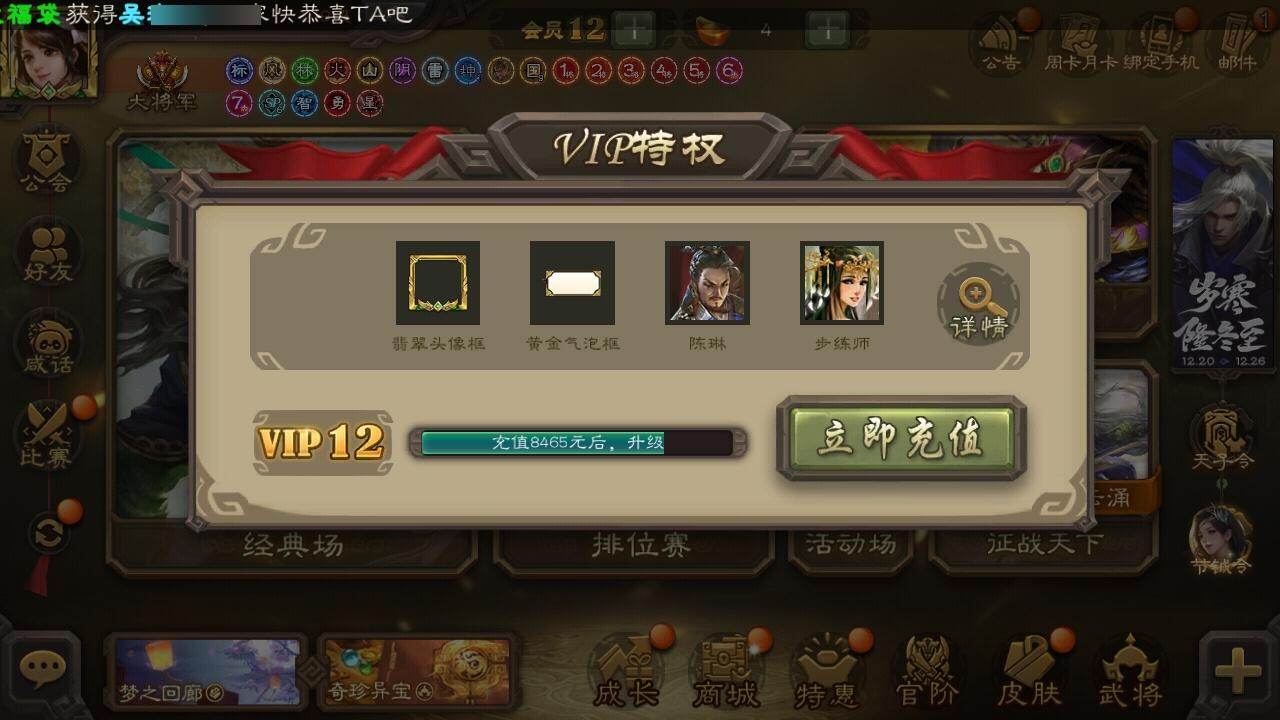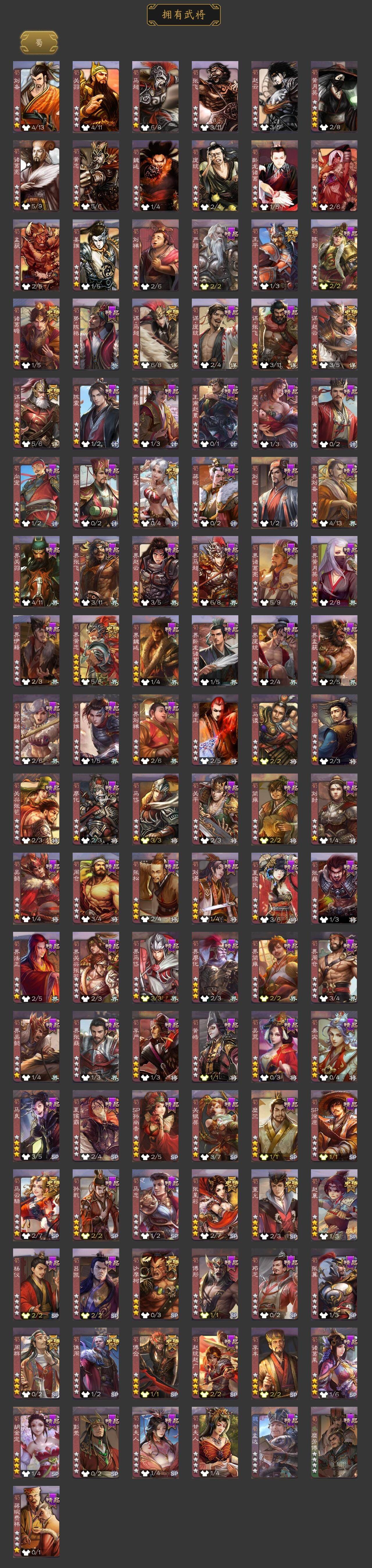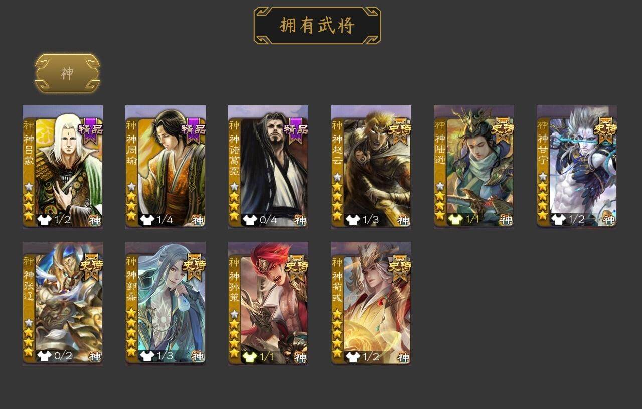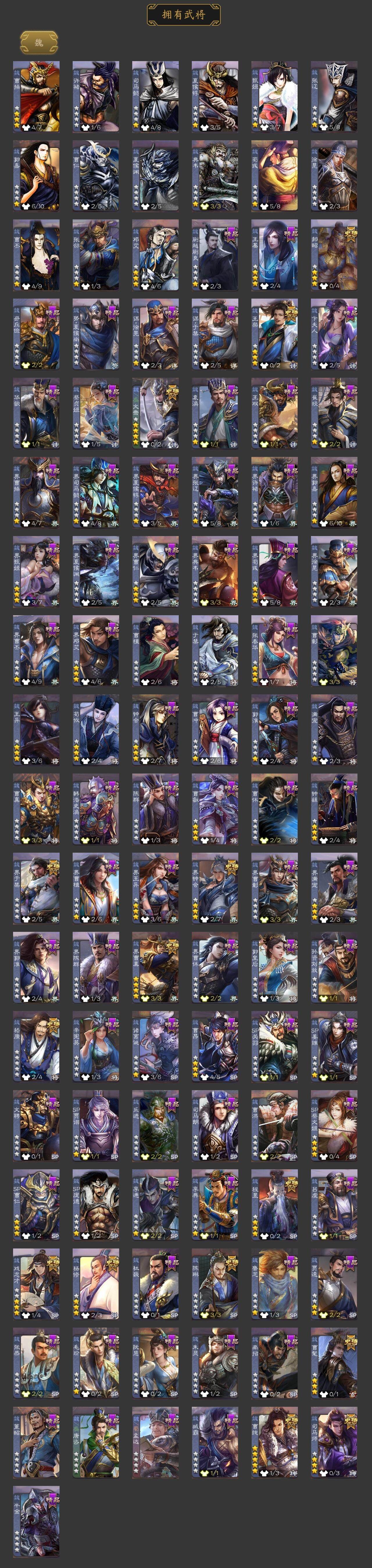 [15180573]【197】官阶:大将军;vip等级:vip12;史诗武将数量:60;动态皮肤数量:40;武将总数:437;史诗宝珠数量:0;将魂数量:1863;神将:10;魏国史诗武将:17;蜀国史诗武将:15;吴国史诗武将:7;群史诗武将:17 神赵云神陆逊神甘宁神张辽神郭嘉神孙策神荀彧神吕蒙神周瑜神诸葛亮曹髦王粲杨修文鸯司马师界钟会界于禁界曹真嵇康郝昭陈琳曹纯戏志才马云騄谋黄忠谋赵云谋马超诸葛瞻周群赵襄张星彩王平沙摩柯谯周傅佥界黄忠花鬘董允吴景骆统留赞界朱然界徐盛界步练师贺齐界沮授左慈张让星黄忠陶谦审配麹义南华老仙刘焉沮授界李儒公孙康杜预卑弥呼张绣李傕许攸神郭嘉-虎年清明动态神孙策-霸王再世动态神荀彧-虎年清明动态神甘宁-万人辟易动态神陆逊-绽焰摧枯动态神吕蒙-兼资文武动态神曹操-天下归心神赵云-战龙在野动态钟繇-安民护祚(动态)曹丕-气荡山河(动态)荀彧-驱虎吞狼动态曹丕-牛年清明动态邓艾-神兵天降动态界曹丕-牛年清明动态界邓艾-神兵天降动态曹真-虎年春节动态朱灵-以战破氐动态曹纯-长坂败备动态刘备-猪年圣诞动态关羽-明良千古动态马超-牛年春节动态马超-虎年冬至动态马超-明良千古动态张飞-明良千古动态赵云-牛年春节动态赵云-明亮千古动态诸葛亮-虎年中秋动态黄忠-明良千古动态界刘备-猪年圣诞动态界赵云-牛年春节动态界马超-牛年春节动态夏侯氏-明良千古动态sp孙尚香-猪年圣诞动态关银屏-虎年端午动态马云騄-明良千古动态关索-虎年七夕动态鲍三娘-虎年七夕动态李丰-太仓聚粟动态诸葛果-虎年中秋动态胡金定-明良千古动态孙策-兔年清明动态孙茹-龙年七夕动态周处-义除三害动态孙权-冠绝天下动态陆逊-猪年圣诞动态小乔-鼠年春分动态界陆逊-猪年圣诞动态界小乔-鼠年春分动态徐盛-破军杀将动态朱然-剑舞枫飞动态孙鲁班-牛年端午动态界孙鲁班-牛年端午动态孙鲁育-猪年春节动态孙