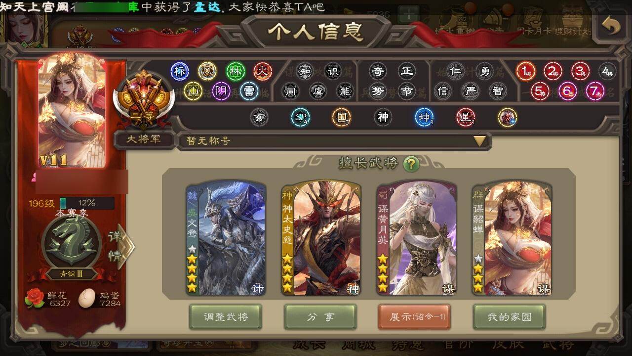 [15180648]【984】官阶:大将军;vip等级:vip11;史诗武将数量:59;动态皮肤数量:51;武将总数:430;史诗宝珠数量:1;将魂数量:1228;神将:10;魏国史诗武将:33;蜀国史诗武将:12;吴国史诗武将:8;群史诗武将:19 神吕布神赵云神张辽神郭嘉神太史慈神孙策神关羽神吕蒙神周瑜神诸葛亮sp司马昭曹髦星周不疑杨修文鸯王元姬界钟会界于禁界曹真嵇康郝昭陈琳曹婴曹纯戏志才蒋干清河公主马云騄谋赵云谋马超诸葛瞻周群赵襄张星彩王平沙摩柯谯周界黄忠董允谋黄盖吴景骆统留赞界朱然界徐盛界步练师贺齐谋黄月英谋貂蝉裴秀左慈张让苏飞麹义刘焉界左慈界李儒公孙康卑弥呼鲍信谋张角张绣李傕阎象许攸势于吉神张辽-威震江东神郭嘉-虎年清明动态神太史慈-勇撼日月动态神孙策-霸王再世动态神刘备-龙兴海内神吕蒙-兼资文武动态星周不疑-才广志宏动态钟繇-安民护祚(动态)曹丕-气荡山河(动态)甄姬-明珠耀躯(动态)曹叡-睥睨天下动态sp蔡文姬-兔年冬日动态甄姬-牛年清明动态荀彧-驱虎吞狼动态邓艾-神兵天降动态界甄姬-牛年清明动态界邓艾-神兵天降动态张春华-雪中舞刃动态钟会-谋谟之勋动态界钟会-谋谟之勋动态戏志才-举棋若定动态朱灵-以战破氐动态司马昭-昭威淮南(动态)清河公主-魅影萦心动态刘备-龙御天下动态诸葛亮-龙年限定动态关羽-明良千古动态马超-虎年冬至动态马超-明良千古动态张飞-据水断桥动态黄月英-明良千古动态界张飞-据水断桥动态界黄月英-明良千古动态关银屏-兔年春节动态李丰-太仓聚粟动态小乔-兔年七夕动态孙策-兔年中秋动态孙茹-龙年七夕动态周处-义除三害动态吕蒙-剑起惊澜动态陆逊-龙年七夕动态孙权-永开吴祚动态孙策-虎踞江东动态孙寒华-莲华熠熠动态黄盖-鏖战赤壁动态孙尚香-兔年春节动态孙尚香-星流霆击动态界黄盖-鏖战赤壁动态界孙尚香-星流霆击动态徐盛-破军杀将动态步练师-牛年七夕动态界步练