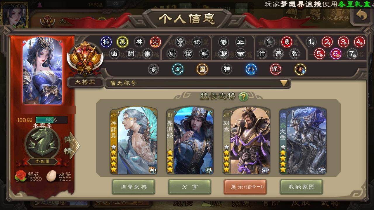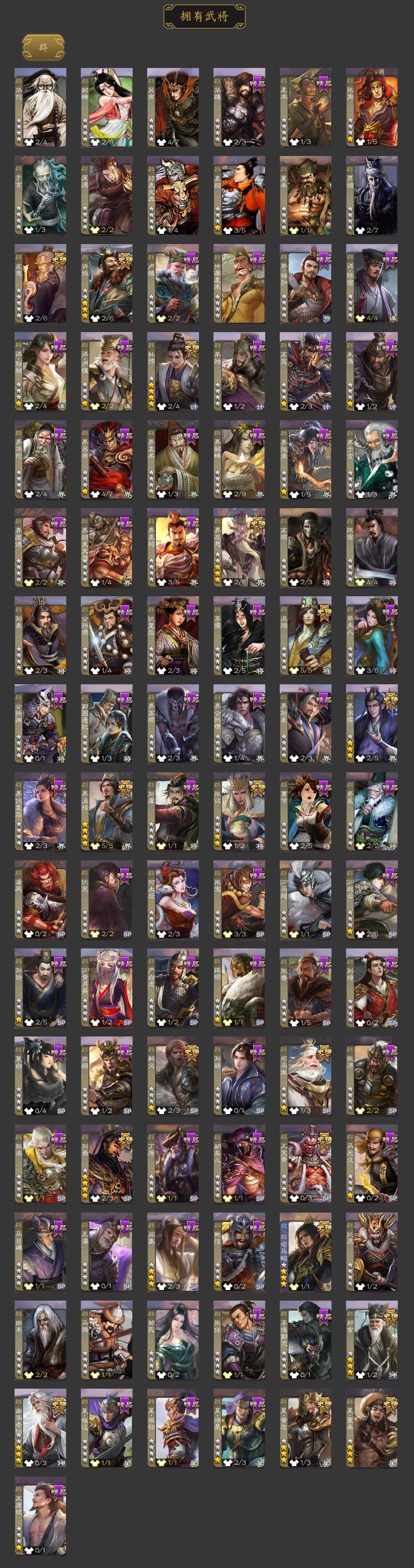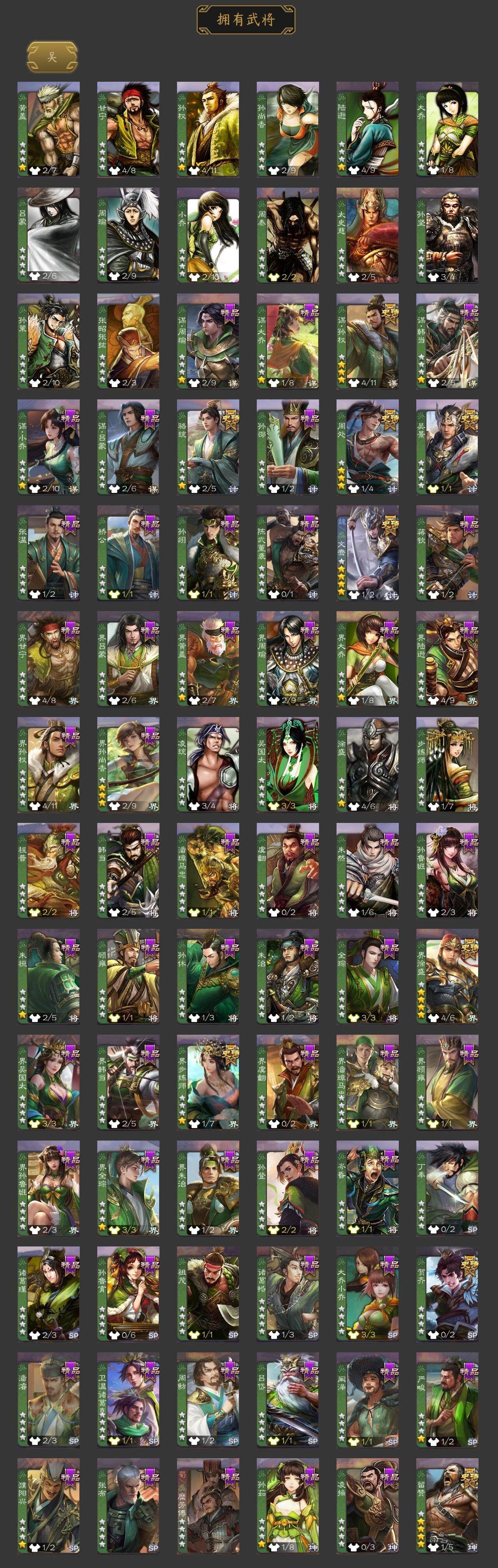 [15180785]【828】官阶:大将军;vip等级:vip12;史诗武将数量:55;动态皮肤数量:50;武将总数:373;史诗宝珠数量:40;将魂数量:374;神将:10;魏国史诗武将:24;蜀国史诗武将:8;吴国史诗武将:8;群史诗武将:17 神吕布神赵云神陆逊神刘备神张辽神郭嘉神太史慈神孙策神吕蒙神周瑜星周不疑杨修文鸯王元姬魏-司马昭界钟会界于禁郝昭曹婴曹纯戏志才刘晔谋曹丕清河公主谋诸葛亮谋夏侯氏谋赵云诸葛瞻赵襄沙摩柯谯周花鬘周处吴景骆统留赞界徐盛界步练师贺齐谋孙权界沮授左慈郑玄张让星黄忠司马徽麹义南华老仙刘焉沮授界左慈界李儒杜预鲍信阎象许攸星董卓神郭嘉-虎年清明动态神太史慈-勇撼日月动态神孙策-霸王再世动态神荀彧-匡汉延祚动态神周瑜-波澜不惊神赵云-鳞振九霄神吕蒙-心生万象神曹操-天下归心神吕布-冠绝天下动态王元姬-婆娑起舞(动态)星周不疑-才广志宏动态张昌蒲-龙年端午(动态)曹丕-气荡山河(动态)曹丕-龙年中秋动态邓艾-神兵天降动态钟会-谋谟之勋动态界钟会-谋谟之勋动态朱灵-以战破氐动态王元姬-鼠年冬至动态司马昭-昭威淮南(动态)星徐晃-斧引霹雳动态清河公主-魅影萦心动态诸葛亮-龙年限定动态星黄忠-长沙阻敌动态卧龙诸葛-龙跃凤鸣动态黄忠-烈箭贯云动态)法正-恩山怨海动态马超-虎年冬至动态黄月英-明良千古动态界黄月英-明良千古动态夏侯氏-猪年中秋动态关银屏-虎年端午动态诸葛果-蛇年限定动态孙策-兔年中秋动态周处-义除三害动态孙权-兔年中秋动态孙权-永开吴祚动态徐盛-破军杀将动态刘赞-灵魂歌王动态孙寒华-蛇年限定动态鲁肃-蛇年端午动态陆逊-蛇年清明动态文鸯-势若万钧动态灵雎-霜刃绚练动态袁绍-声震寰宇动态李儒-业火毒计动态高览-威显官渡动态麹义-扬刀立威动态杜预-龙吟破竹动态吕布-虓虎之勇动态许攸-盛气凌人动态界吕布-虓虎之勇动态张宝-苍天已死动态刘焉-雄踞益州动态sp赵云-威名